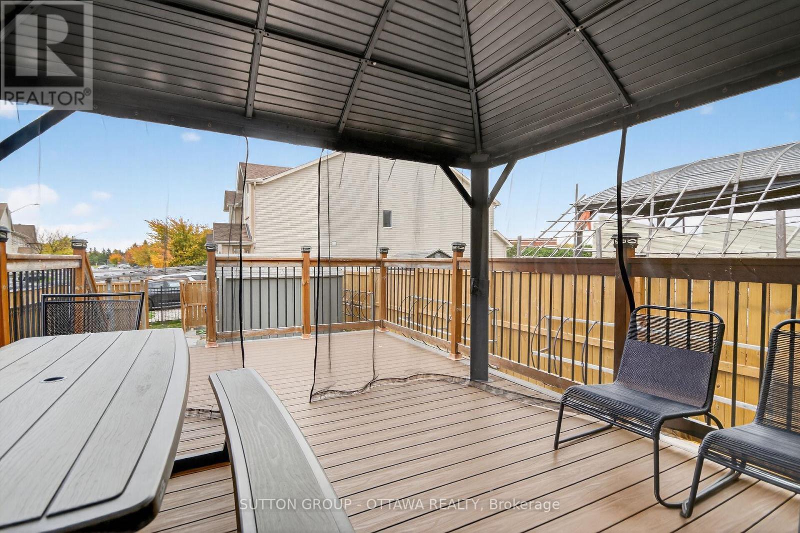 Welcome to this beautifully maintained Campanale-built end-unit townhome, perfectly located in the heart of vibrant and family-friendly Longfields section of Barrhaven. Offering 3 bedrooms and 3.5 bathrooms, this rare gem stands out for its impressive square footage and thoughtfully designed layout-ideal for families, remote professionals, or those seeking versatile living space.The open-concept main floor is bathed in natural light from large windows facing east, north, and south, creating a warm, airy atmosphere throughout the day. Whether you're hosting guests or enjoying a quiet night in, the flow and functionality of this space are sure to impress.Upstairs, you'll find three exceptionally spacious bedrooms-each offering comfort and flexibility-along with tastefully appointed bathrooms that enhance the overall sense of luxury and practicality.Step outside into your private, fully fenced backyard-an absolute dream for gardening enthusiasts. The current owner has transformed the space into a flourishing urban garden, growing everything from broad beans to wintermelon, proving that self-sufficiency is more than possible. A sturdy deck and charming gazebo add even more value, providing a perfect setting for outdoor dining, relaxation, or entertaining during the warmer months.Located in a quiet enclave yet just minutes from top-rated schools, parks, shopping, and public transit, this home offers the best of both worlds-peaceful suburban living with unbeatable convenience.Don't miss this unique opportunity to own a bright, spacious, and well-appointed home in one of Ottawa's most desirable communities. Book your private showing today!