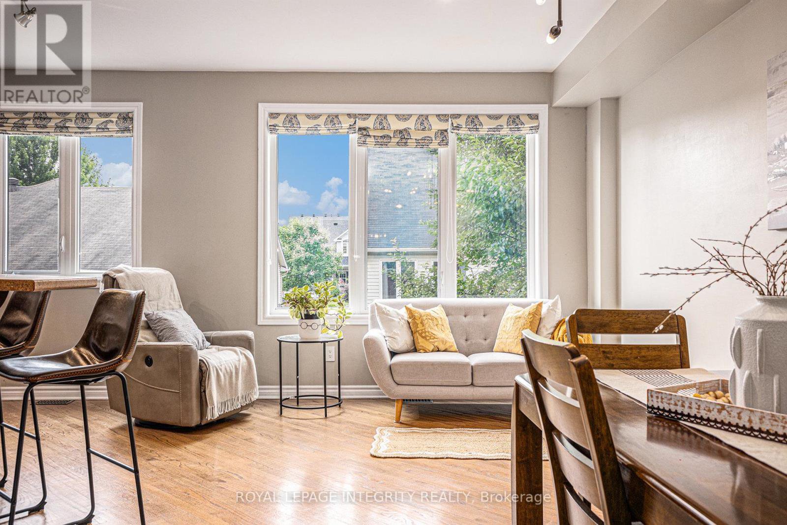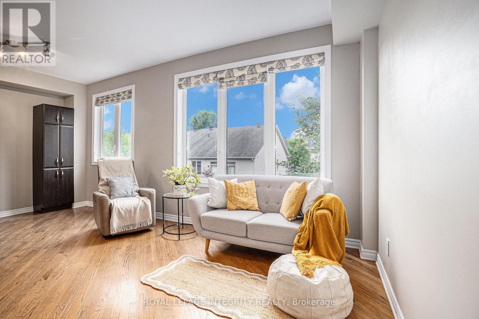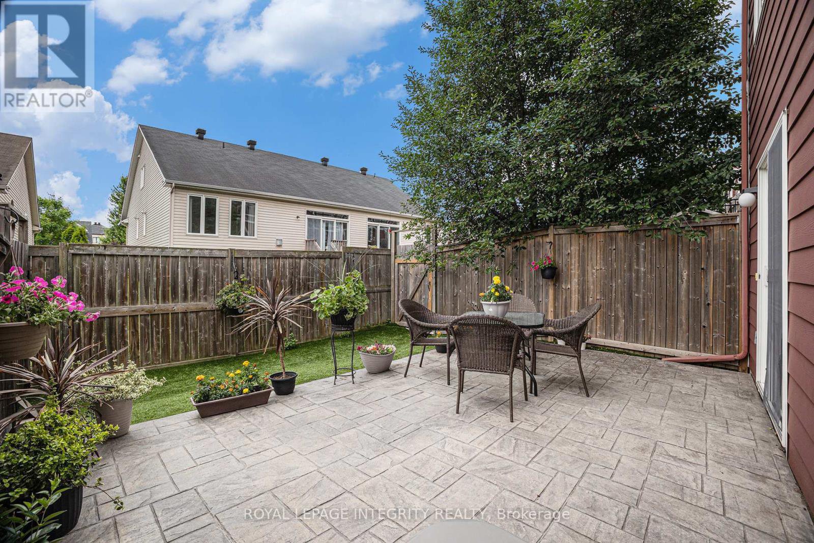 Located on a private, coveted court, this rare and spacious townhome in Stittsville perfectly combines comfort, style, and bold design. Step inside to discover a bright main floor with 9-foot ceilings and oversized windows that fill the living and dining areas with natural light. At the front, a versatile space serves perfectly as an office or den ideal for working from home, extra seating, or even a dining area.The kitchen is beautifully designed with ample cabinetry, stainless steel appliances, a breakfast bar, and a cozy eating nook perfect for family meals or entertaining guests. Between the floors, SEPARATE FAMILY ROOM featuring vaulted ceilings, a warm gas fireplace, and elegant California shutters The expansive primary bedroom includes a walk-in closet and a well-appointed ensuite with both a soaking tub and a separate shower. Two additional large bedrooms, two linen closets, a second bathroom, and a convenient laundry area complete the upper level.The WALK-OUT basement is sure to impress, offering a generous amount of flexible space for recreation, a future in-law suite, or additional living areas.Step outside to a fully fenced, low-maintenance, south-facing backyard that enjoys all-day sun perfect for relaxing or entertaining outdoors.Ideally located within walking distance to parks, trails, and some of the best schools in the area, this home truly is the perfect place to call your own!