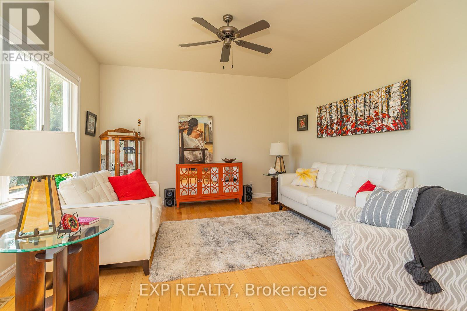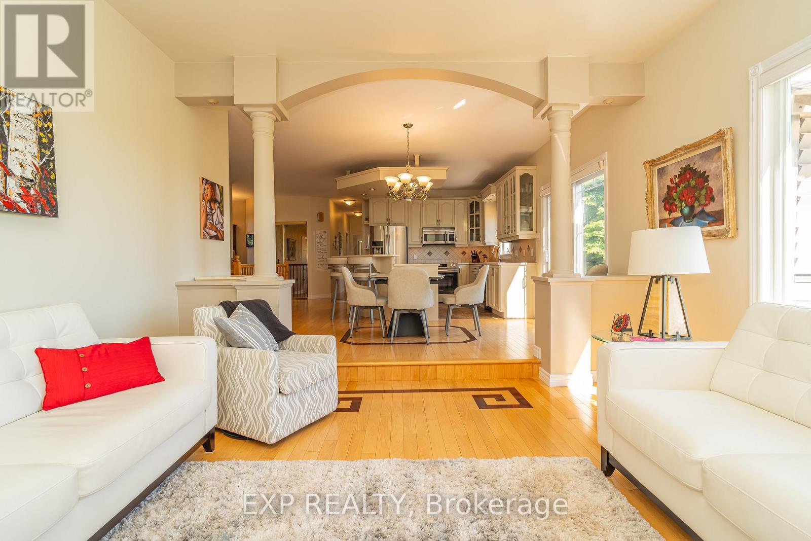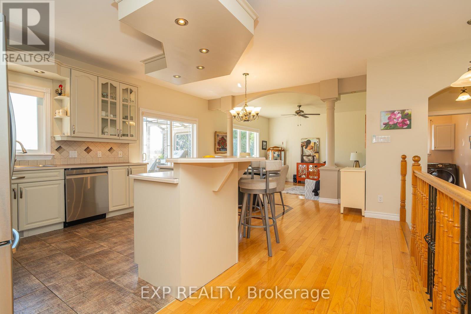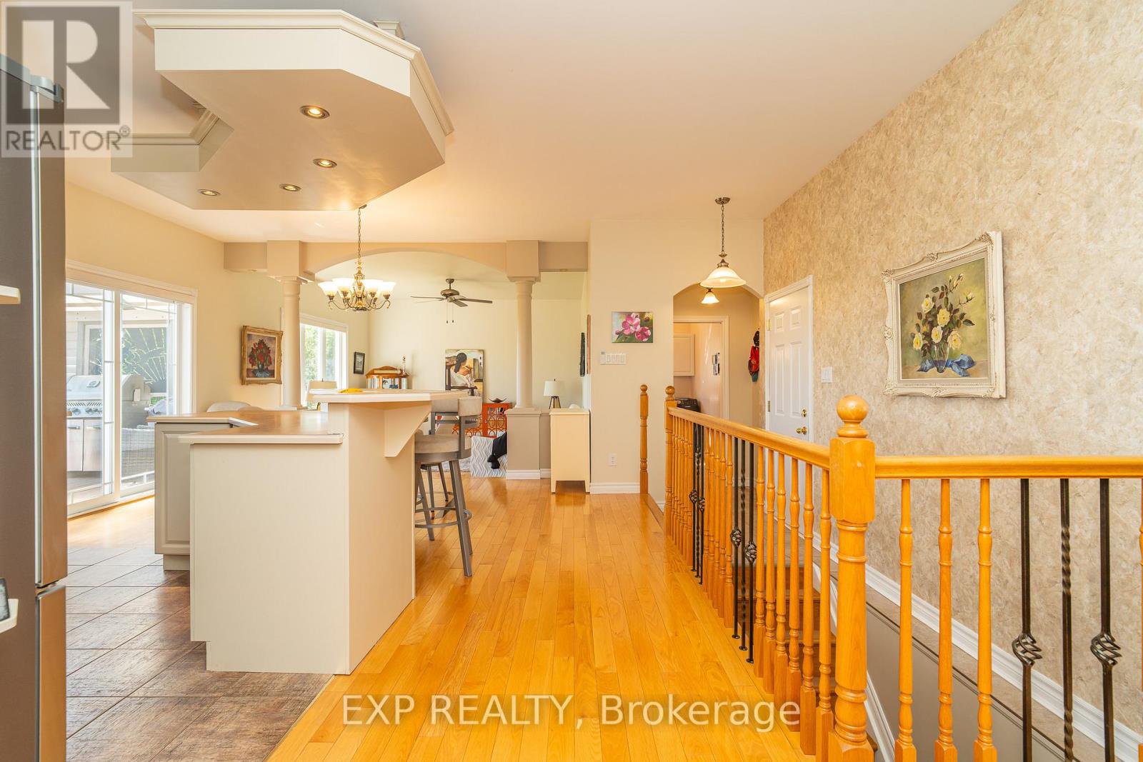 Welcome to Hammond Country Living Just Minutes from the City! Nestled in the family-friendly community of Hammond, this charming 3+1 bedroom, 3-bathroom bungalow offers the perfect blend of peaceful country living and city convenience just 15 minutes from Rockland and 30 minutes to Ottawa. Enjoy the privacy of no rear neighbours and a spacious layout designed for modern family life. The main level features beautiful hardwood and ceramic flooring, and an inviting open-concept living, kitchen, and dining area ideal for entertaining or keeping an eye on the kids while you cook. Three generously sized bedrooms are served by a large 5-piece main bathroom and a combined powder room/laundry for added convenience. Downstairs, the fully finished basement provides space for work, relaxation, and play. It boasts a cozy gas fireplace in the large recreation room, a fourth bedroom, and an additional 3-piece bathroom perfect for guests or a growing family. Step outside to your private backyard retreat, complete with a two-tier deck, and plenty of green space perfect for soaking in the outdoors or hosting weekend gatherings. A fully insulated double garage, powered storage shed, municipal water, and natural gas add even more value. Hot water tank is owned. If you're looking for a move-in ready home in a great community with an easy commute to the city you've found it! (41160862)