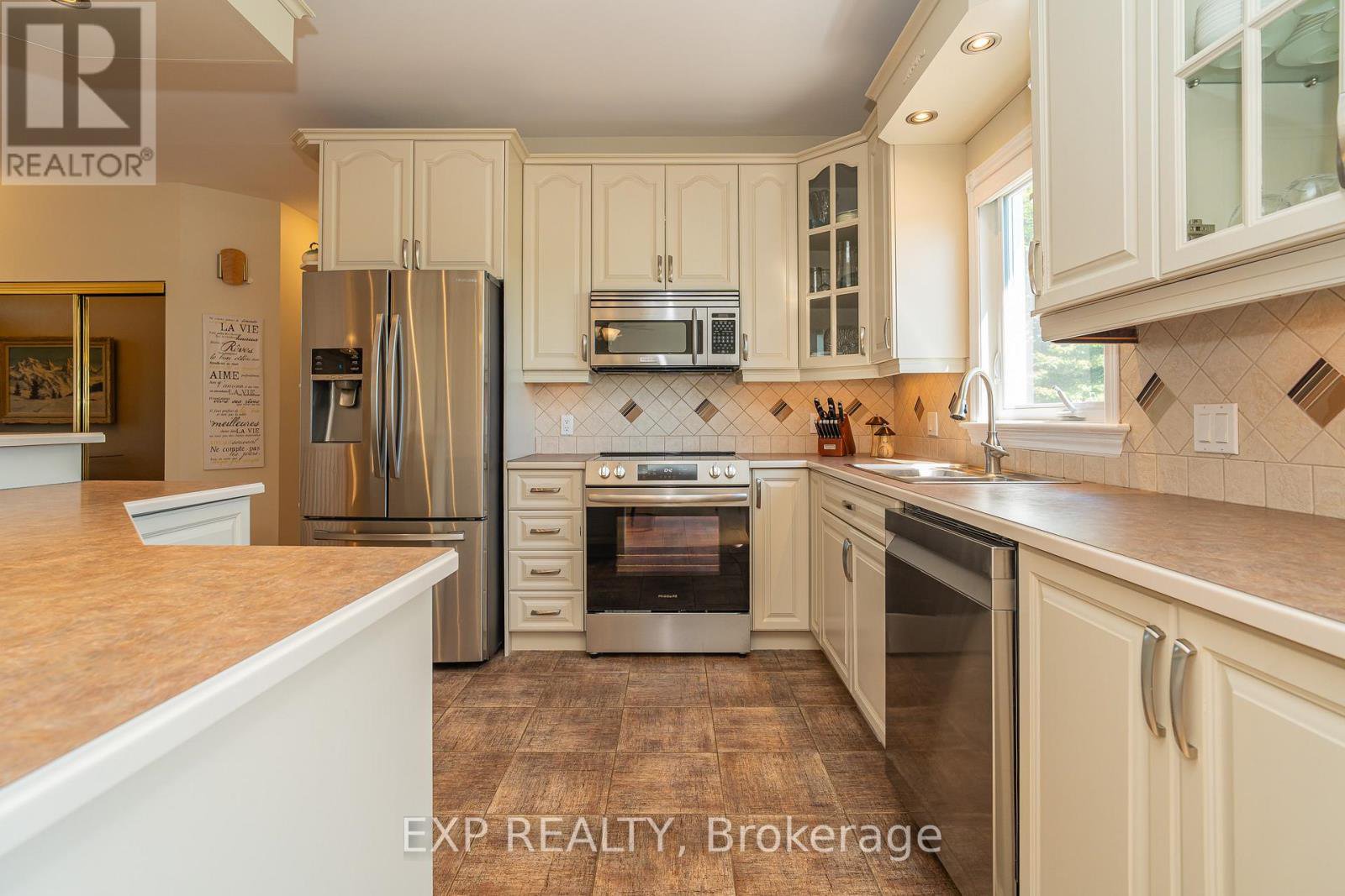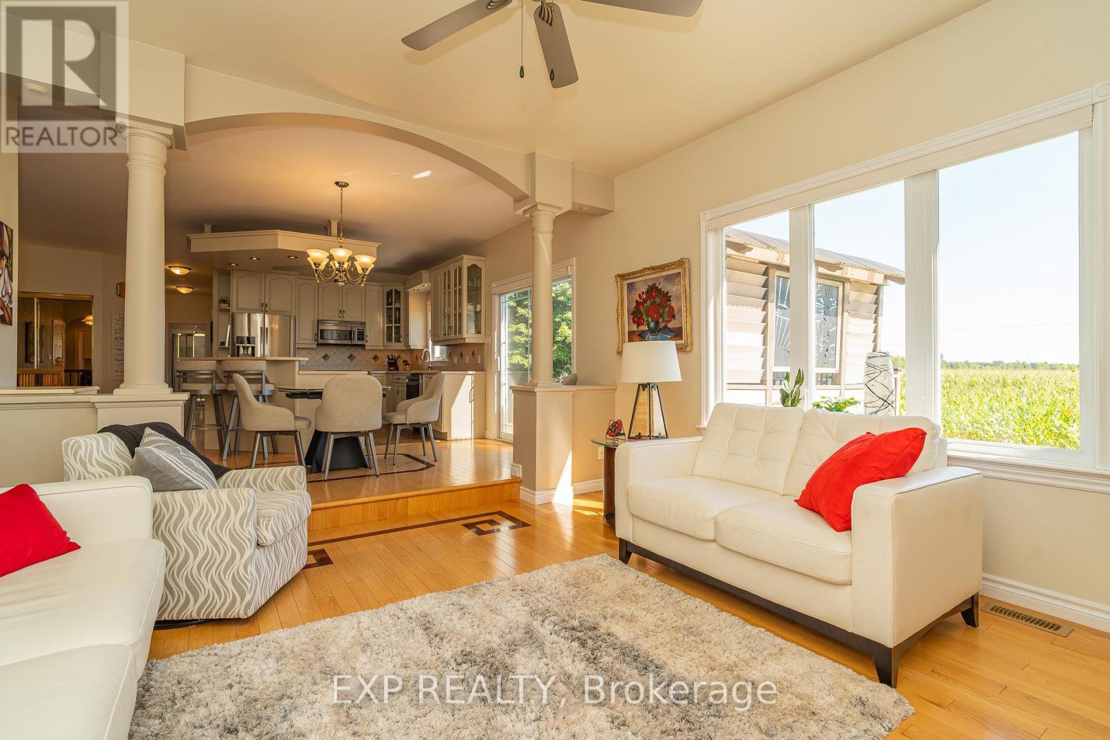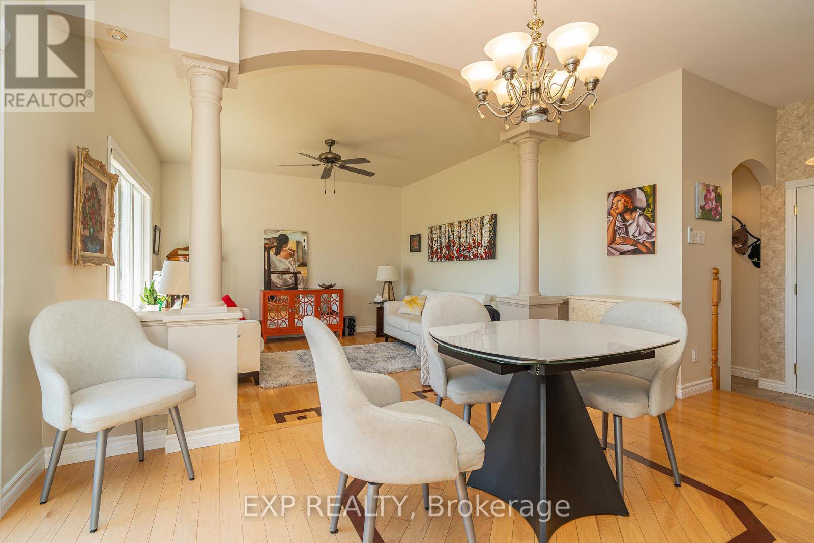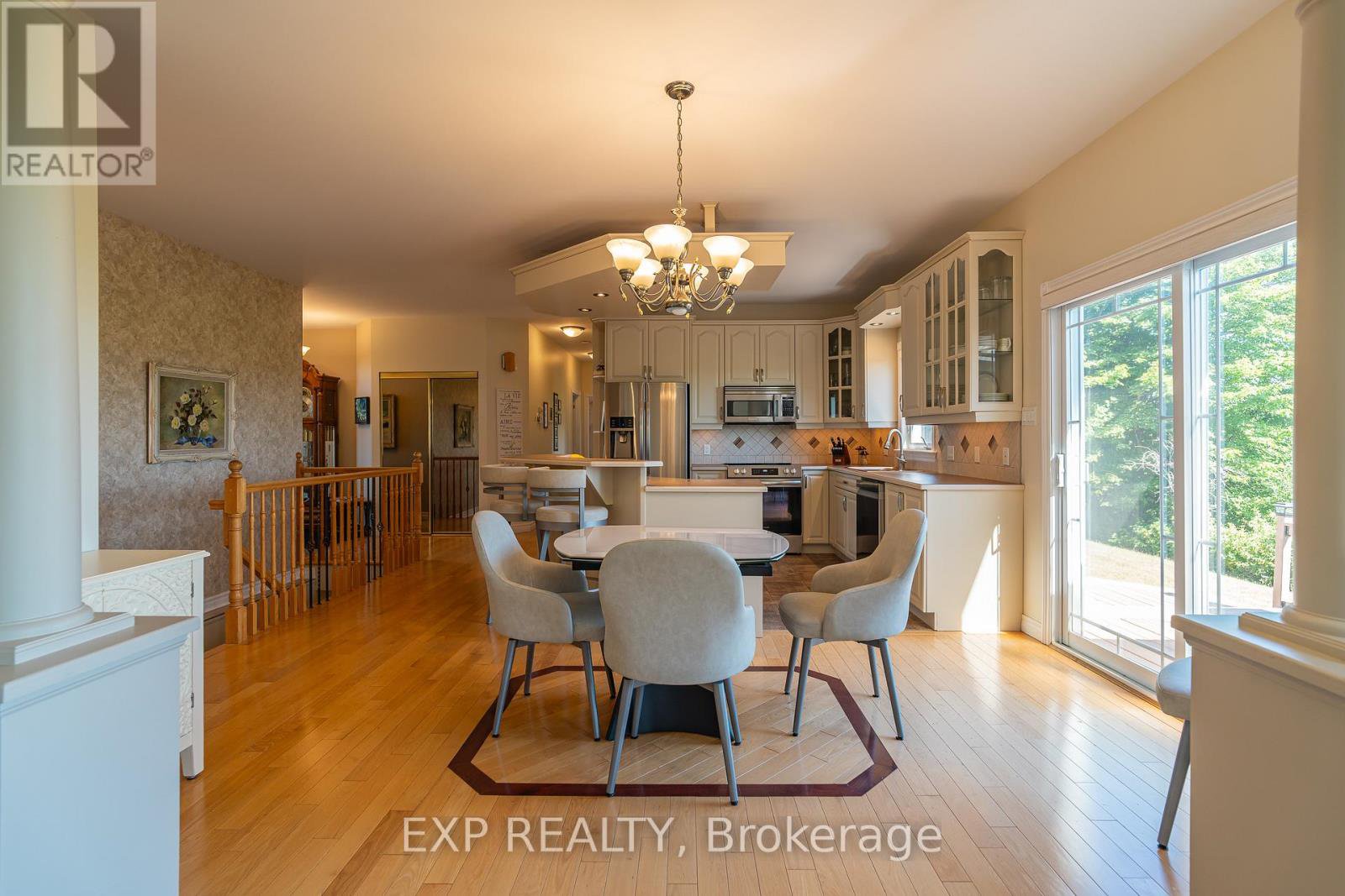 Welcome to Hammond Country Living Just Minutes from the City! Nestled in the family-friendly community of Hammond, this charming 3+1 bedroom, 3-bathroom bungalow offers the perfect blend of peaceful country living and city convenience just 15 minutes from Rockland and 30 minutes to Ottawa. Enjoy the privacy of no rear neighbours and a spacious layout designed for modern family life. The main level features beautiful hardwood and ceramic flooring, and an inviting open-concept living, kitchen, and dining area ideal for entertaining or keeping an eye on the kids while you cook. Three generously sized bedrooms are served by a large 5-piece main bathroom and a combined powder room/laundry for added convenience. Downstairs, the fully finished basement provides space for work, relaxation, and play. It boasts a cozy gas fireplace in the large recreation room, a fourth bedroom, and an additional 3-piece bathroom perfect for guests or a growing family. Step outside to your private backyard retreat, complete with a two-tier deck, and plenty of green space perfect for soaking in the outdoors or hosting weekend gatherings. A fully insulated double garage, powered storage shed, municipal water, and natural gas add even more value. Hot water tank is owned. If you're looking for a move-in ready home in a great community with an easy commute to the city you've found it! (41160862)