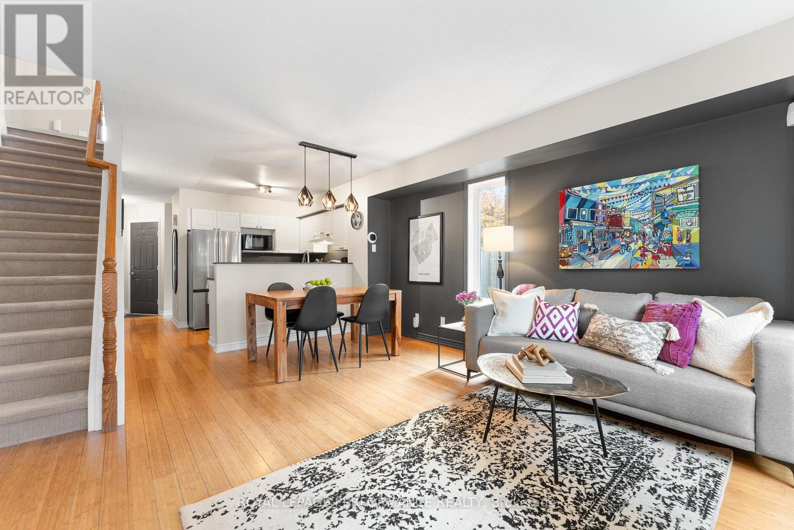 Welcome to 3 Festive Private! This bright & stylish 2-bedroom, 1.5-bath, 2 Storey, end-unit townhome is incredibly located in the heart of Central Park. With a versatile layout, thoughtful renovations, dreamy backyard retreat and uncommon privacy-whether upsizing or downsizing, prepare to check off your entire wish list! A spacious foyer welcomes you into the open-concept main floor, filled with natural light, cook, dine, and relax all within one seamless space. The central kitchen features white cabinetry, stainless steel appliances and an ease of flow that encourages hosting of friends or quiet evenings. From the living room, patio doors lead to a treed backyard oasis: lounge deck, flagstone patio (2021) and a private, fenced side yard! Surrounded by mature greenery, this pet & child friendly retreat beckons dining, entertaining and relaxing al fresco. Upstairs, two generous and versatile bedrooms await. The king-sized primary with a sitting area enjoys expansive windows and a full wall closet with custom built-ins where everything has its place. The secondary bedroom also features a full wall of storage and is sized to accommodate both guests and a home workspace. Completing the 2nd level is a large family bathroom, thoughtfully-renovated (2021) to tackle busy mornings with stylish fixtures, convenient double sinks, a soaker tub, and storage where you need it. The recently refinished basement (2023) is immensely flexible for work, movie nights, work from home, exercising or hobby space. Bright and airy with great ceiling height, an easily adaptable space for your unique lifestyle. An attached garage with inside entry and choice corner location with southwestern exposure complete the package. Create a lifestyle at your doorstep with Experimental Farm cycling and walking trails, coffee shops, shopping, restaurants, parks & splashpad. Welcome Home! $35/month road fee. 24 hours irrevocable on all offers.