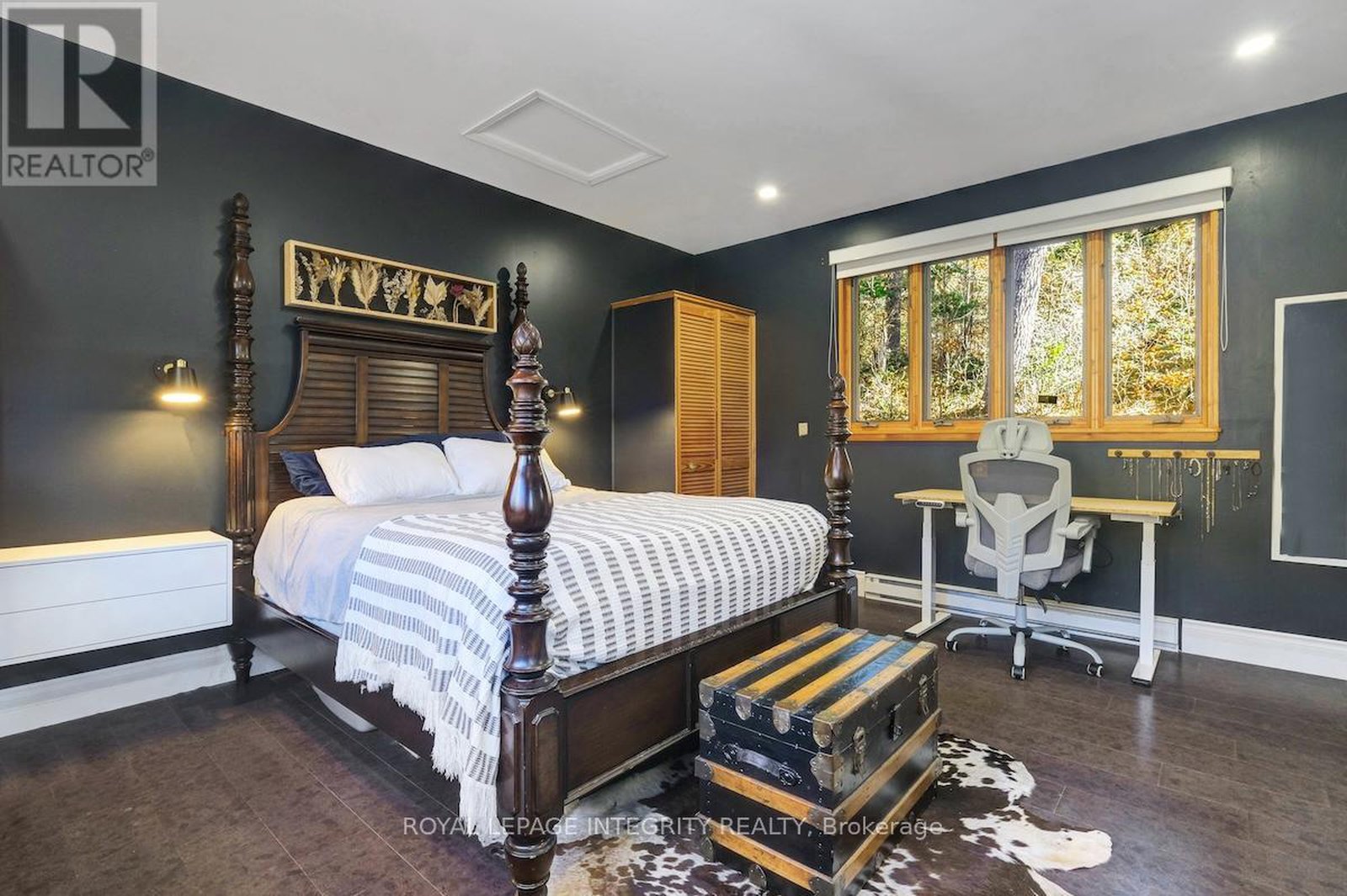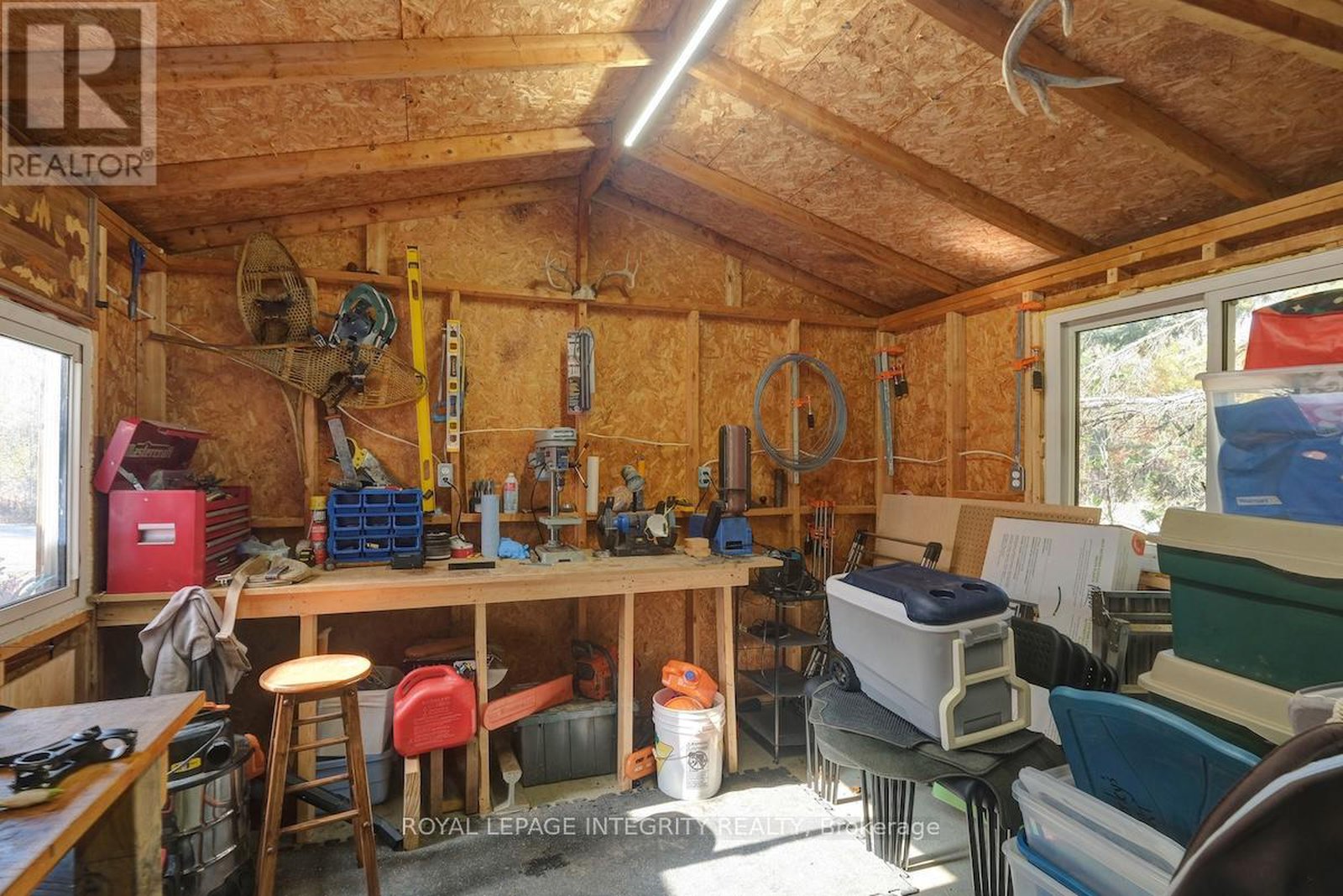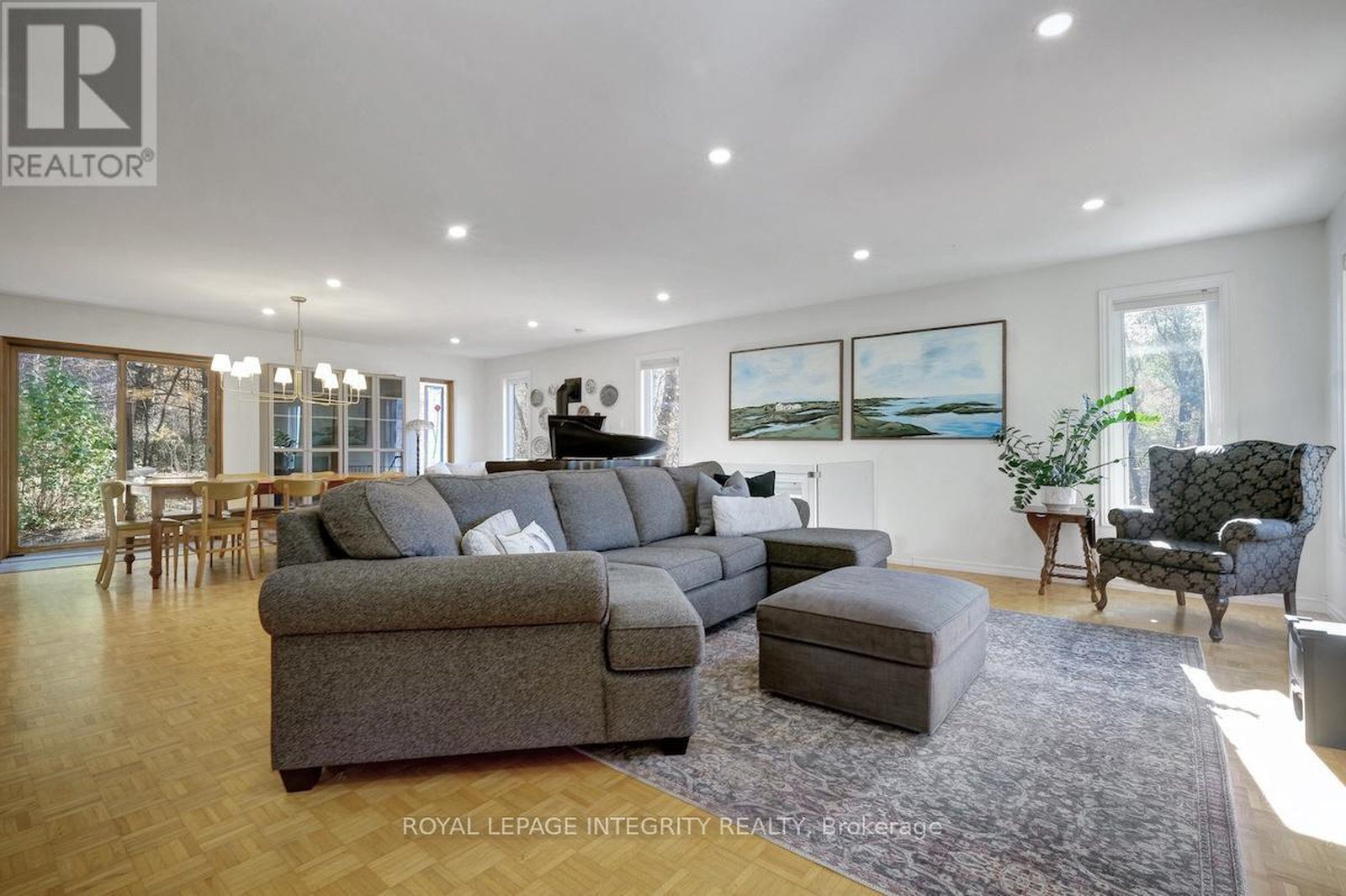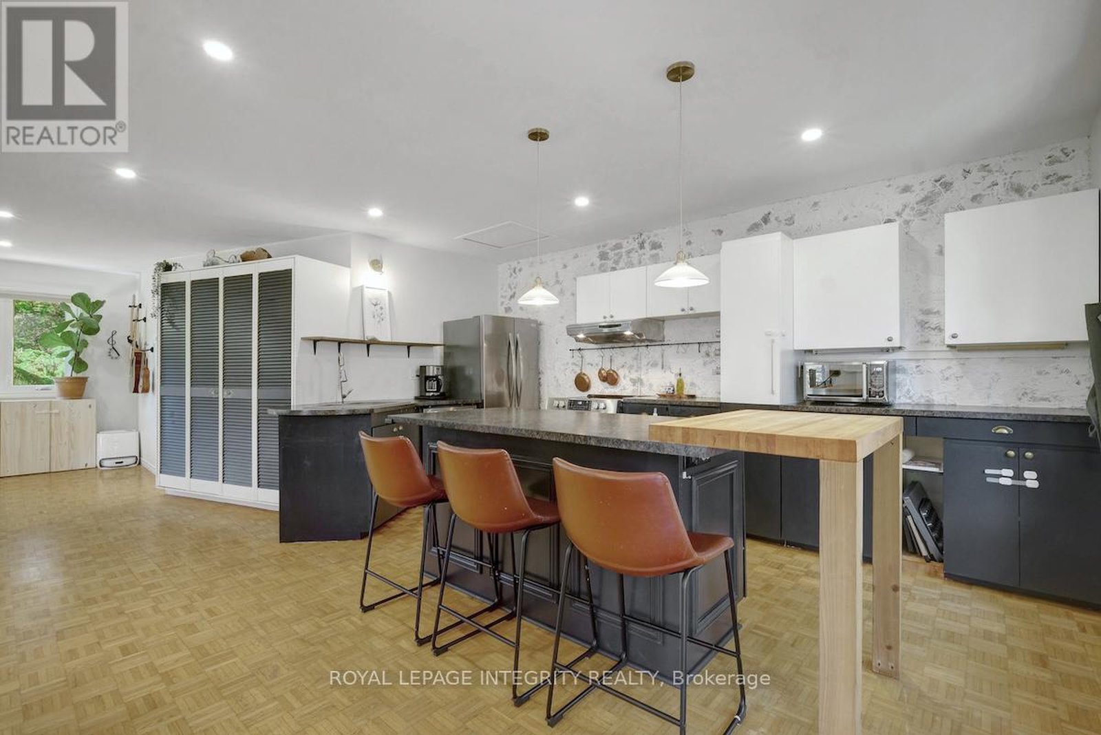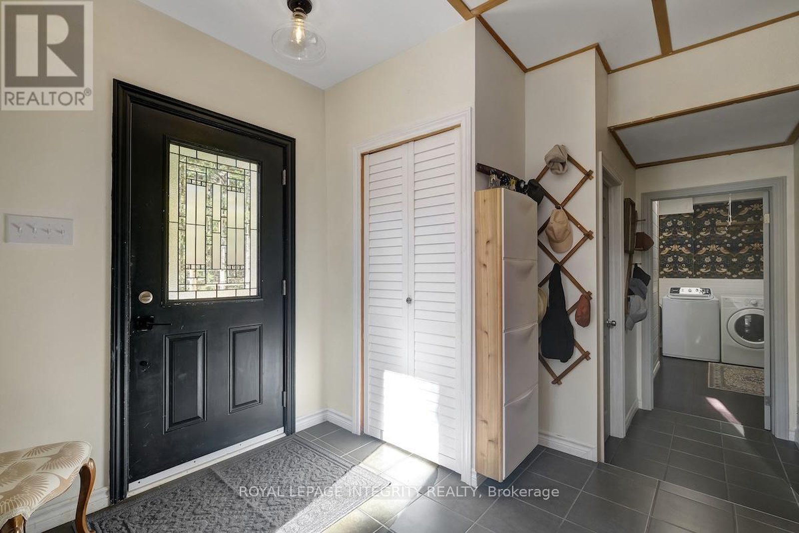 Tucked into the natural landscape of the Canadian Shield, this one-of-a-kind home offers the perfect balance of peace, privacy, and proximity to recreation. Nestled on a 1.24-acre double lot beside Mount Pakenham, this 3-bedroom, 1.5-bath home feels like a modern ski-lodge retreat. Surrounded by mature pines, boulders, and trails leading to a cozy fire pit, it offers serenity in every season - just 30 minutes from Ottawa. The open-concept main living area on the second level showcases the surrounding landscape, with large windows framing treetop views. The bright kitchen features newer stainless steel appliances (2023), and the adjoining dining area with a fireplace (propane) sets the tone for family meals and gatherings. This level also includes a full bathroom. The main level offers a welcoming foyer, three bedrooms, a powder room, laundry room, and a versatile layout-with the newest bedroom addition (2025) enhancing the home's functionality and charm. The newly completed office (2024) is fully insulated and soundproofed-ideal for remote work-with a large window bringing in natural light. Updates include pot lights throughout (2021-2025), a custom tile shower (2023), pine ceiling and bulkheads in the second bedroom (2023), and more. The primary bedroom, part of a thoughtful addition, offers a quiet retreat with expansive windows and peaceful forest views-an inviting space that reflects the home's tranquil character. Enjoy decks on both sides to follow the sun, a 20' x 12' workshop/shed, ample parking, and fibre optic internet to keep you connected. Minutes to Pakenham village, shops, golf, schools, and the Ottawa Valley Rail Trail - this is country living at its most connected and serene.