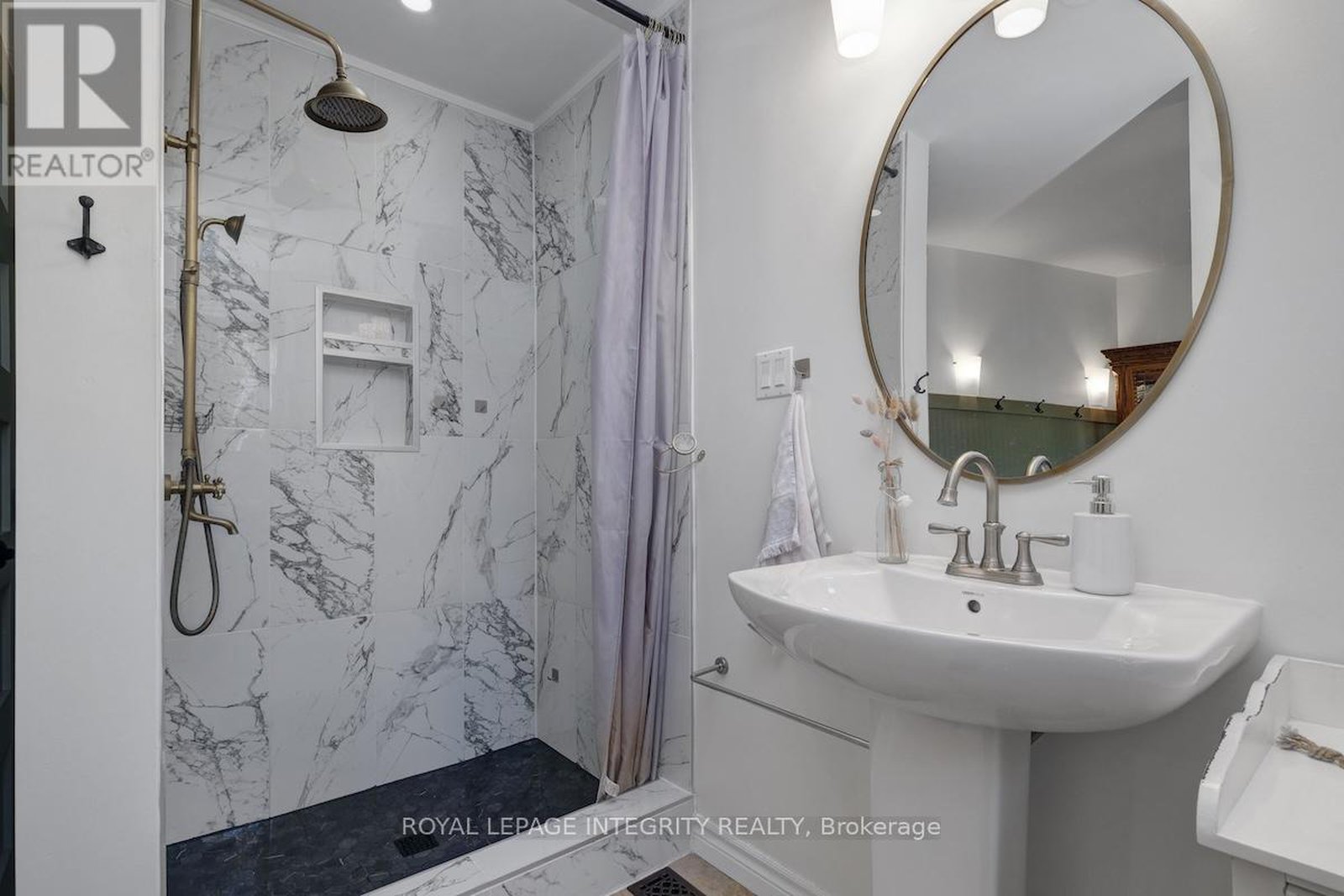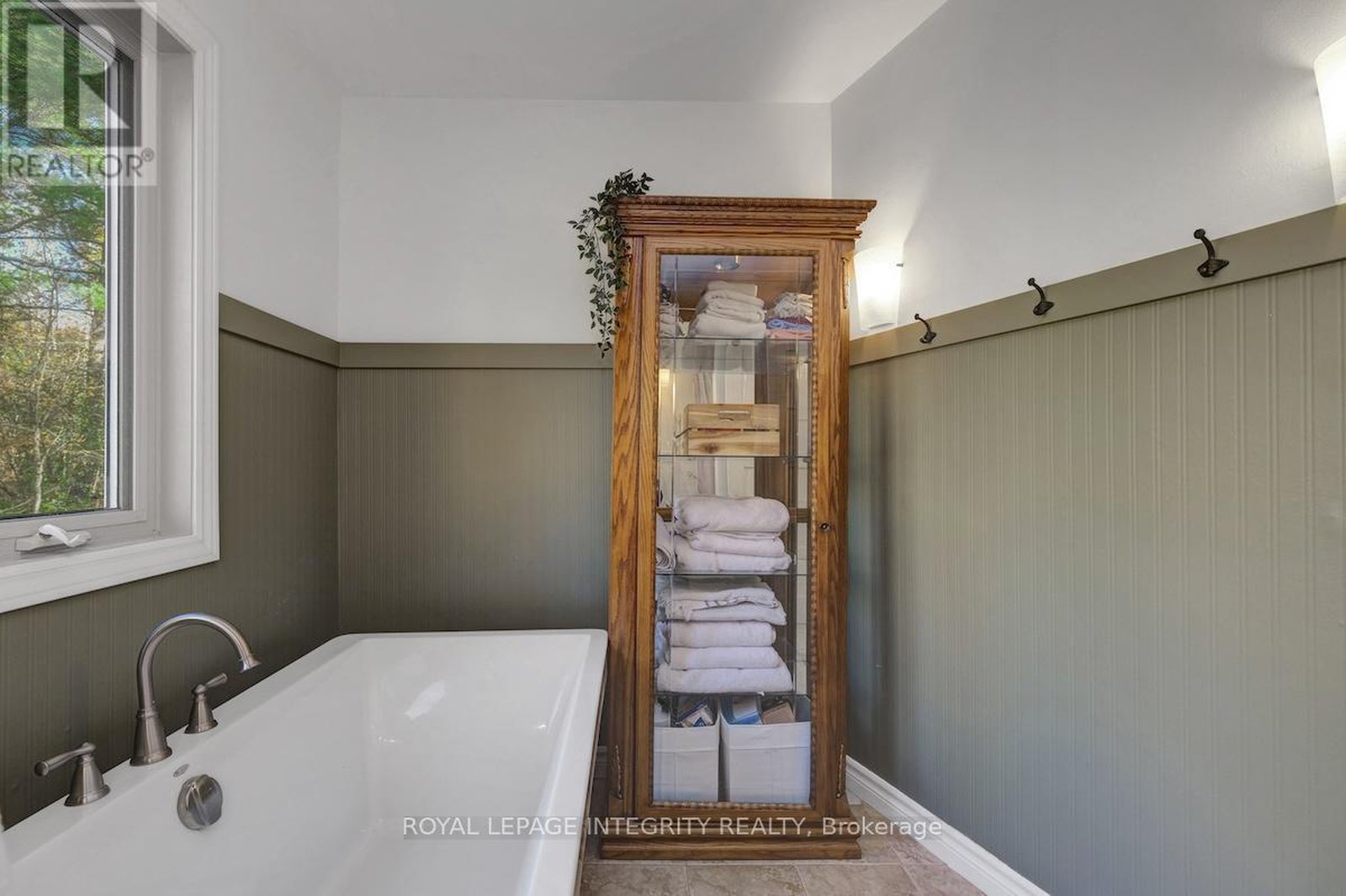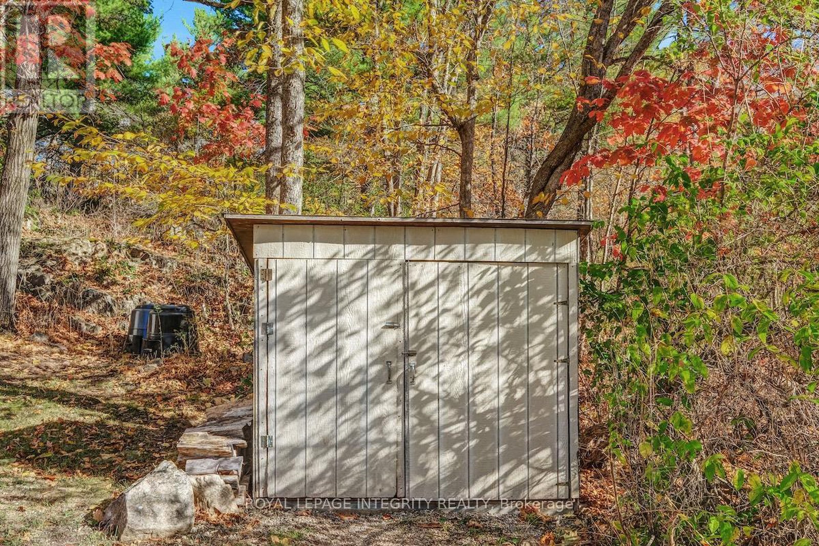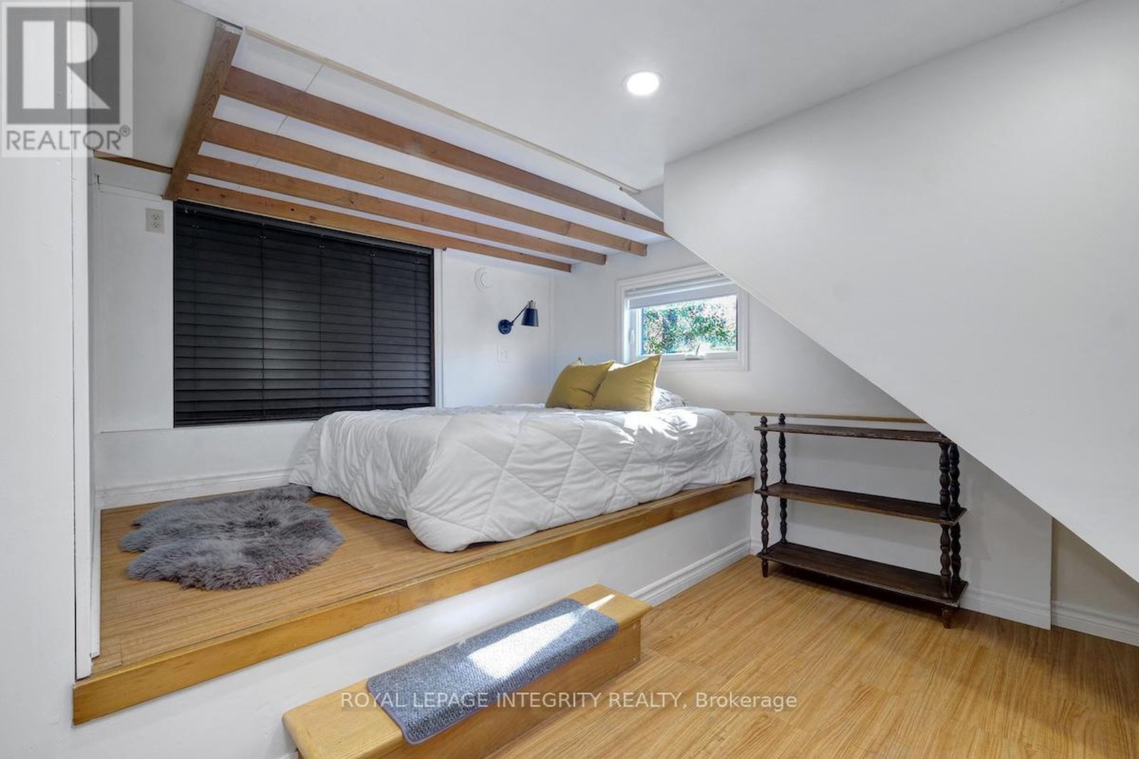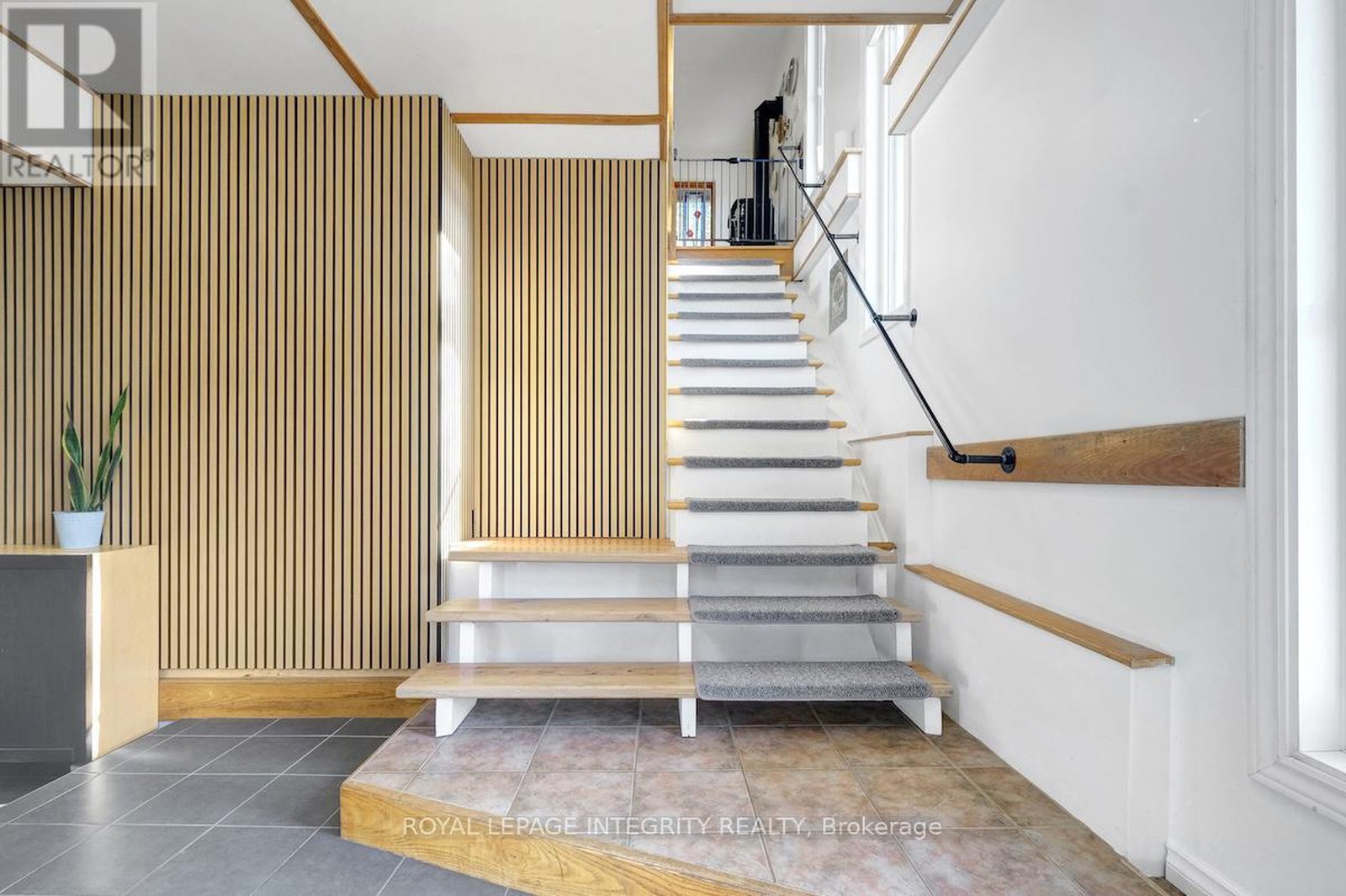 Tucked into the natural landscape of the Canadian Shield, this one-of-a-kind home offers the perfect balance of peace, privacy, and proximity to recreation. Nestled on a 1.24-acre double lot beside Mount Pakenham, this 3-bedroom, 1.5-bath home feels like a modern ski-lodge retreat. Surrounded by mature pines, boulders, and trails leading to a cozy fire pit, it offers serenity in every season - just 30 minutes from Ottawa. The open-concept main living area on the second level showcases the surrounding landscape, with large windows framing treetop views. The bright kitchen features newer stainless steel appliances (2023), and the adjoining dining area with a fireplace (propane) sets the tone for family meals and gatherings. This level also includes a full bathroom. The main level offers a welcoming foyer, three bedrooms, a powder room, laundry room, and a versatile layout-with the newest bedroom addition (2025) enhancing the home's functionality and charm. The newly completed office (2024) is fully insulated and soundproofed-ideal for remote work-with a large window bringing in natural light. Updates include pot lights throughout (2021-2025), a custom tile shower (2023), pine ceiling and bulkheads in the second bedroom (2023), and more. The primary bedroom, part of a thoughtful addition, offers a quiet retreat with expansive windows and peaceful forest views-an inviting space that reflects the home's tranquil character. Enjoy decks on both sides to follow the sun, a 20' x 12' workshop/shed, ample parking, and fibre optic internet to keep you connected. Minutes to Pakenham village, shops, golf, schools, and the Ottawa Valley Rail Trail - this is country living at its most connected and serene.