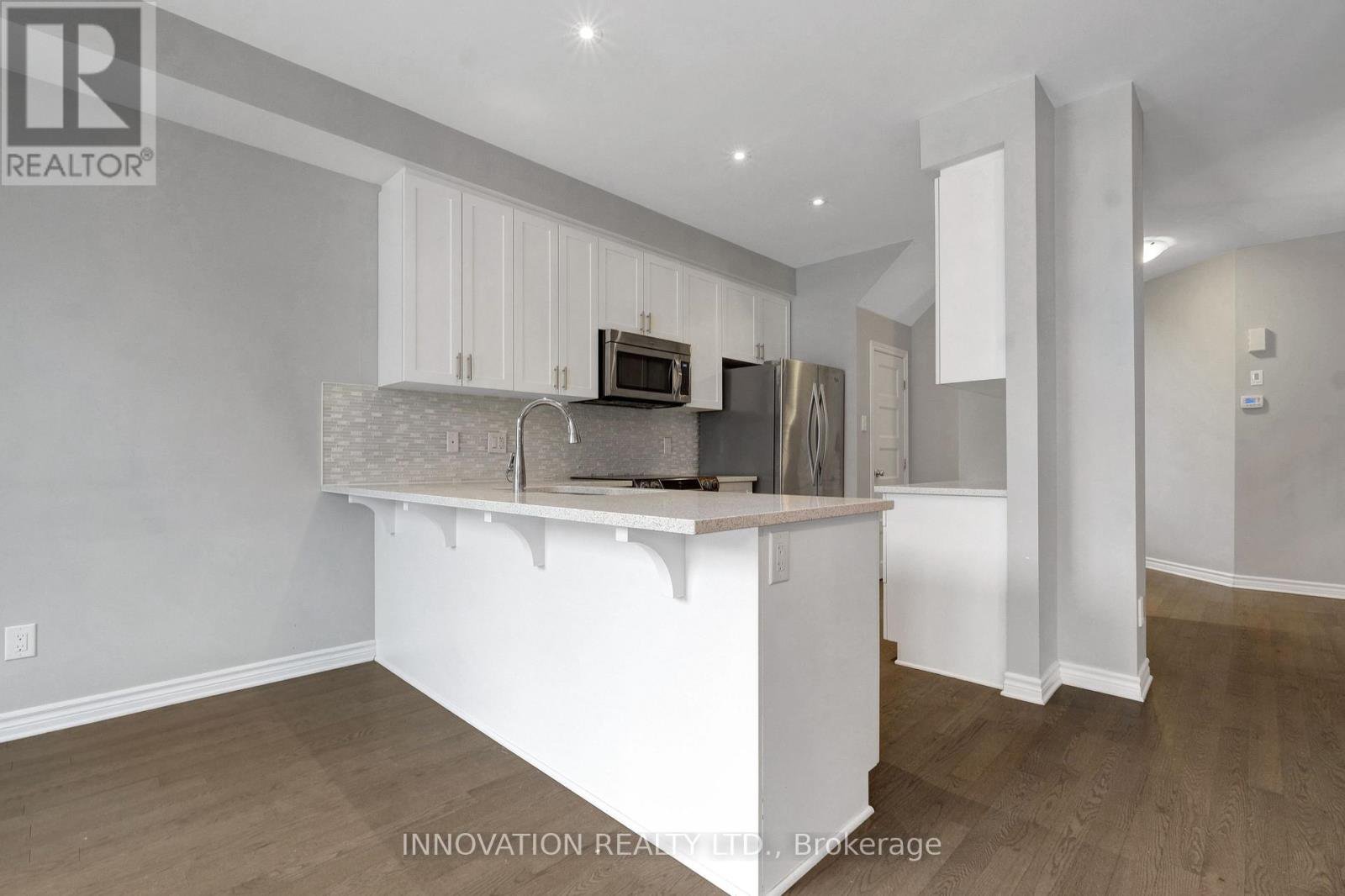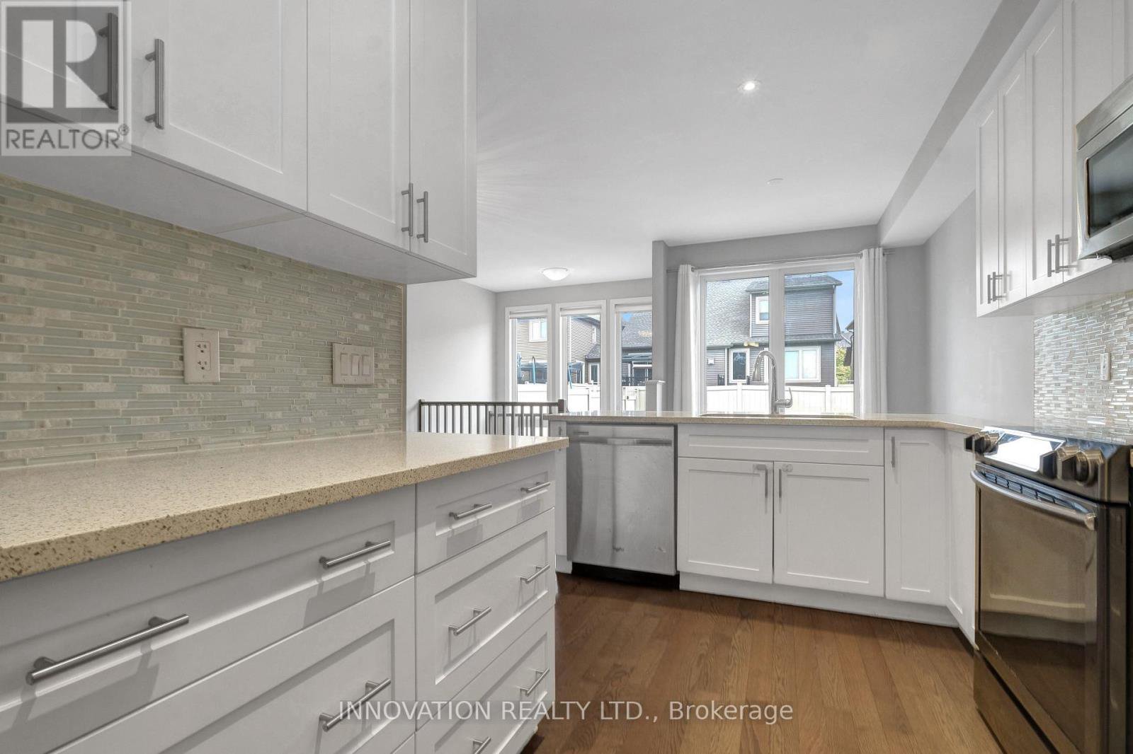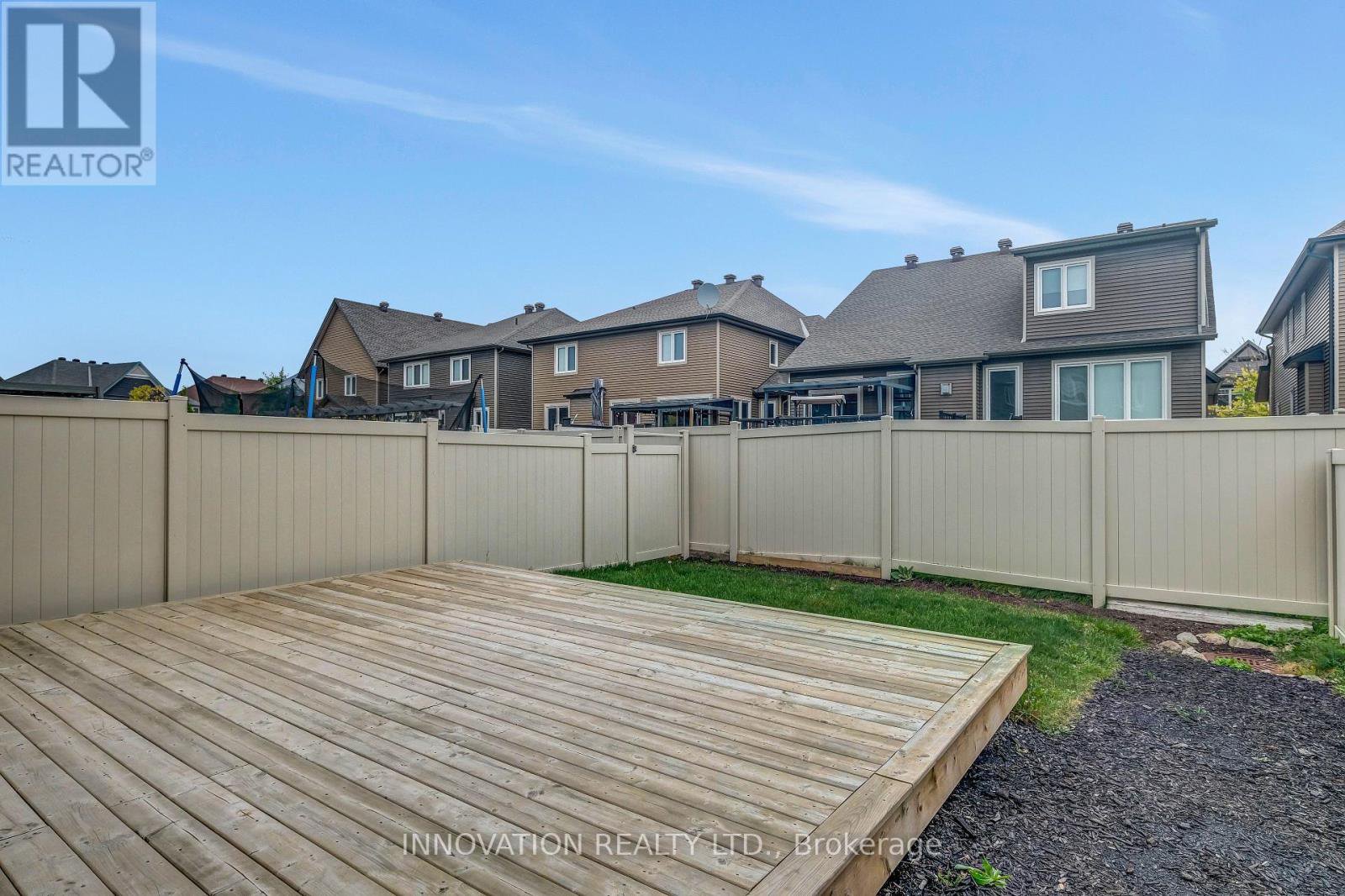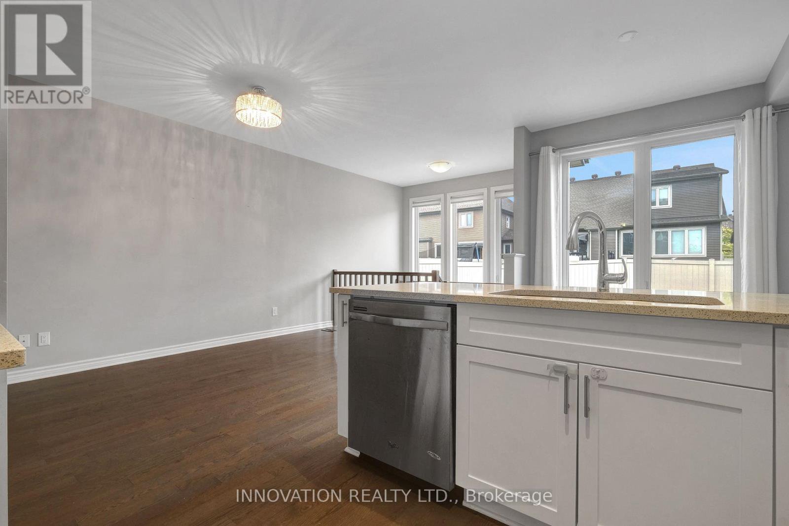 Absolutely stunning! 3 Bedrooms, 3 Bathrooms End unit townhouse, ideally located in Barhaven, close to Costco Shopping Centre, & HWY 416. Features welcoming floor plan, gleaming Hardwood floors in main floor, gourmet kitchen with upgraded cabinets, quartz countertops & S/S appliances, patio door leads to a fenced private backyard with large deck, professionally finished huge family room with Gas Fireplace in lower level, fabulous Master Bedroom with a beautiful 4 pce en suite, good size secondary bedrooms with a full bathroom. Extended driveway with nice interlock, vacant easy to show.