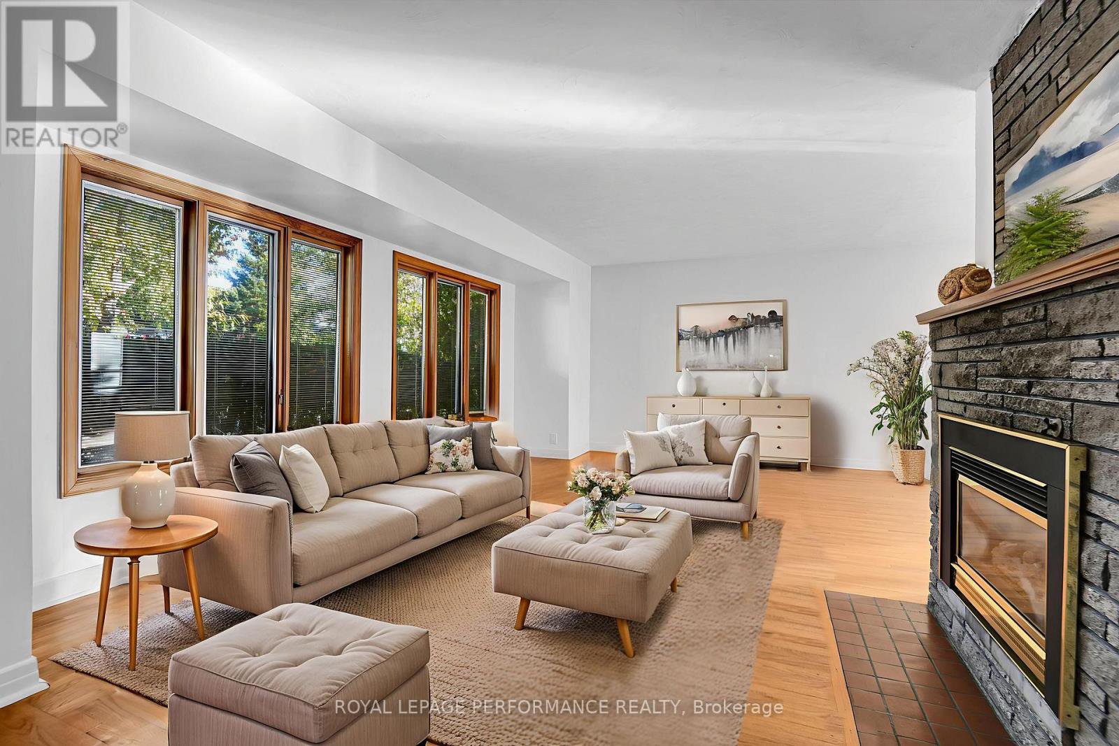 Great opportunity in Alta Vista Located on a quiet dead-end street next to a park. Well maintained 4-bedroom, 2-bathroom side-split on a 74' x 100' lot surrounded by mature trees and cedar hedges. Featuring a well-designed layout, the living and dining areas are open and inviting, with hardwood floors, abundant natural light, and a charming gas fireplace with a stone accent. The spacious kitchen provides plenty of counter space and cabinetry, plus direct access to the backyard-perfect for summer BBQs and entertaining. Upstairs features two large bedrooms and a 4-piece bath, while the lower level offers two additional bedrooms and a 3-piece bath. The finished basement includes a family room, laundry/utility area, workshop, and cold storage. The private backyard is a true retreat with a raised deck, pergola, interlock patio, and lush gardens. Ideally located near parks, schools, hospitals, and all amenities-this is an incredible opportunity to own in one of Ottawa's most desirable neighborhoods. New electrical panel 2025.