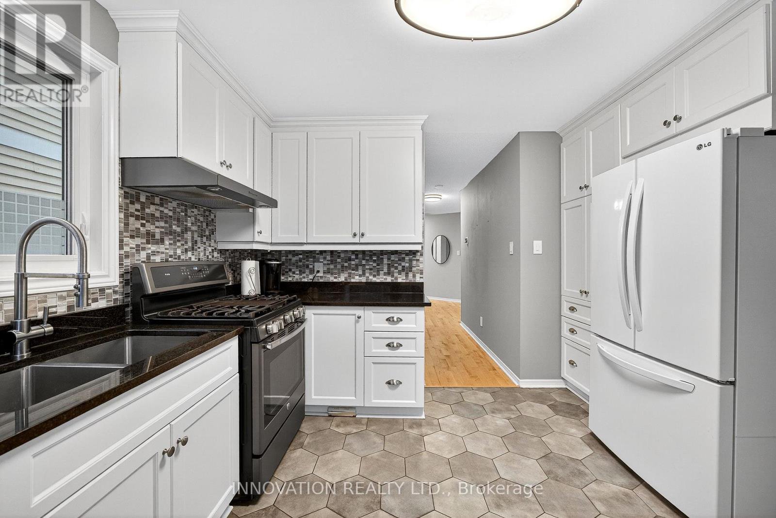 Welcome to this beautifully updated 3-bedroom home in the heart of Barrhaven, with potential for a 4th bedroom in the finished basement to suit growing families or multigenerational living. Close to schools, parks & transit, and being conveniently situated just minutes from Chapman Mills Marketplace and Barrhaven Town Centre & Costco, this home offers suburban living at its best. Inside, you'll find over 2,000 sq. ft. above grade, plus nearly 500 finished sq. ft. in the basement. The main level features a large foyer with inside entry to a double garage, flowing into a brilliant living room with soaring ceilings, large windows, maple hardwood floors and a cozy wood-burning fireplace. The spacious dining room leads to an updated kitchen boasting rich granite countertops with a breakfast bar and plenty of workspace, stainless appliances including a gas stove, pot drawers, and crown mouldings. The adjoining sunroom's windows and vaulted ceiling with skylights offer an abundance of natural light, with versatility to be used as extra dining space, a morning workout area, a reading room, or to just enjoy the view of the expansive stone patio and mature trees that make the backyard a perfect place for entertaining and barbecuing. And maintenance comes easily with two sheds included for storage of garden tools. A conveniently located powder room completes the main level. Upstairs you'll find three well-sized bedrooms and two updated full baths, including a primary ensuite with walk-in shower. The finished basement features a 3-piece bathroom, a wet bar, a huge recreation room with two windows, a laundry room, and an additional room currently being used as a bedroom. Don't miss this gem! 40-year roof shingles (2009), A/C (2020), Furnace (2012), hardwood flooring & bathroom updates (2018), kitchen updates (2019), bsmt windows (2019), Legrand lighting system (2020), fresh paint (2025), new carpet on stairs to basement (2025), and more updates.