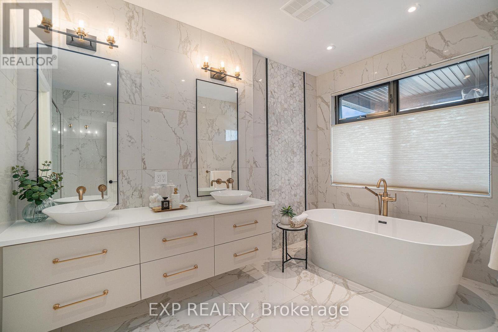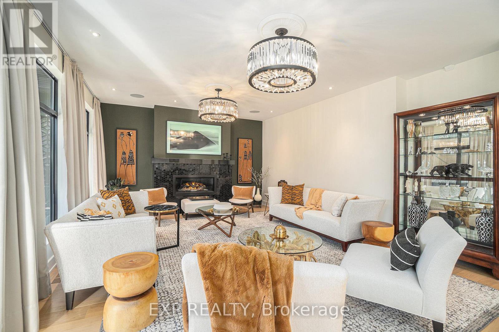 Welcome to 62 St Claire Ave - a stunning fusion of modern luxury and vintage charm with upscale finishes. From the moment you arrive, this exquisite residence makes a statement with its landscaped front yard, mirrored garage doors, and undeniable curb appeal. Step inside an elegant foyer with marble mosaic tiles that set the tone for the refined style of this home. 9-foot ceilings throughout each floor give its rooms an open and luxurious feel. The formal dining room is illuminated by an opulent Eichholtz chandelier, radiating elegance and creating the perfect ambiance for entertaining. Just off the main hallway, enter the office space through custom-designed sliding barn doors, adorned with intricate molding details. Throughout the home, gleaming hardwood floors and detailed craftsmanship provide timeless beauty. The heart of the home is a gourmet kitchen, featuring expansive quartz countertops that extend to accommodate seating, a Blanco Silgranit sink, Fisher & Paykel appliances, abundant cabinetry, and a walk-in Butler's Pantry for added storage. Unwind in the cozy family room centered around a gas fireplace with a striking black hexagon marble feature wall, granite mantle, and statement light fixtures. Upstairs, the primary bedroom serves as a serene retreat with coffered ceilings, a private walk-out balcony, and a show-stopping walk-in closet with custom built-ins and a glamorous makeup vanity. The luxurious 5pcs ensuite features heated floors, a floating double vanity, and accented with exquisite marble detailing. Three additional spacious bedrooms with coffered ceilings. The fully finished basement includes two additional bedrooms, a full 4pcs bath, kitchen and large windows providing natural light. Step outside to your private backyard oasis featuring a composite deck, custom gazebo, and a maintenance free artificial turf area perfect for relaxing or entertaining year-round. Don't miss the opportunity to make this exceptional property your new home.