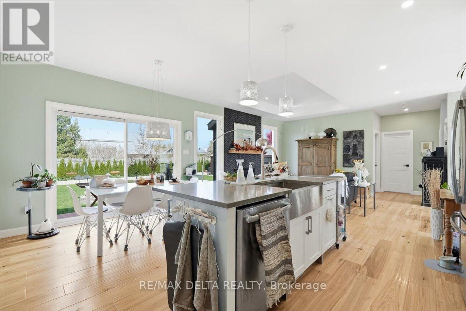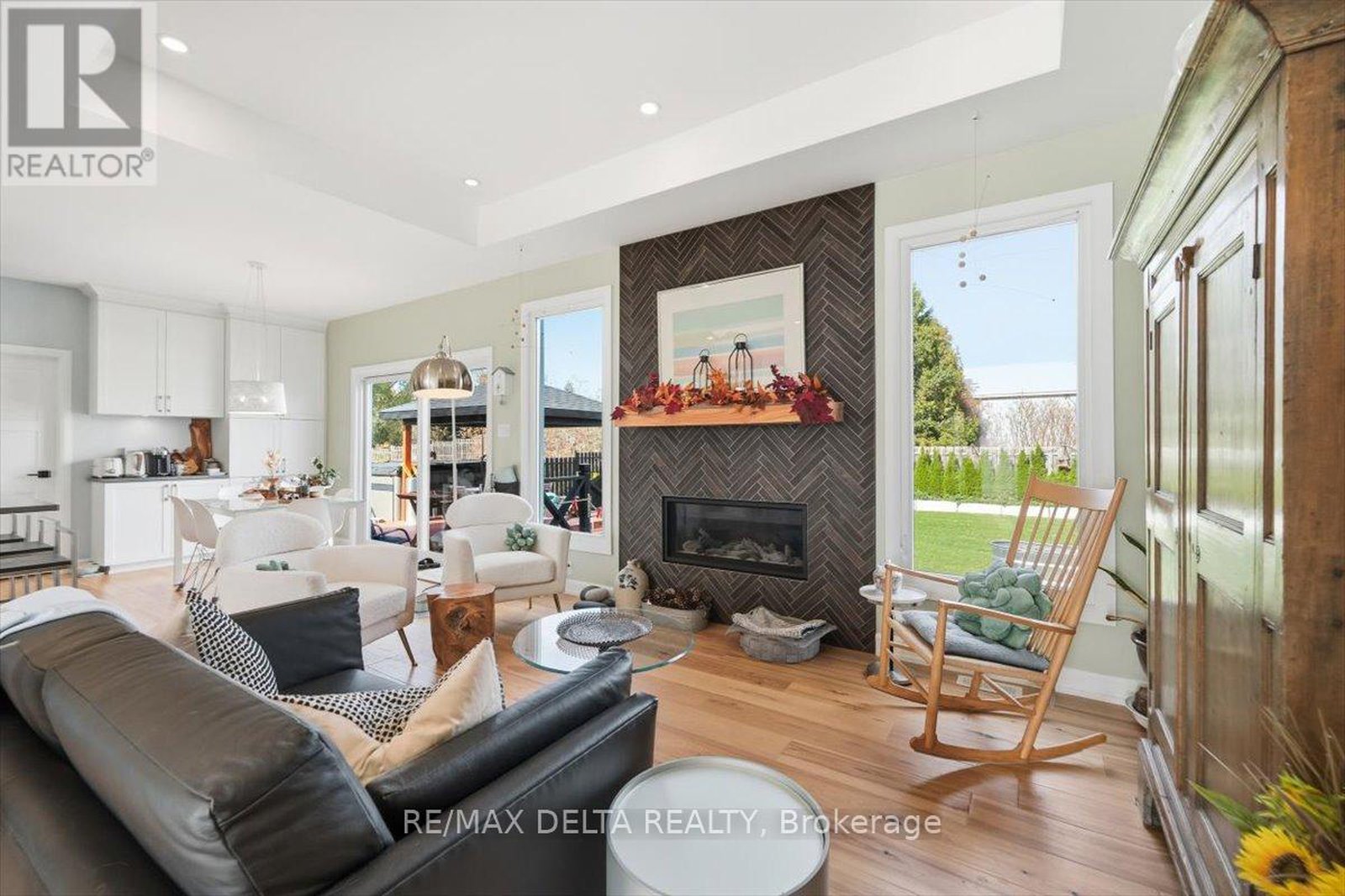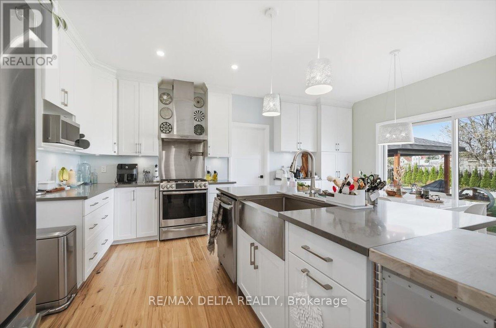 Welcome to 117 Danika. This beautiful bungalow has it all, style and quality workmanship. Beautifully designed and decorated with loads of upgrades. Separate list is attached. On the main floor, you will find an open concept kitchen with white cabinets with grey quartz countertops, stainless steel backsplash, practical water tap located over the gas range adds a rare feature to the cooking area, dining and living areas with plenty of natural light with an 8ft patio door, gleaming hardwood floors, a natural gas fireplace to cozy up and relax, beautiful neutral colors to suit all styles. 3 generous size bedrooms on the main floor + 1 large bedroom in the lower level. A spa style 4 pce ensuite, another 3 pce main bathroom on the main floor PLUS a 2 pce bathroom in the lower level. Fully finished lower level includes a very large rec room, a workshop/utility room. The beauty of this home is the exterior, fully landscaped with custom timber framed privacy screen for additional privacy on each side of the home with matching solid timber on the garage & facade.reddish lumber trim beams with quality stainless steel plates and carriage bowls, stylish custom built gazebo with pot lights, trees, stunning concrete front patio, PLUS a large detached garage 30 ft X 12 ft on concrete foundation with hydro perfect for the hobbyist in the family, added window wells,. Plug-in ready for future generator. With over $150,000 in upgrades (laneway paved, wood floor on main level, concrete front patio, concrete curbed mow strip, gazebo, added 4th garage, backyard underground draining piping with downspouts connected, concrete block retaining wall, and the list goes on. This makes this home one of a kind that you won't want to miss. Complete list of renos available upon request. No front neighbours (wooded area).