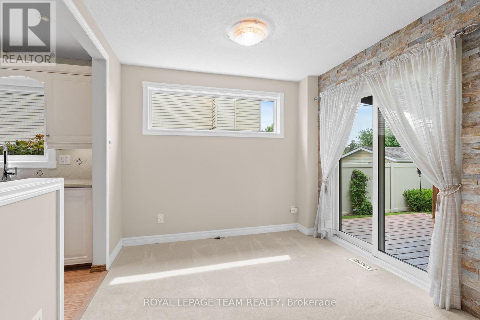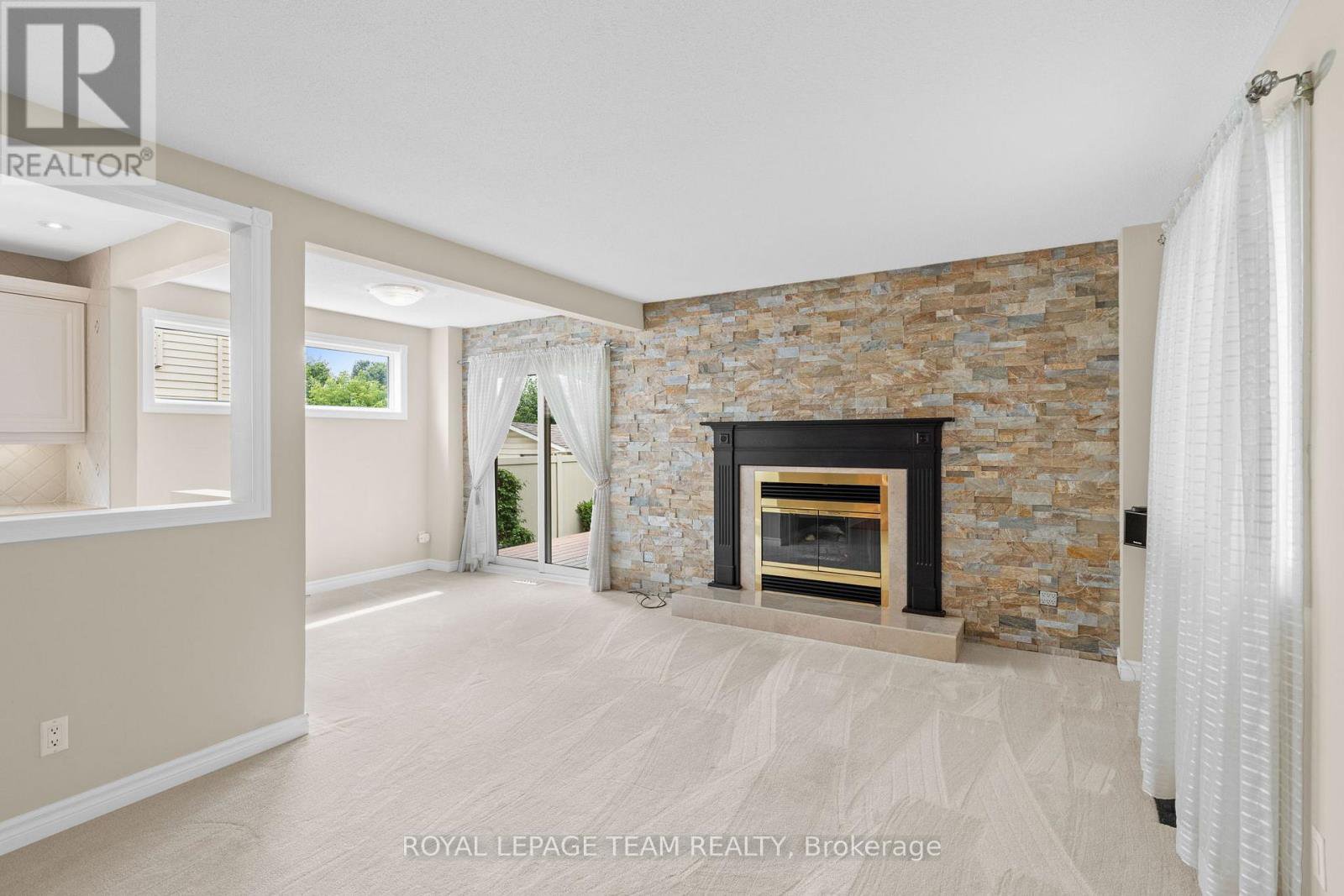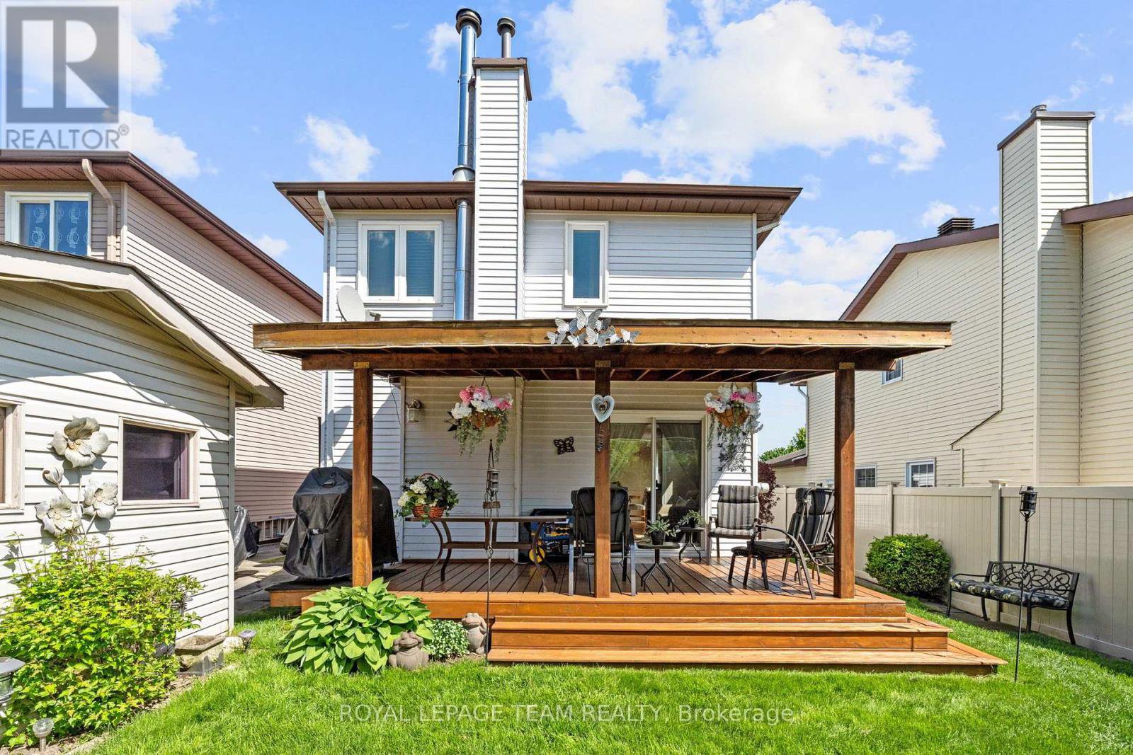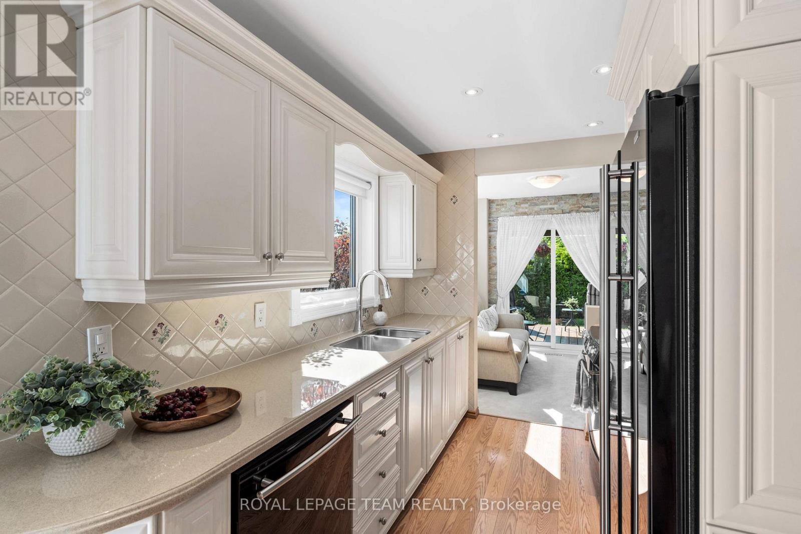 Welcome to this rare Barrhaven find! A 3-bedroom, 3-bath home with no front or rear neighbours and stylish updates throughout. Sunlight pours into the main floor thanks to added windows, while the open kitchen features solid surface counters and a sleek downdraft stove that keeps the space bright and airy. The living rooms gas fireplace and stone feature wall add warmth and style, a design touch carried throughout the home. Upstairs, the oversized primary suite includes a walk-in closet and ensuite, with two more bedrooms perfect for family or guests. The finished lower level is designed for entertaining, complete with a built-in bar, fireplace, and oversized windows. Step outside to a private backyard retreat with covered patio, gas hook-up for bbq, and direct access to walking paths. All of this just minutes to Farm Boy, schools, parks, and shopping. This home truly blends comfort, privacy, and convenience. Carpets 2024, Painted 2025, Custom Kitchen (2017), Roof approx 2016-2017, 24-hour irrevocable on offers.