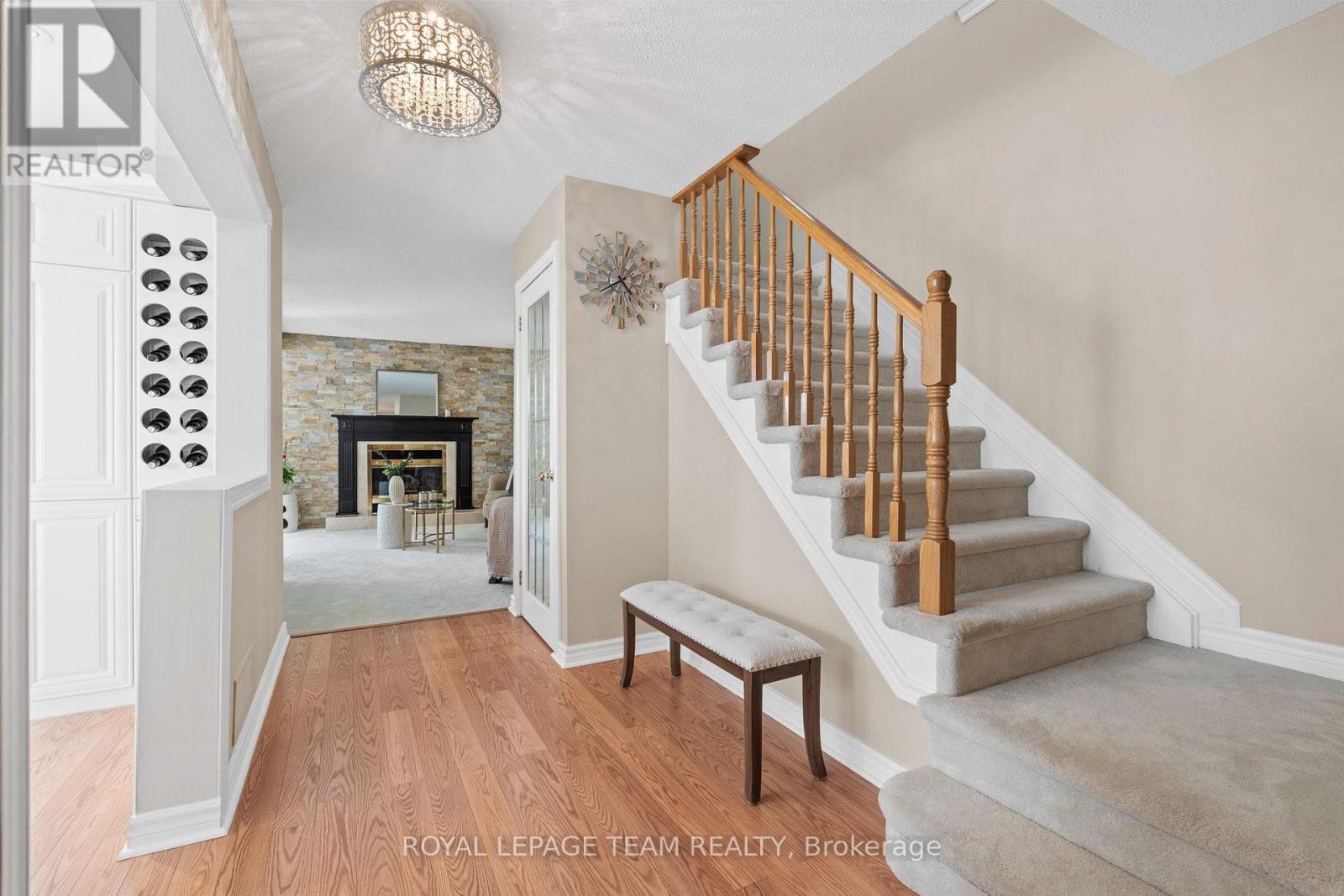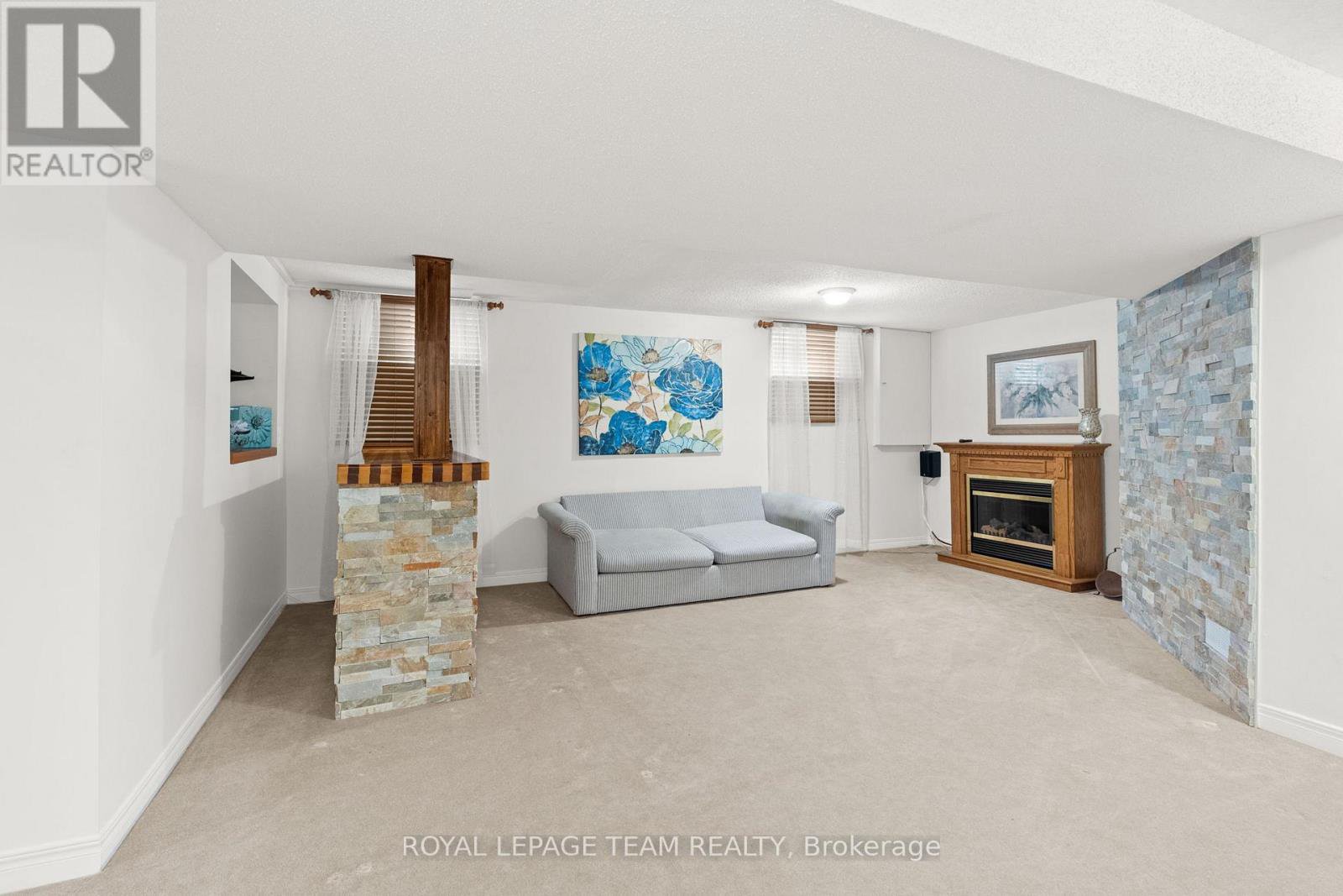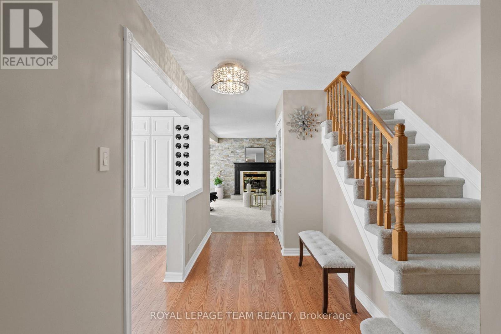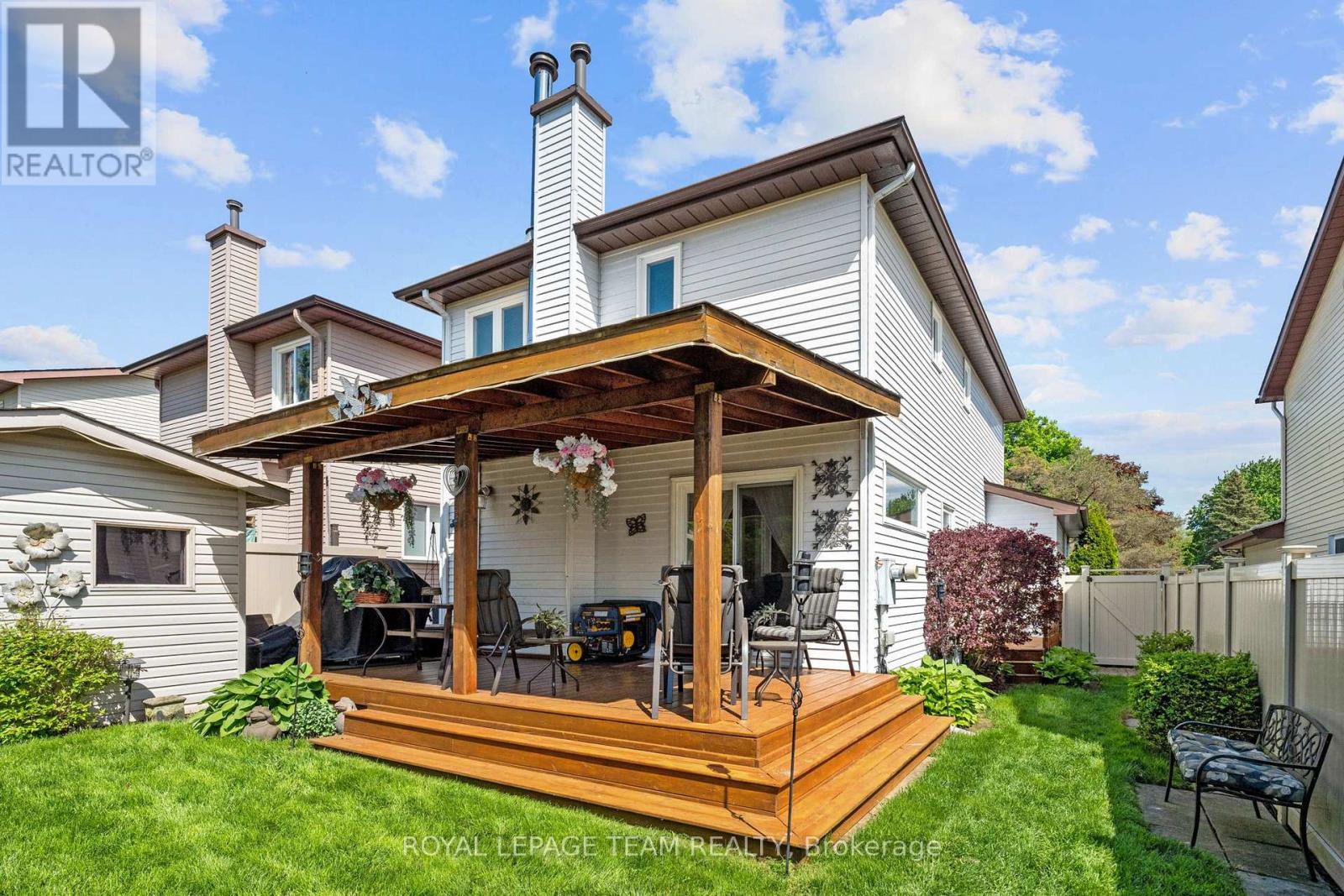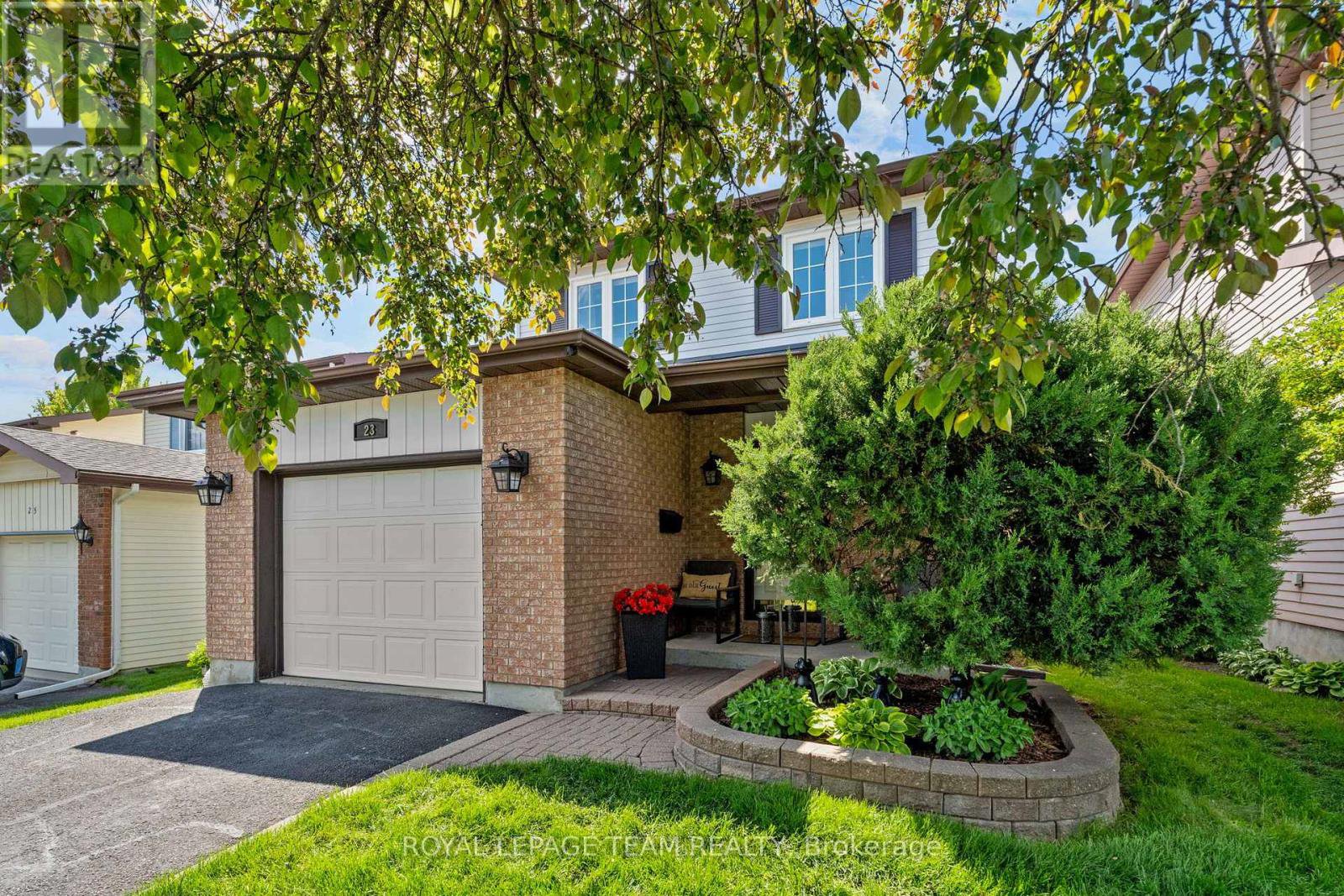 Welcome to this rare Barrhaven find! A 3-bedroom, 3-bath home with no front or rear neighbours and stylish updates throughout. Sunlight pours into the main floor thanks to added windows, while the open kitchen features solid surface counters and a sleek downdraft stove that keeps the space bright and airy. The living rooms gas fireplace and stone feature wall add warmth and style, a design touch carried throughout the home. Upstairs, the oversized primary suite includes a walk-in closet and ensuite, with two more bedrooms perfect for family or guests. The finished lower level is designed for entertaining, complete with a built-in bar, fireplace, and oversized windows. Step outside to a private backyard retreat with covered patio, gas hook-up for bbq, and direct access to walking paths. All of this just minutes to Farm Boy, schools, parks, and shopping. This home truly blends comfort, privacy, and convenience. Carpets 2024, Painted 2025, Custom Kitchen (2017), Roof approx 2016-2017, 24-hour irrevocable on offers.