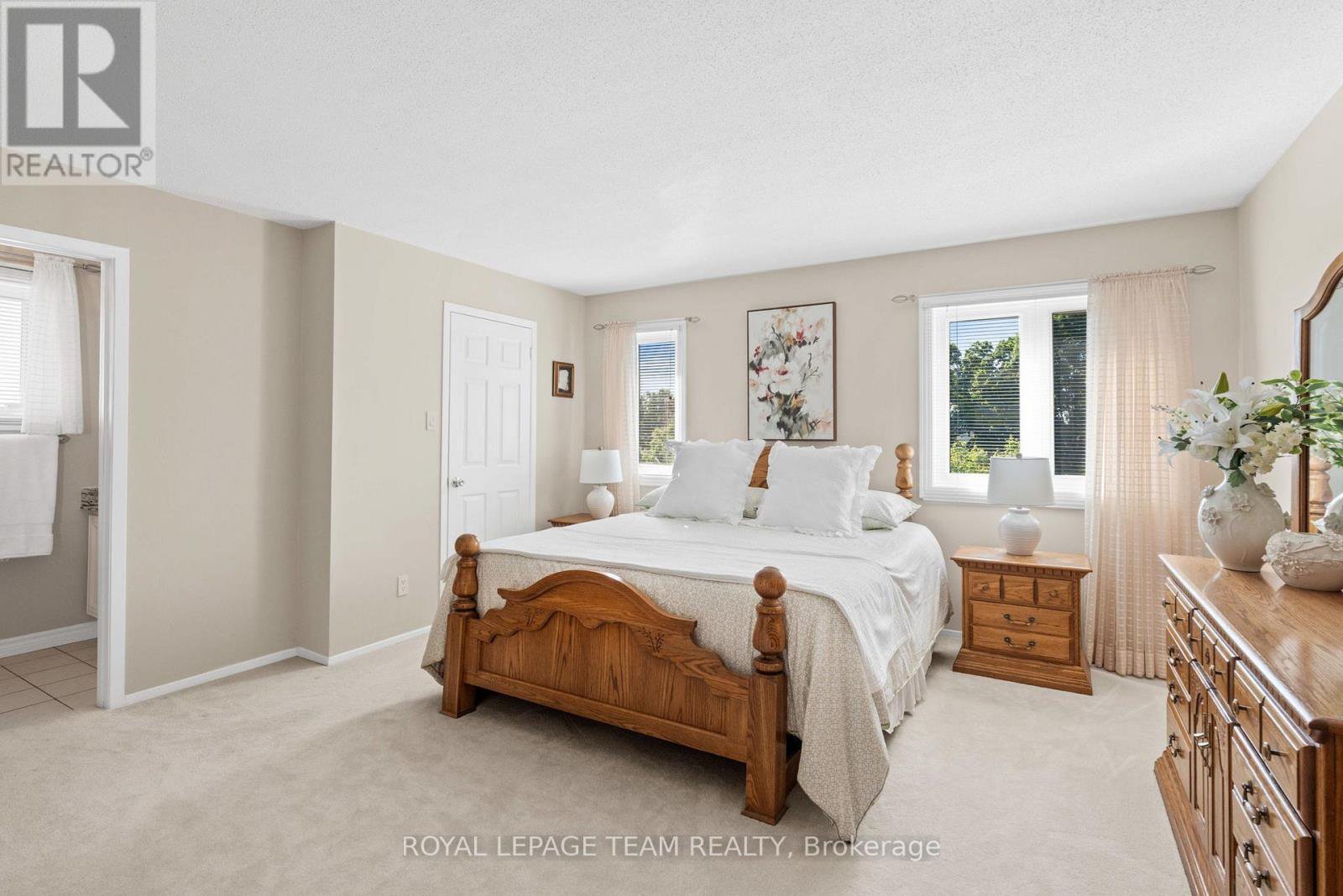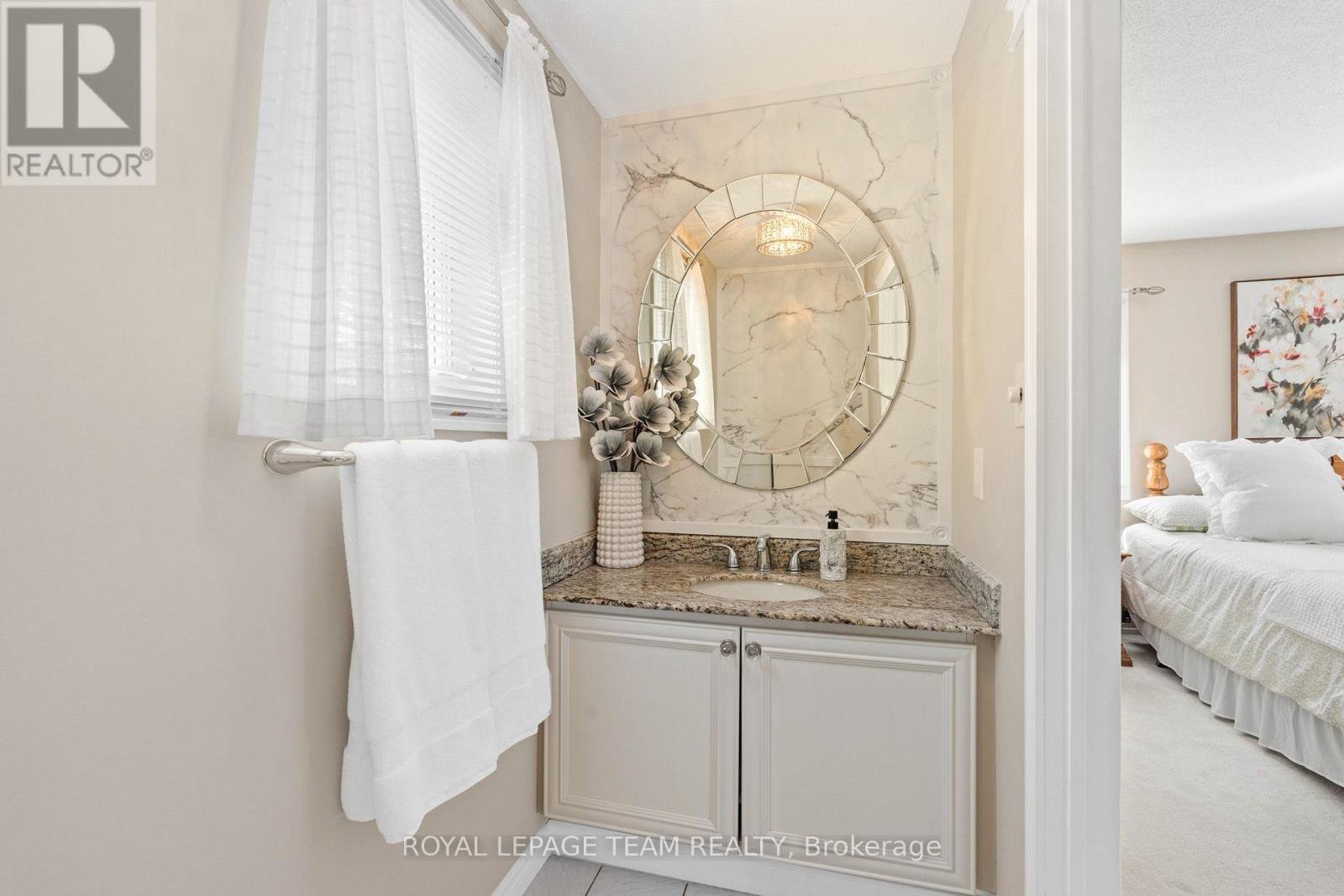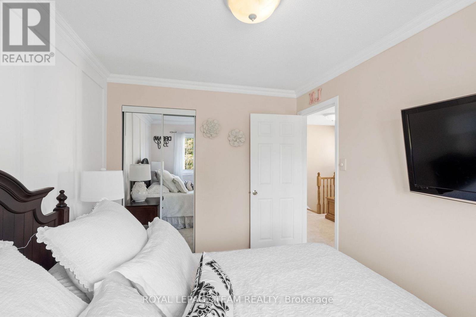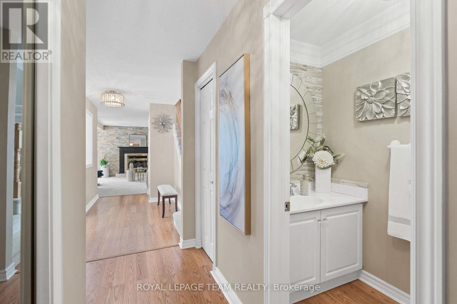 Welcome to this rare Barrhaven find! A 3-bedroom, 3-bath home with no front or rear neighbours and stylish updates throughout. Sunlight pours into the main floor thanks to added windows, while the open kitchen features solid surface counters and a sleek downdraft stove that keeps the space bright and airy. The living rooms gas fireplace and stone feature wall add warmth and style, a design touch carried throughout the home. Upstairs, the oversized primary suite includes a walk-in closet and ensuite, with two more bedrooms perfect for family or guests. The finished lower level is designed for entertaining, complete with a built-in bar, fireplace, and oversized windows. Step outside to a private backyard retreat with covered patio, gas hook-up for bbq, and direct access to walking paths. All of this just minutes to Farm Boy, schools, parks, and shopping. This home truly blends comfort, privacy, and convenience. Carpets 2024, Painted 2025, Custom Kitchen (2017), Roof approx 2016-2017, 24-hour irrevocable on offers.