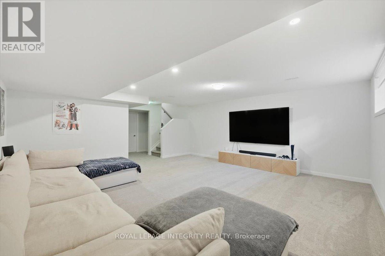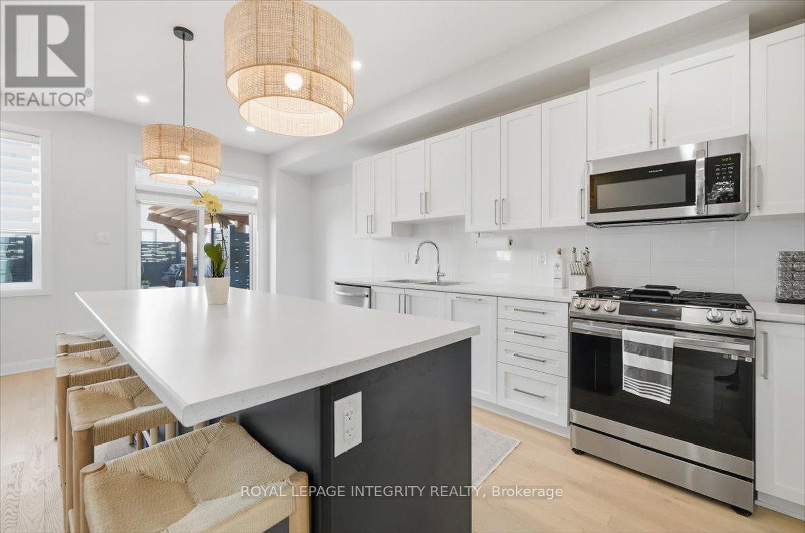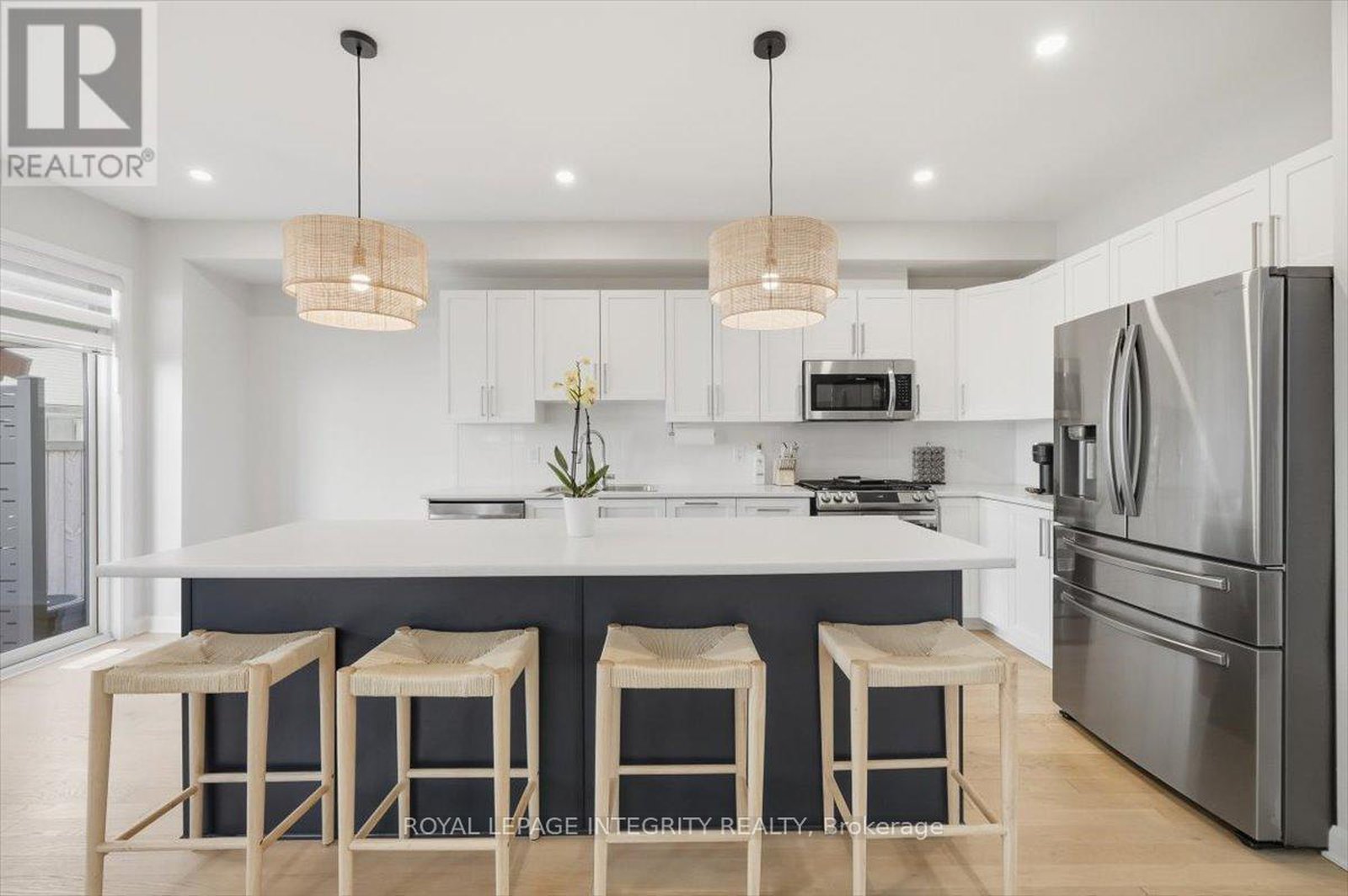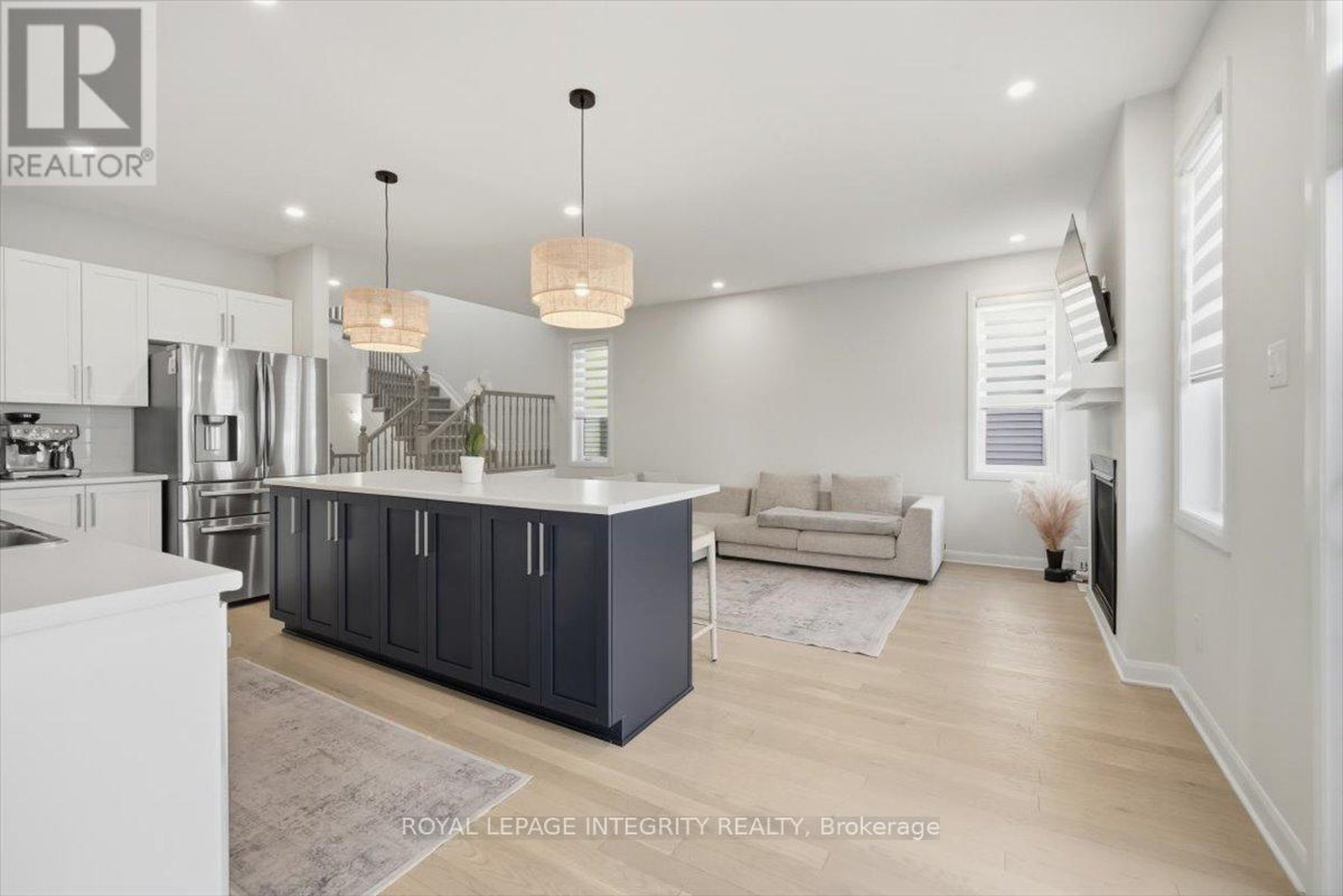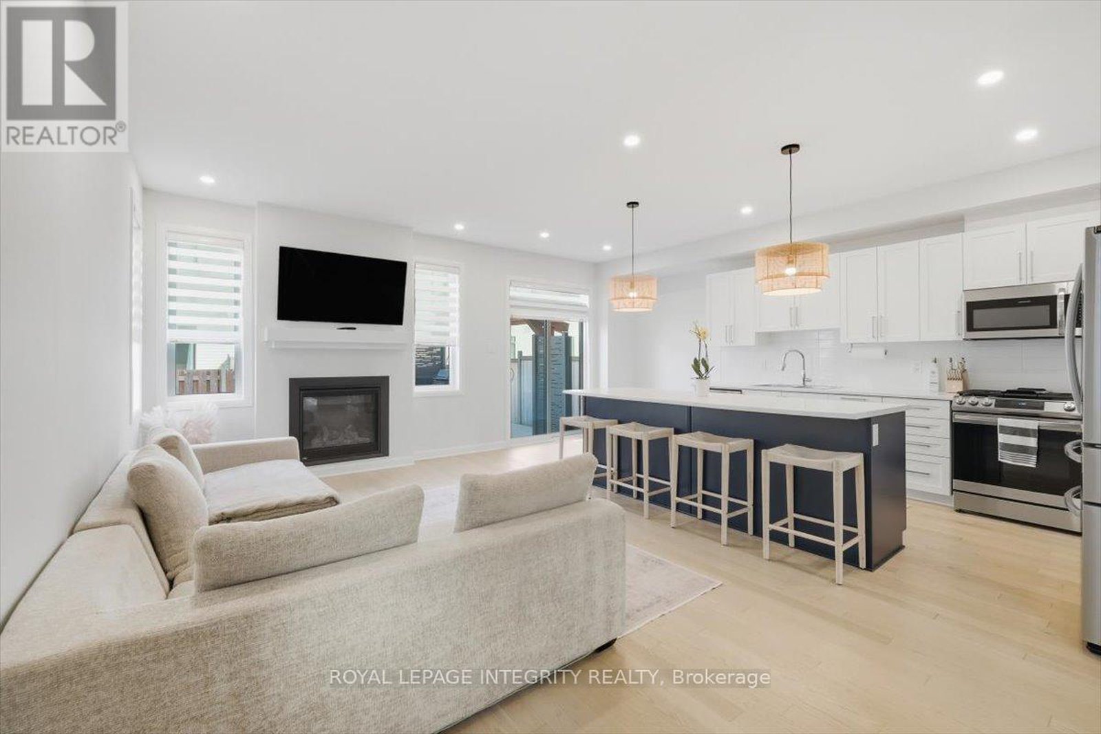 Welcome to 717 Sebastian Street - a stunning 2022 Minto Tahoe end unit townhome that truly checks every box! Meticulously maintained and move-in ready, this 3-bedroom, 3-bathroom home offers over 1,930 sqft of modern living with no front neighbours & the luxury of a future park just steps away. Step into the bright, welcoming foyer with convenient powder room and feel the elegance of the open-concept main floor featuring 9-ft ceilings, hardwood & ceramic floors, as well as upgraded pot lights. The gourmet kitchen is a showstopper two toned cabinetry, stainless steel appliances including a gas stove, a subway tile backsplash, and an extended island with seating that flows beautifully into the dining area and cozy living room with gas fireplace. A handy mudroom with garage access completes the main level. Upstairs, the hardwood hallway leads you into the spacious primary suite with walk-in closet and ensuite featuring a glass shower, plus two additional bedrooms, a full bath, and a convenient laundry area. The finished lower level offers a bright family room with pot lights, large window for natural light and ample storage. Outside, enjoy your fully fenced backyard complete with deck and gazebo - perfect for relaxing or entertaining. Outdoor enthusiasts will love the proximity to the Aquaview Pond and its walking trails. Ideally located close to schools, parks, shopping, and all amenities, this home blends comfort, style, and convenience - an absolute must-see!