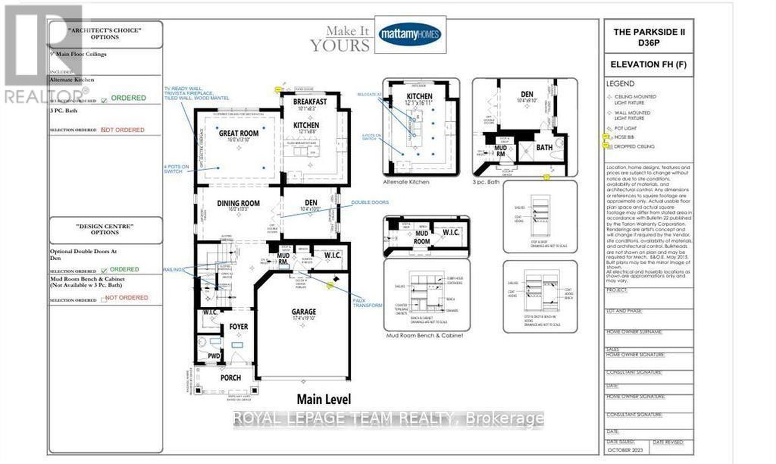FINISHED BASEMENT WITH FULL BATH! Welcome to one of Mattamy's most popular models, the Parkside 2, offering over $146,000 in upgrades. This stunning double-car garage home in the sought-after Half Moon Bay community is brand new and set for completion next year. The inviting front porch opens into a spacious foyer with a powder room and walk-in closet, leading to a mudroom with inside garage access and additional storage. The main floor features an open-concept layout with a dining room, a great room with an electric fireplace, and a separate den with French doors, ideal as a home office or a separate living space. The chef's kitchen includes a large island, quartz countertops, upgraded cabinetry, and a breakfast nook with patio doors to the backyard. Hardwood stairs take you to the second floor, where the primary bedroom impresses with a massive walk-in closet and a luxurious spa-like 5-piece ensuite. Bedrooms 2 and 3 share a Jack & Jill bathroom, Bedroom 4 enjoys its own ensuite, and all have walk-in closets. A convenient second-floor laundry adds to the functionality. The fully finished basement includes a large rec room and a full bathroom, perfect for additional living space. Located on a quiet street in a family-friendly neighbourhood, this home is just minutes from trails, Barrhaven Marketplace, top-rated schools, the Minto Recreation Centre, and more. The photos are intended solely to showcase the builder's finishes.
