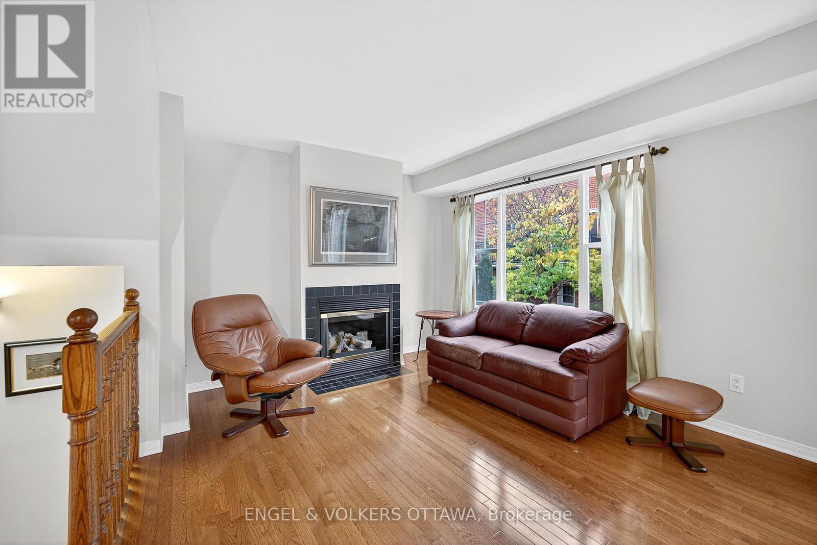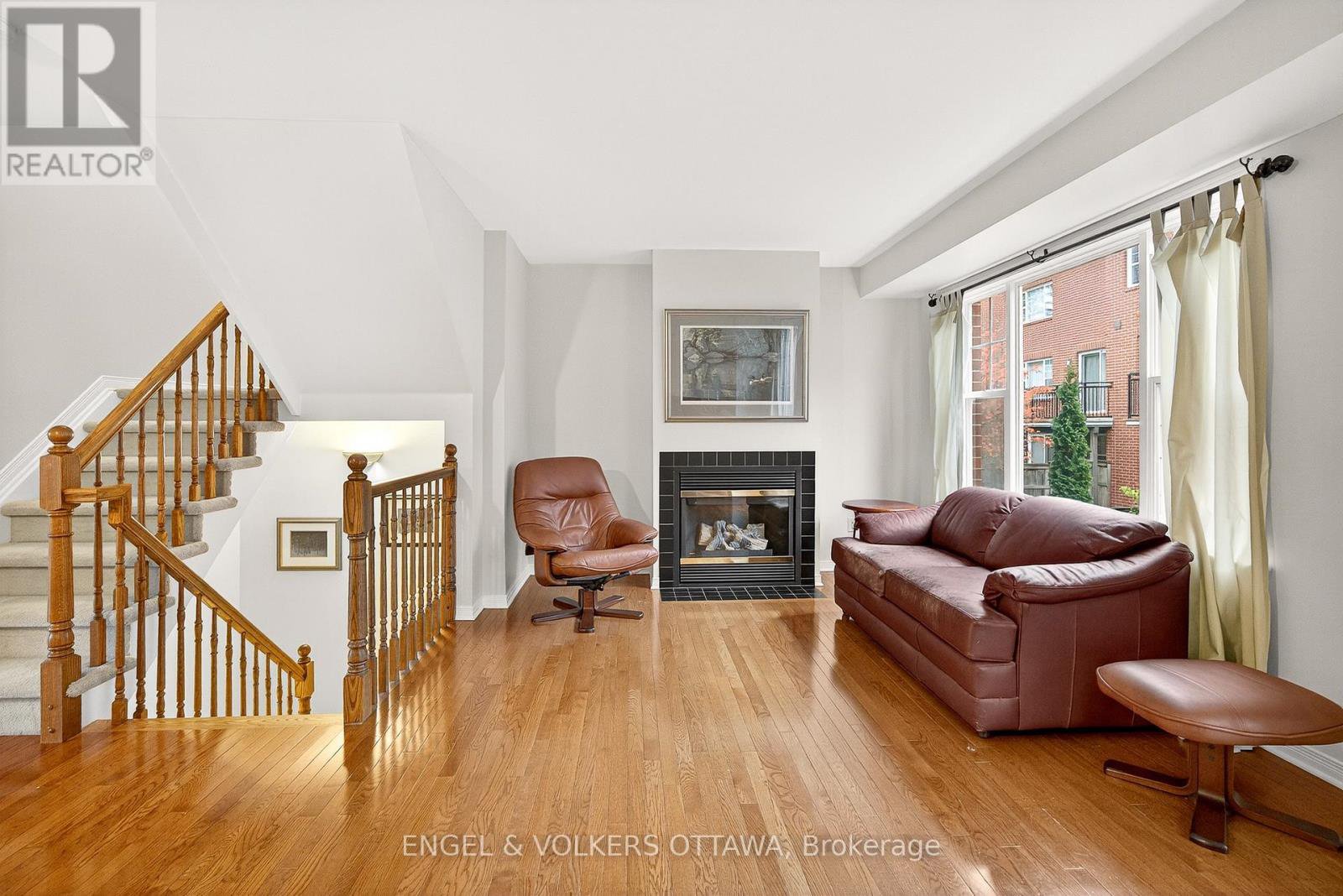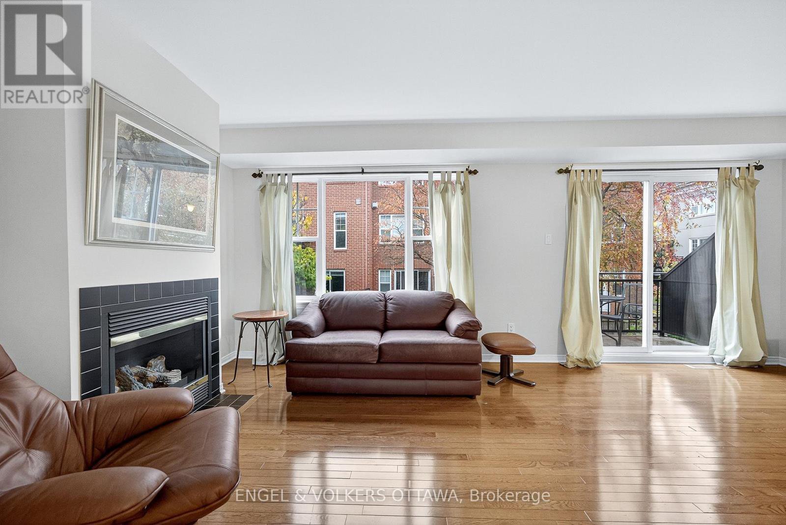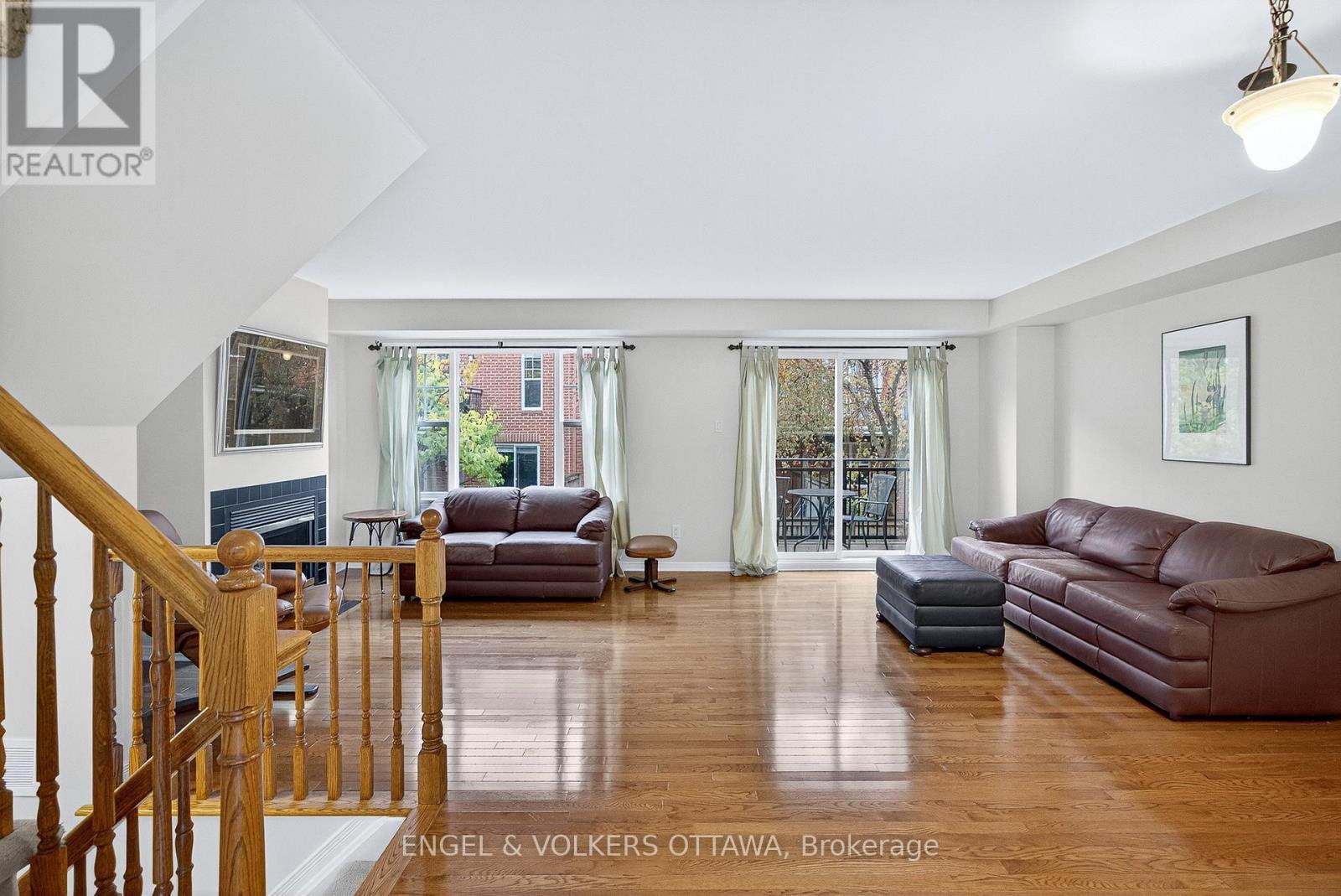 This lovely 3-bed, 3-bath townhouse by Domicile in Manor Park is the perfect home for anyone looking to set down roots in one of Ottawa's most welcoming neighbourhoods. The ground level features a spacious foyer with two double closets, a powder room, interior access to the attached garage, and both an office and a living space with direct access to a private backyard patio, finished in a combination of tile and hardwood. The second level showcases beautiful hardwood floors installed in 2018 and includes a bright living room with a gas fireplace, balcony, and a formal dining area adjacent to the living room. A remarkably large eat-in kitchen that has new quartz countertops (2025), new stainless steel appliances, and access to a second balcony completes the level. The third floor, finished with wall-to-wall carpet, hosts all three bedrooms, including a primary suite with a walk-in closet and 3-piece ensuite, plus two additional bedrooms with ample closet space and a 4-piece main bathroom. The unfinished basement provides ample storage and houses the laundry area. The entire property was freshly painted in 2025, making it move-in ready. Don't miss the chance to live in this amazing community!