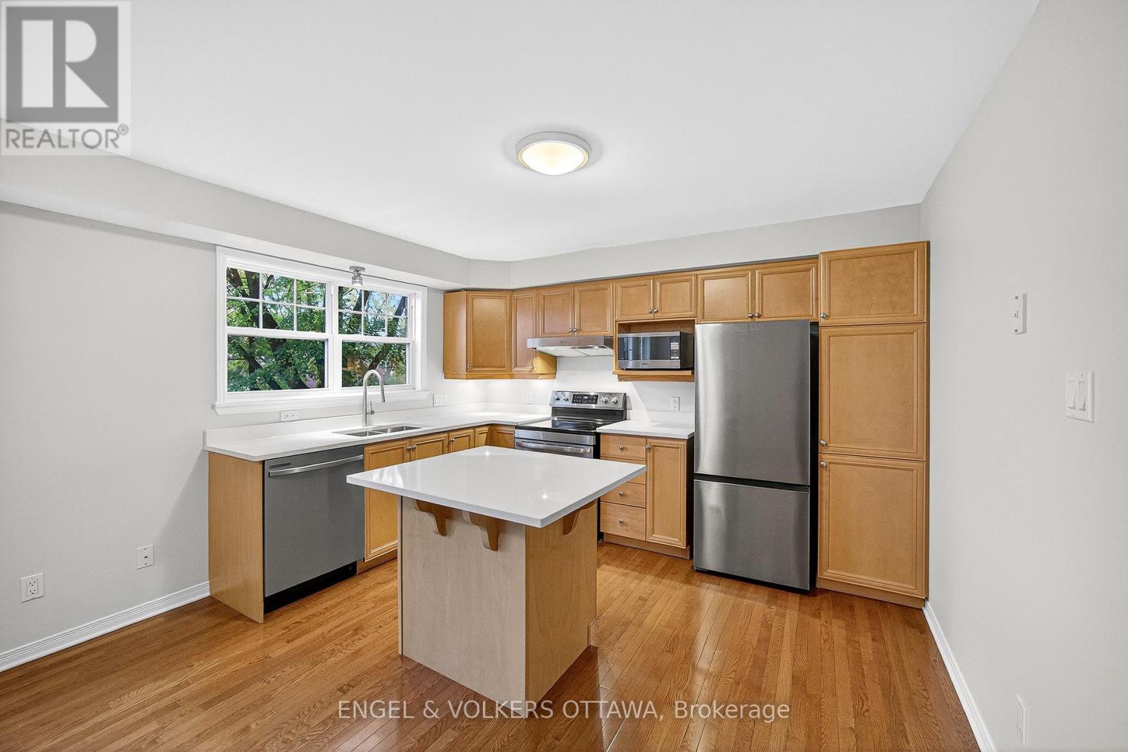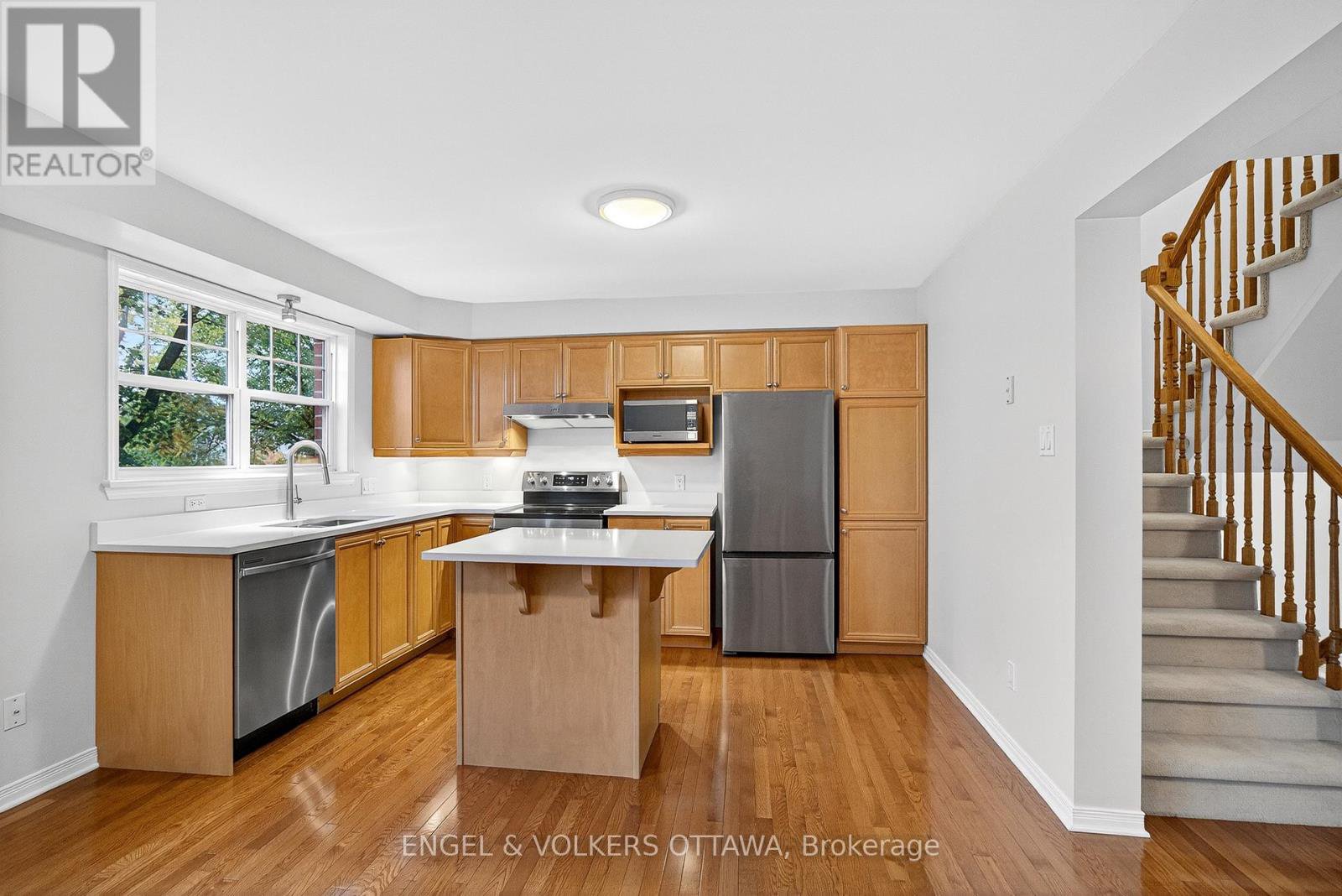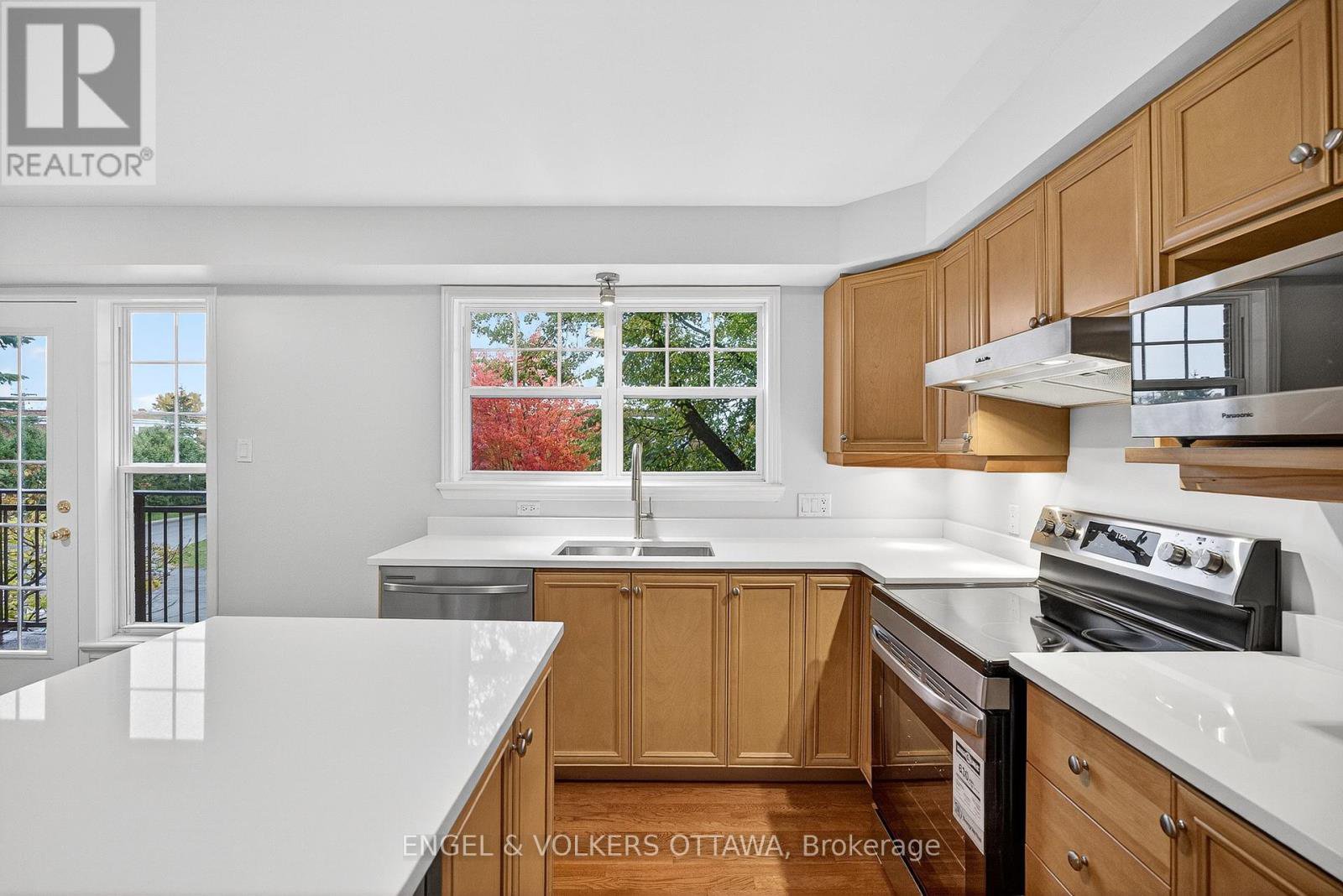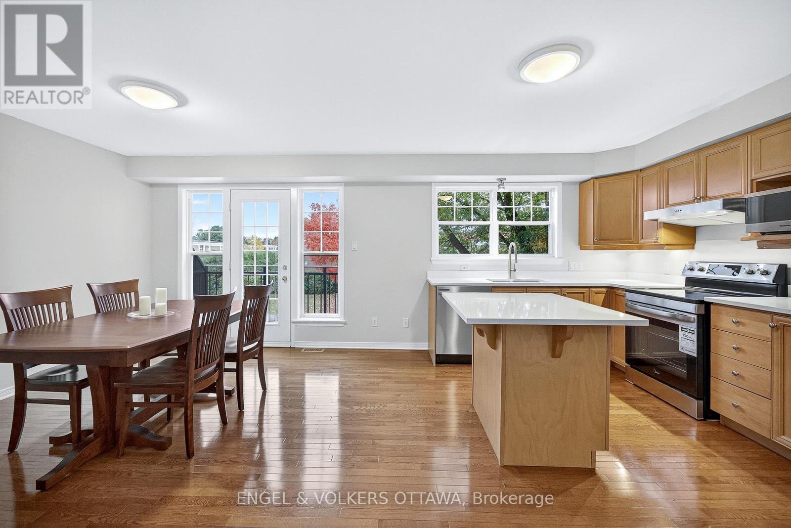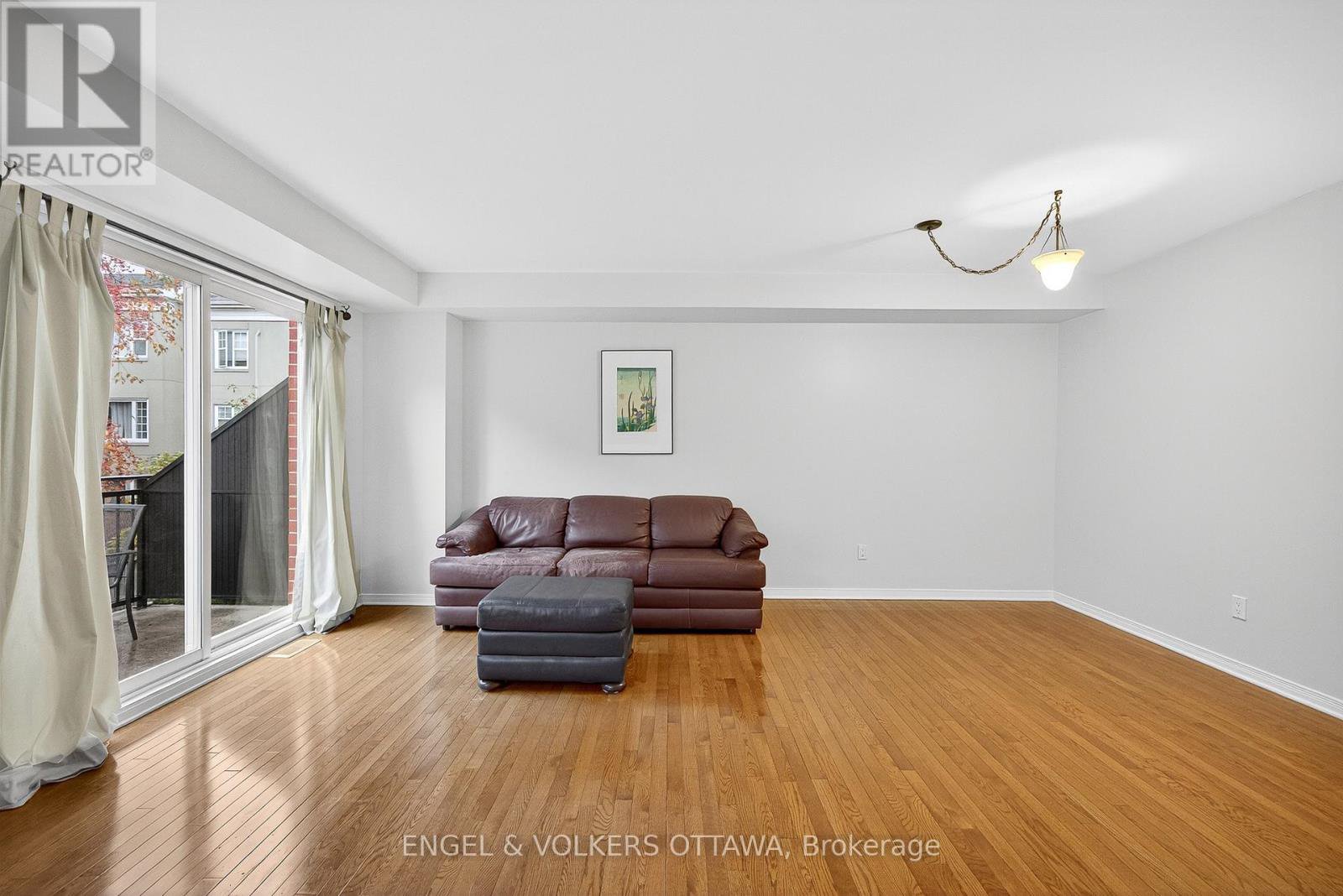 This lovely 3-bed, 3-bath townhouse by Domicile in Manor Park is the perfect home for anyone looking to set down roots in one of Ottawa's most welcoming neighbourhoods. The ground level features a spacious foyer with two double closets, a powder room, interior access to the attached garage, and both an office and a living space with direct access to a private backyard patio, finished in a combination of tile and hardwood. The second level showcases beautiful hardwood floors installed in 2018 and includes a bright living room with a gas fireplace, balcony, and a formal dining area adjacent to the living room. A remarkably large eat-in kitchen that has new quartz countertops (2025), new stainless steel appliances, and access to a second balcony completes the level. The third floor, finished with wall-to-wall carpet, hosts all three bedrooms, including a primary suite with a walk-in closet and 3-piece ensuite, plus two additional bedrooms with ample closet space and a 4-piece main bathroom. The unfinished basement provides ample storage and houses the laundry area. The entire property was freshly painted in 2025, making it move-in ready. Don't miss the chance to live in this amazing community!