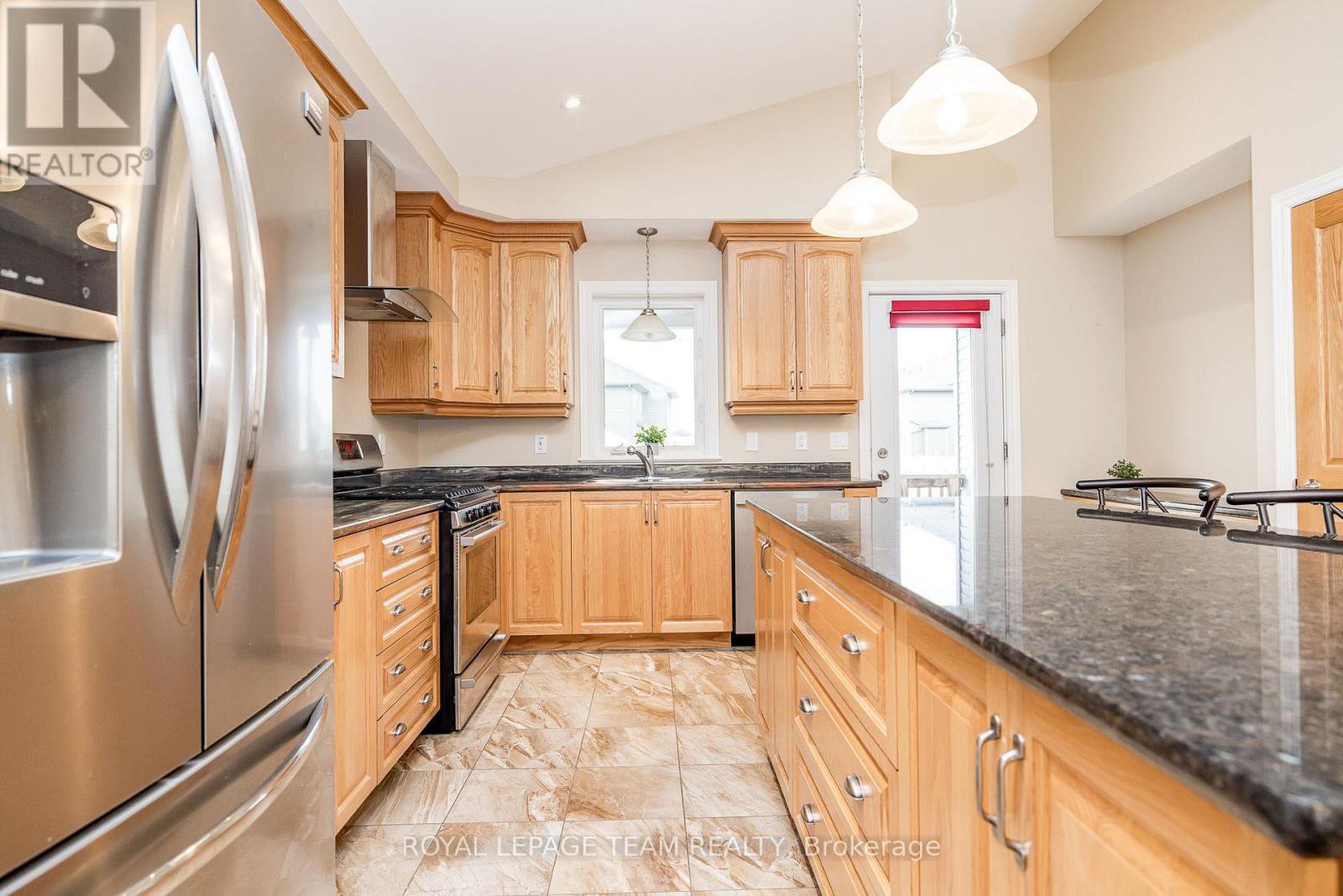 Discover the perfect blend of elegance, comfort, and low-maintenance living with this stunning Corvinelli-built bungalow. Renowned for superior craftsmanship and attention to detail, Corvinelli Homes are celebrated for quality construction and award-winning design. Built in 2015, this 3-bedroom, 3-bathroom home offers a bright, open-concept main floor that effortlessly connects living, dining, and entertaining spaces. At the heart of the home, the stylish kitchen features a granite-topped island, ideal for gathering with family or hosting friends. The fully finished lower level expands your possibilities with its generous layout and abundant natural light. Whether you envision a home office, gym, studio, extra bedrooms, or even a home theatre, this versatile space is ready to be tailored to your lifestyle. Set in a mature Russell neighbourhood, this home offers the best of both worlds: a peaceful, established setting just minutes from schools, shops, and all the local charm the village has to offer. With its combination of modern luxury and small-town warmth, this home is truly a gem waiting to be discovered. Home is roughed in for Central Vacuum. Hydro $90. mth approx. Natural Gas $95. mth approx. Municipal Water/Sewer $250 every three months approx. 24 Hour irrevocable on all offers