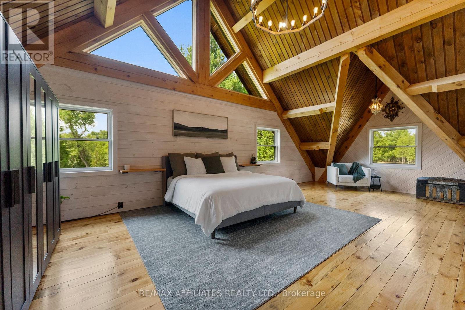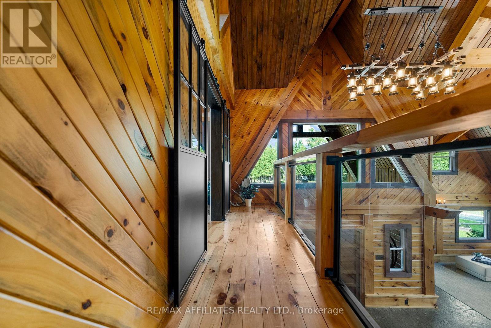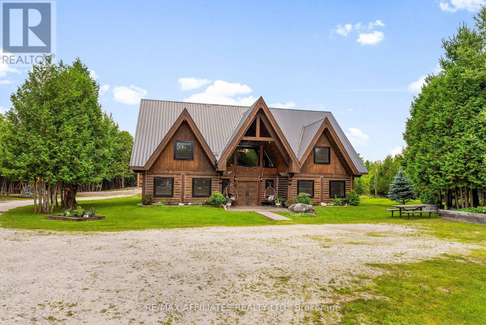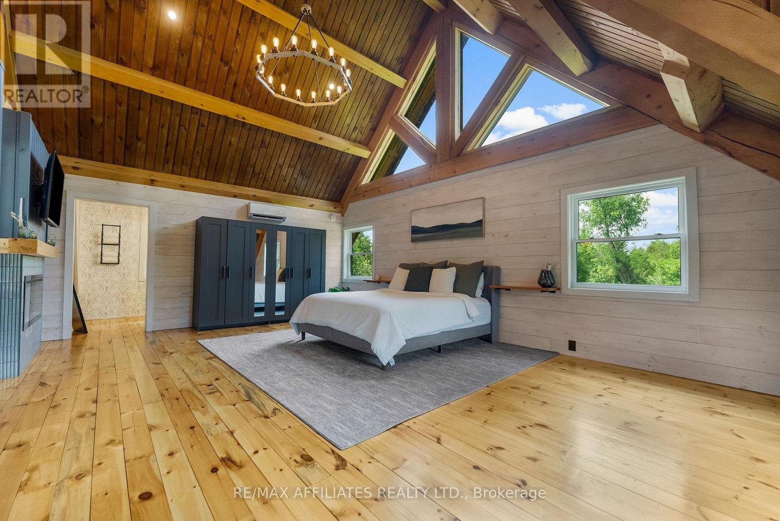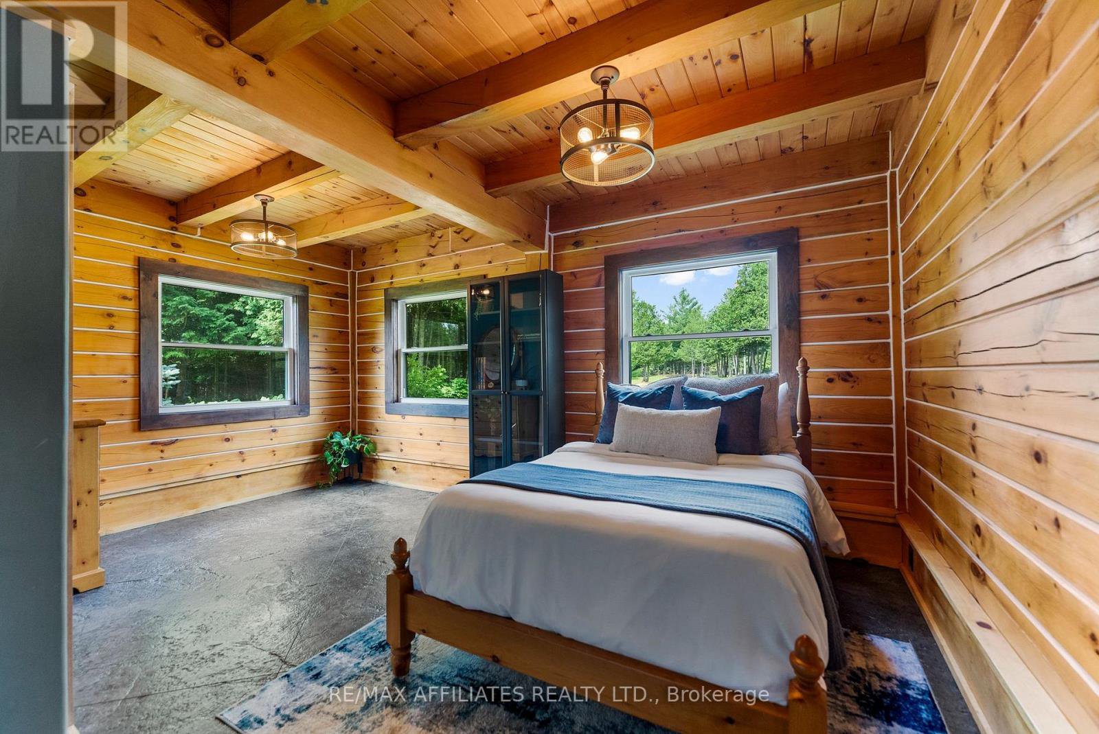 There's something undeniably special about a log home - the scent of the wood, the texture of the beams, the way it grounds you and reminds you of what truly matters. Whatever it is, you'll find it here. Tucked away on 2.4 private, tree-lined acres just minutes from the Village of Lanark, this custom-built 2013 log home is a one-of-a-kind retreat that blends impeccable craftsmanship with effortless comfort. It's more than a home - it's a lifestyle. From the moment you arrive, the stunning timber-frame entrance sets the tone, with soaring cathedral ceilings, exposed beams, and an abundance of natural light that fills every corner. The open-concept design feels both grand and inviting, perfectly balancing rustic charm with modern sophistication. No basement here - just easy, efficient, slab-on-grade living enhanced by radiant in-floor heating and beautifully stamped concrete floors. The elegant kitchen offers tiled countertops, ample storage, and timeless design, while both bathrooms feature sleek quartz finishes and high-quality fixtures. The second floor overlooks the great room below and opens to a show-stopping primary suite complete with an electric fireplace and a magazine-worthy ensuite - a true sanctuary at day's end. Every detail has been thoughtfully curated to celebrate the beauty of natural living. Enjoy your morning coffee on the covered porch, or spend slow afternoons under the whispering trees - this property invites you to breathe deeply, unwind, and simply be. With a metal roof (2014) and low-maintenance exterior, your time can be spent enjoying the lifestyle you've been dreaming of, not maintaining it. If you've been searching for a place that embodies authentic craftsmanship, tranquility, and understated luxury, this extraordinary log home is waiting for you.