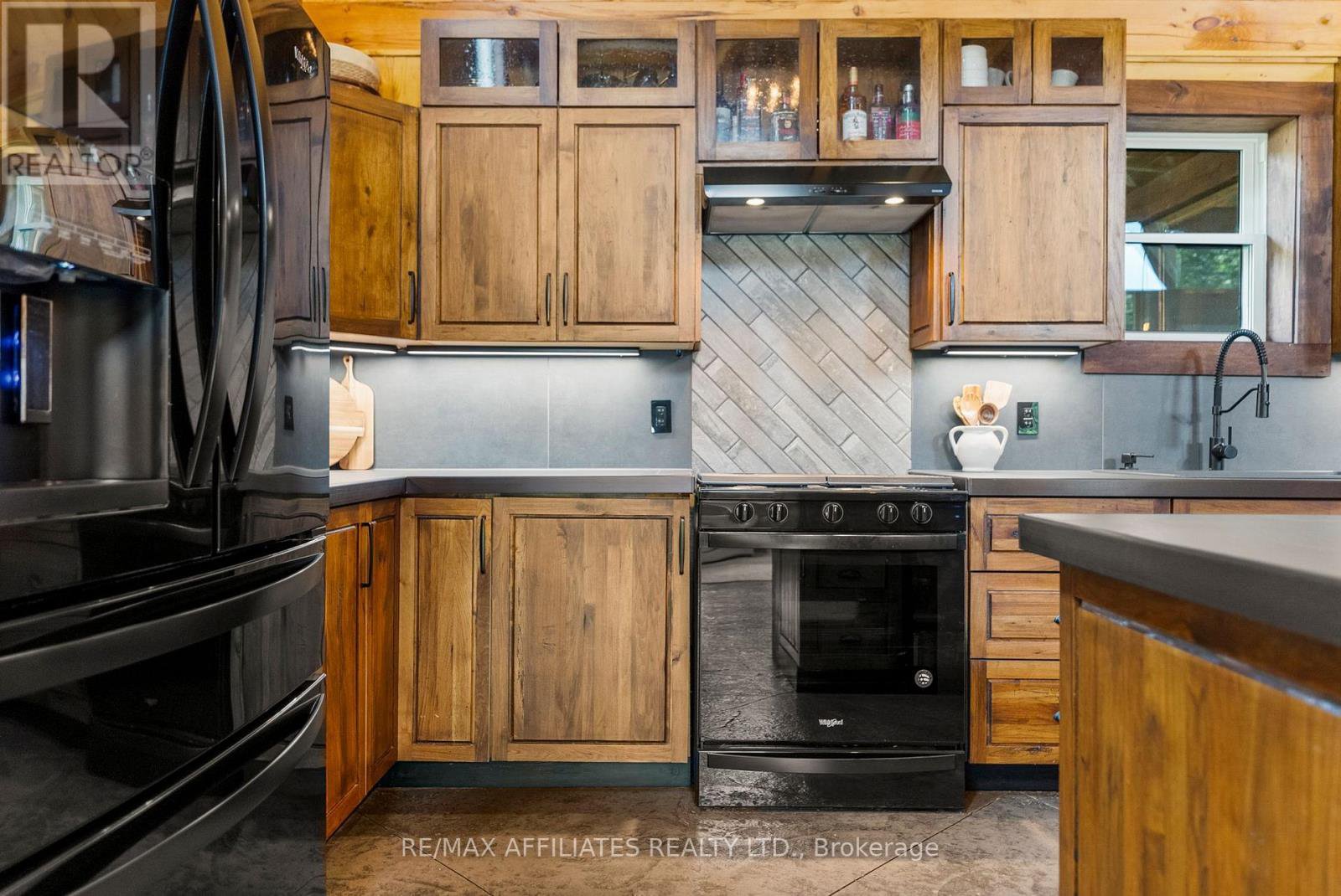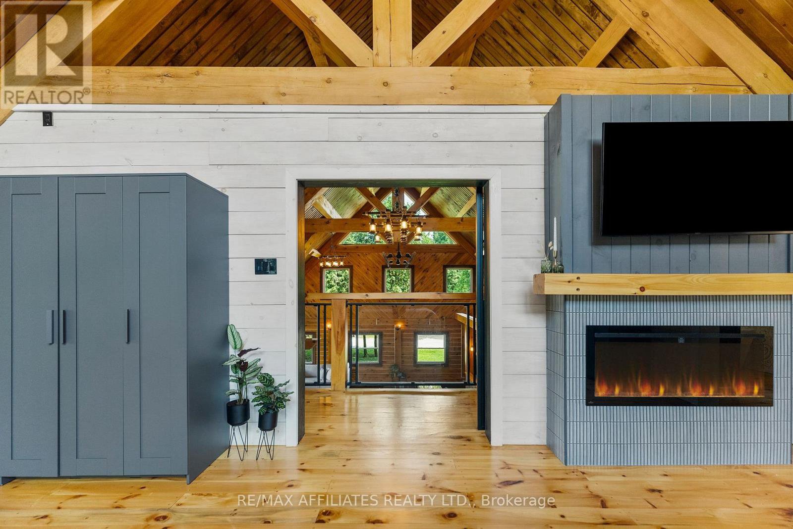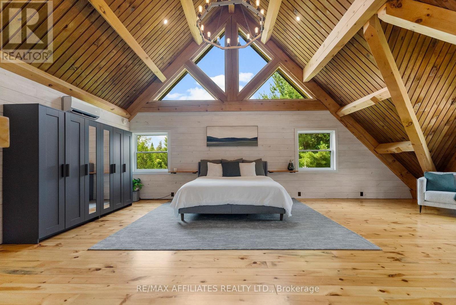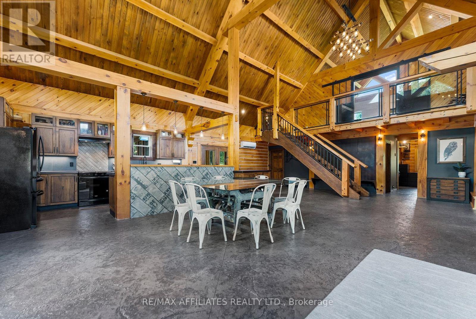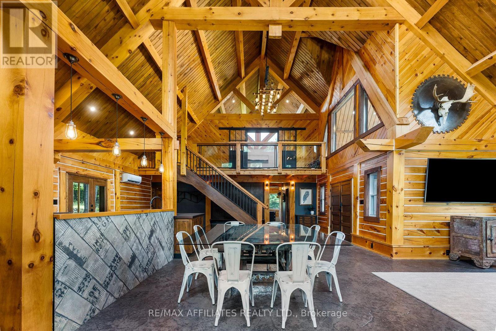 There's something undeniably special about a log home - the scent of the wood, the texture of the beams, the way it grounds you and reminds you of what truly matters. Whatever it is, you'll find it here. Tucked away on 2.4 private, tree-lined acres just minutes from the Village of Lanark, this custom-built 2013 log home is a one-of-a-kind retreat that blends impeccable craftsmanship with effortless comfort. It's more than a home - it's a lifestyle. From the moment you arrive, the stunning timber-frame entrance sets the tone, with soaring cathedral ceilings, exposed beams, and an abundance of natural light that fills every corner. The open-concept design feels both grand and inviting, perfectly balancing rustic charm with modern sophistication. No basement here - just easy, efficient, slab-on-grade living enhanced by radiant in-floor heating and beautifully stamped concrete floors. The elegant kitchen offers tiled countertops, ample storage, and timeless design, while both bathrooms feature sleek quartz finishes and high-quality fixtures. The second floor overlooks the great room below and opens to a show-stopping primary suite complete with an electric fireplace and a magazine-worthy ensuite - a true sanctuary at day's end. Every detail has been thoughtfully curated to celebrate the beauty of natural living. Enjoy your morning coffee on the covered porch, or spend slow afternoons under the whispering trees - this property invites you to breathe deeply, unwind, and simply be. With a metal roof (2014) and low-maintenance exterior, your time can be spent enjoying the lifestyle you've been dreaming of, not maintaining it. If you've been searching for a place that embodies authentic craftsmanship, tranquility, and understated luxury, this extraordinary log home is waiting for you.