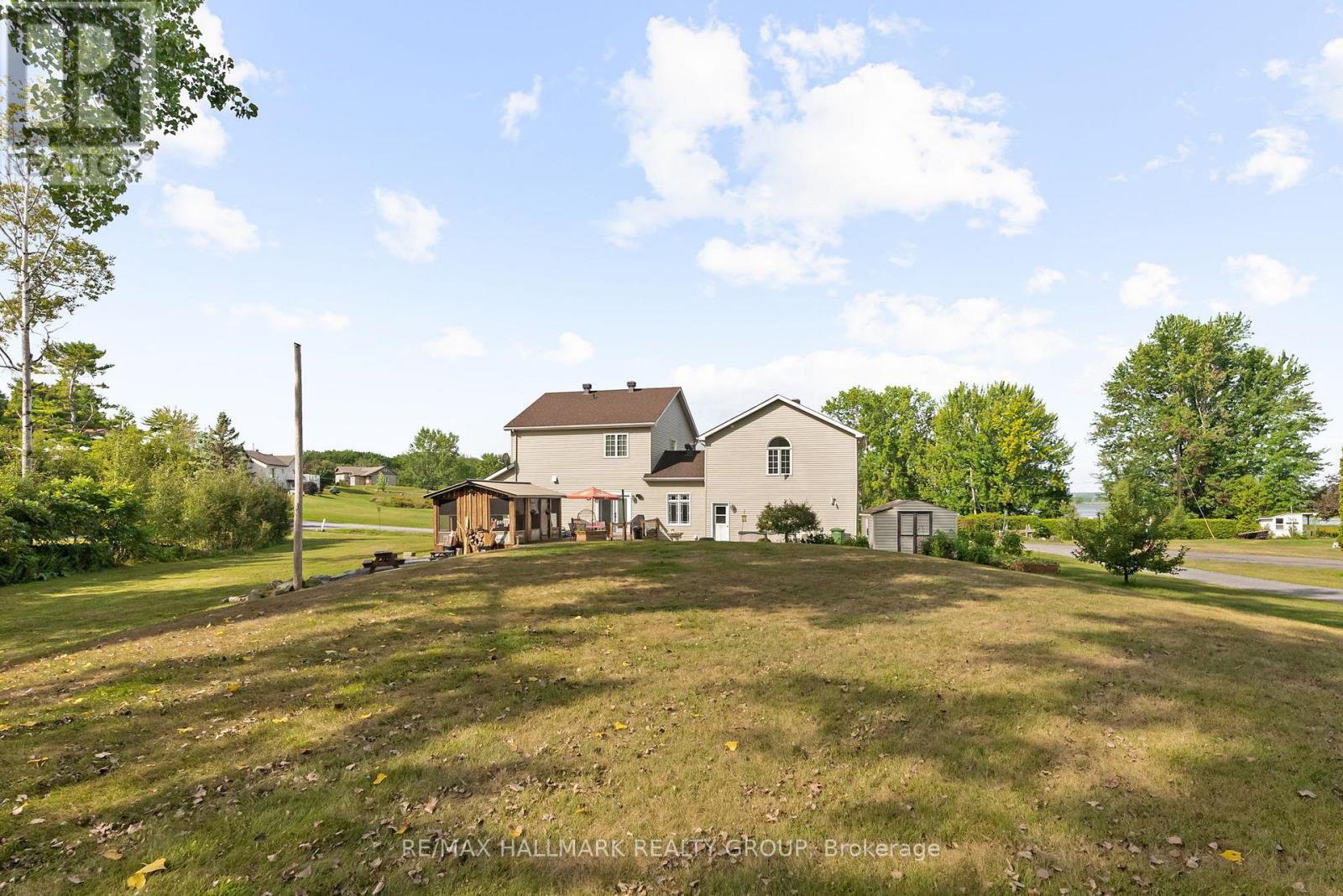 Welcome to this stunning 3-bedroom home perfectly situated next to the Ottawa River, offering incredible views, abundant natural light from its many windows, and the bonus of a private in-law suite. The home's inviting wraparound porch adds charm and plenty of space to relax outdoors, while inside, the gourmet kitchen features a gas stove, large island, and ample room for entertaining. The living room boasts a cozy three-sided fireplace, while bamboo floors and a feature dining room wall add warmth and character. The dining area overlooks the expansive back deck, which includes a fully enclosed gazebo (3.55mx4.70m) that functions as an outdoor living space, offering plenty of room to relax, dine, or entertain in comfort throughout the seasons. The main floor also includes a full 3-piece bathroom and laundry room for added convenience. Upstairs, you'll find a spacious primary bedroom, overlooking the water, paired with a truly stunning main bathroom that exudes luxury, featuring a freestanding soaking tub, oversized glass shower with rainfall showerhead, dual vanities, elegant tile work, and a vaulted window that floods the space with natural light, creating a spa-like retreat right at home. The fully finished lower level offers a home theatre room, perfect for movie nights. The in-law suite, privately set above the oversized two-car garage, provides versatile living space for extended family or guests. This home is truly one of a kind, ideal if you're looking for comfort, functionality, and a touch of something special right by the water. 24 hour irrevocable on all offers.