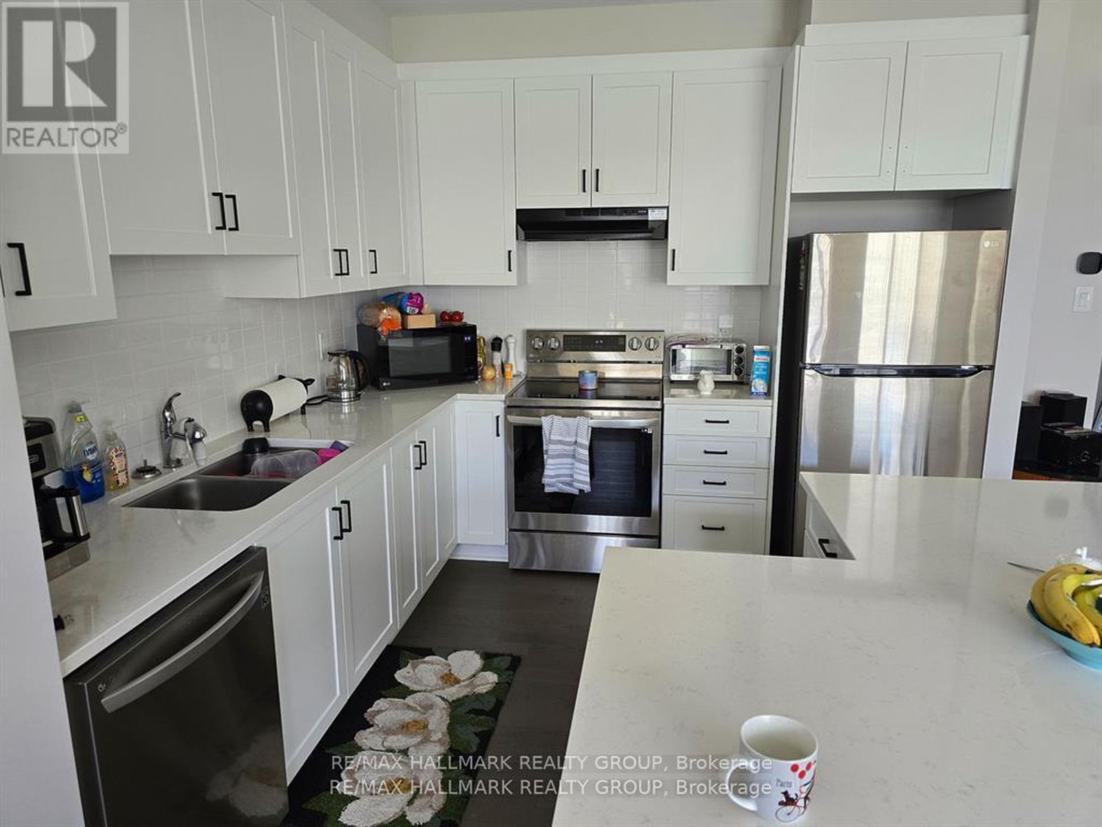 Welcome to this stunning End-Unit Townhome, newly built in 2024, in Barrhavens prestigious Stonebridge community home to the renowned Stonebridge Golf Course and celebrated for its family-friendly charm. Offering 3 spacious bedrooms and 3.5 bathrooms, this modern residence blends comfort, convenience, and style.Flooded with natural light, the open-concept main floor showcases oversized windows dressed with stylish, custom coverings, creating a warm and polished atmosphere throughout. The inviting living and dining spaces flow seamlessly into a chef-inspired kitchen, featuring sleek stainless steel appliances, abundant counter space, and contemporary finishes ideal for both everyday meals and entertaining.Upstairs, the primary suite offers a true retreat, complete with a spa-inspired ensuite featuring a glass-enclosed shower and a luxurious freestanding soaker tub perfect for unwinding at the end of the day. The convenience of second-floor laundry and two additional versatile bedrooms add to the thoughtful design.The fully finished basement extends the living space with a bright recreation room and a full bathroom, ideal for guests or family movie nights. A deep driveway provides extra parking, while the end-unit setting offers privacy and additional natural light.Located minutes from schools, parks, and transit, this home captures the very best of Stonebridge living.