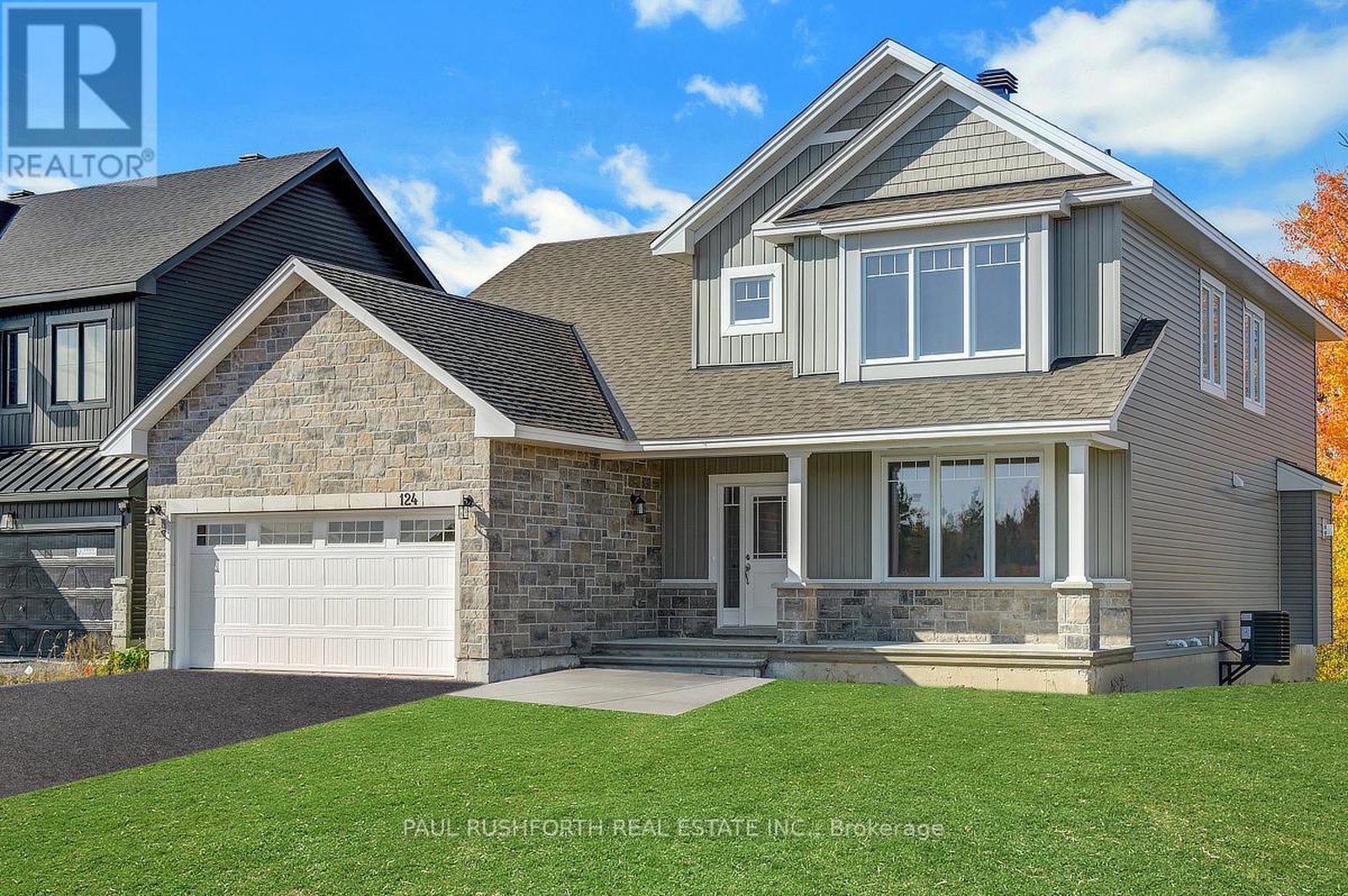 This stunning brand-new bungalow with loft features no rear neighbours and is just minutes to Kanata. With 4 bedrooms plus a loft, a dedicated office, and a formal dining room, this home flexes to fit your lifestyle perfectly. The main floor primary bedroom is a true retreat! Think spa-worthy 4-piece ensuite and a spacious walk-in closet. The soaring great room features a cozy gas fireplace and flows seamlessly into a chef's dream kitchen with waterfall quartz counters, a breakfast bar for morning coffee chats, and a large pantry for all your culinary adventures. Upstairs you'll find two generous bedrooms, a full bath, and a versatile loft space that's yours to imagine. Loaded with value including a double car garage, over sized pie lot, hardwood floors throughout, high quality finishes, all in a brand new subdivision that will be complete with a sports court and park. Be the first to live in this modern home in a quiet private location. Some photos have been virtually staged and enhanced.