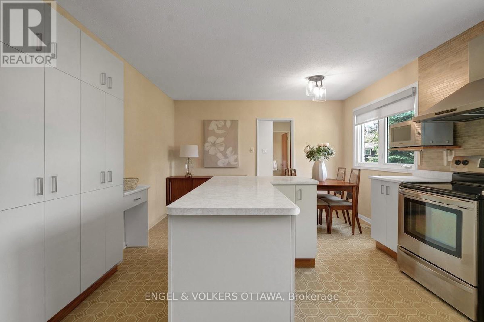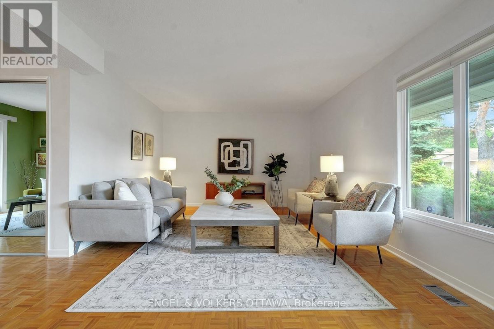 Welcome to this spacious 4-bed, 3-bath home located in the sought-after neighbourhood of Qualicum. Beautifully maintained by its long time owner, this home is your chance to reside on one of the community's most desirable streets. A true mid-century gem, the TS-1 floorplan by Teron, offers a functional layout - perfect for a growing family or professional couple. The main floor features a dedicated home office, as well as a formal living and dining room centred around a classic brick fireplace. Tall windows line the front of the home, overlooking the covered porch, while hardwood flooring flows seamlessly through the living spaces, including a separate den which leads to the backyard. The kitchen has been updated, offering ample counter and storage space along with an island and large eat-in area. Off the kitchen you'll find a mudroom with a 2pc powder room, closet space, and access to the garage. Upstairs, you'll find a spacious primary suite that includes an ensuite bath and large closets, while three other generously sized bedrooms and the main bathroom give plenty of space for your needs. The finished basement provides excellent additional living space and offers great potential to expand upon the current rec room. Perfect for a kids play space, home gym, and/or games room. The backyard has been extensively landscaped with beautiful perennial gardens and lush greenery giving a true sense of privacy. With updated infrastructure, this home offers an excellent opportunity for a family to put their own touches on this already stunning property. Ideally situated with easy access to Highway 417, Queensway Carleton Hospital, and surrounded by parks and greenspace, this home offers the perfect balance of convenience and tranquility. Take in community events at Nanaimo Park throughout the year, as well as the outdoor rink through the winter. Perfect for families looking to settle into this outstanding community!