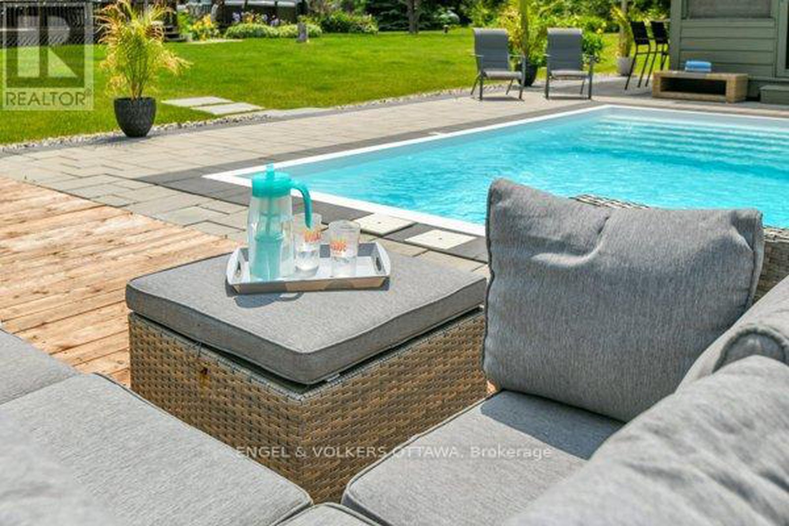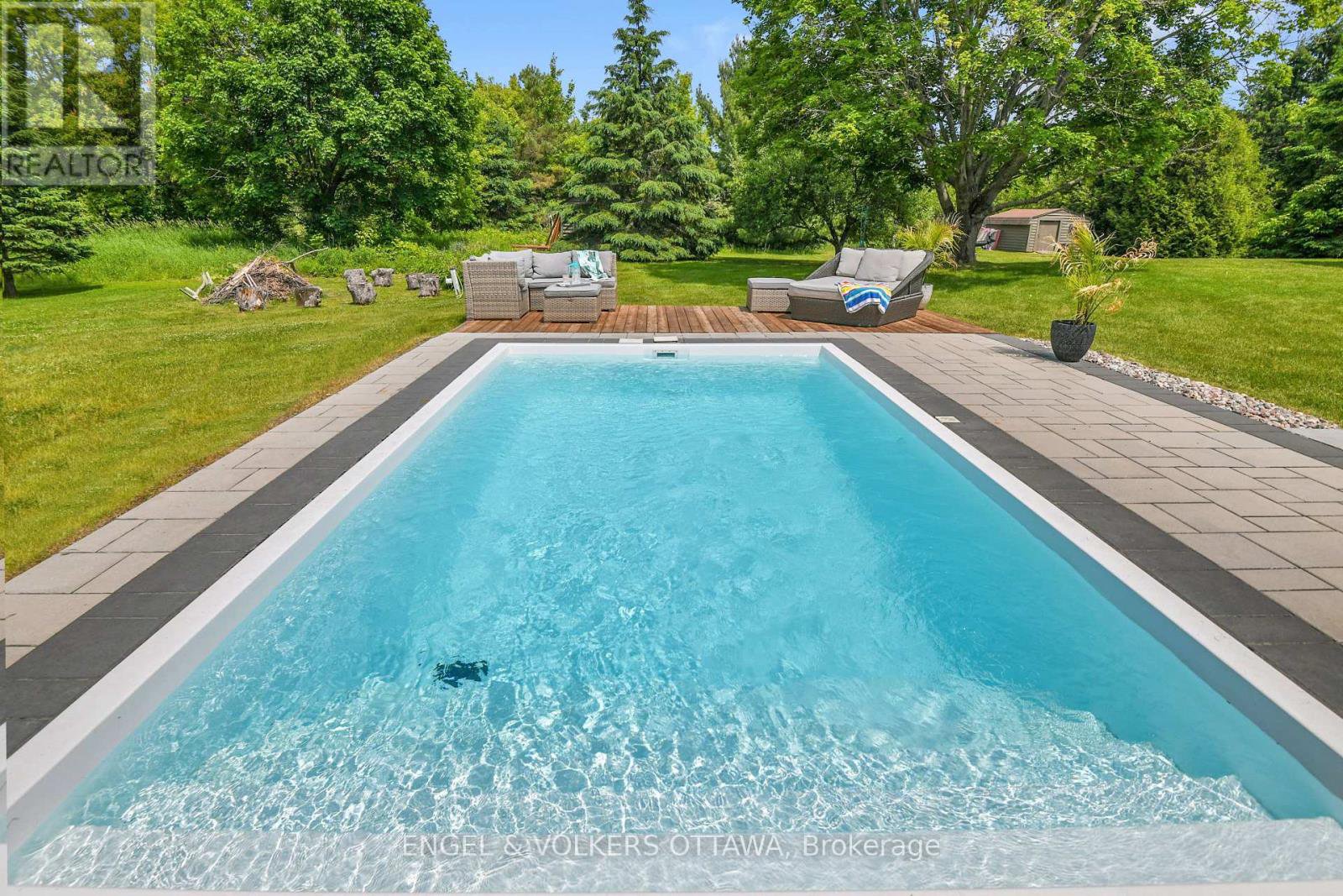 A handsome all brick bungalow on a prime lot with brilliant sun exposure and almost 500 feet of frontage awaits. Less than 10 minutes away from the charming community of Almonte which is steeped in history and interesting locale fare, restaurants , golf and a local hospital. The vaulted beamed main family room is anchored with a high end gas fireplace and overlooks the gardens and pool area beyond. The living room/den served as a 4th bedroom or home office in the past and is flooded with sunlight throughout the day. Gleaming hardwood floors throughout the interior create a sense of warmth and the scale of every room is generous and unique for the time the home was built. Bay windows in the breakfast area over looking the pool and patio doors onto a private deck off the Primary Suite are thoughtful luxuries in the original design. A main level laundry off the kitchen is well positioned. Baths have been updated. The lower level boasts an expansive home base for watching sports or movies and warmed by a handsome high end gas fireplace. A built in bar, games area and additional space for a bedroom or office is well laid out and the unfinished space offers storage and workshop potential. The home is equipped with a newer well, pressure tank, - all updated in 2021. Septic was pumped June 2025; inspection in spring 2025 indicates several more years of life with proper maintenance. Roof and mechanicals updated in 2018, interlock landscaping in 2017, granite counters and backsplash in 2020, ensuite and hardwood floors in 2019. Interior repainted in 2025. Upgraded main bath in Spring 2025, and new Windows mid Nov 2025.