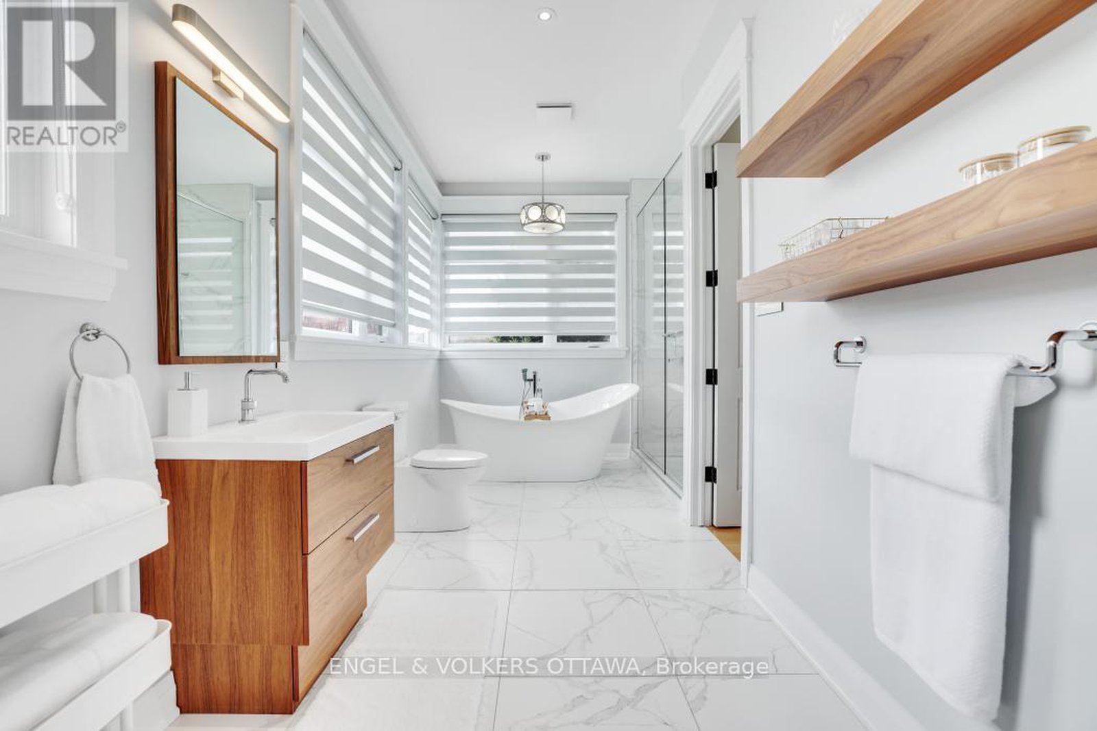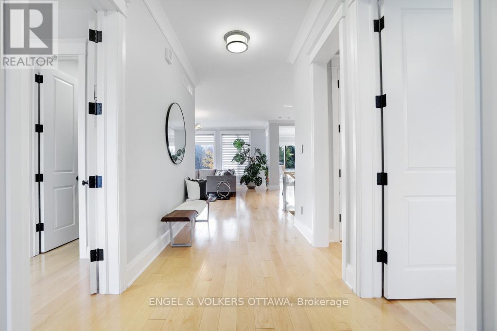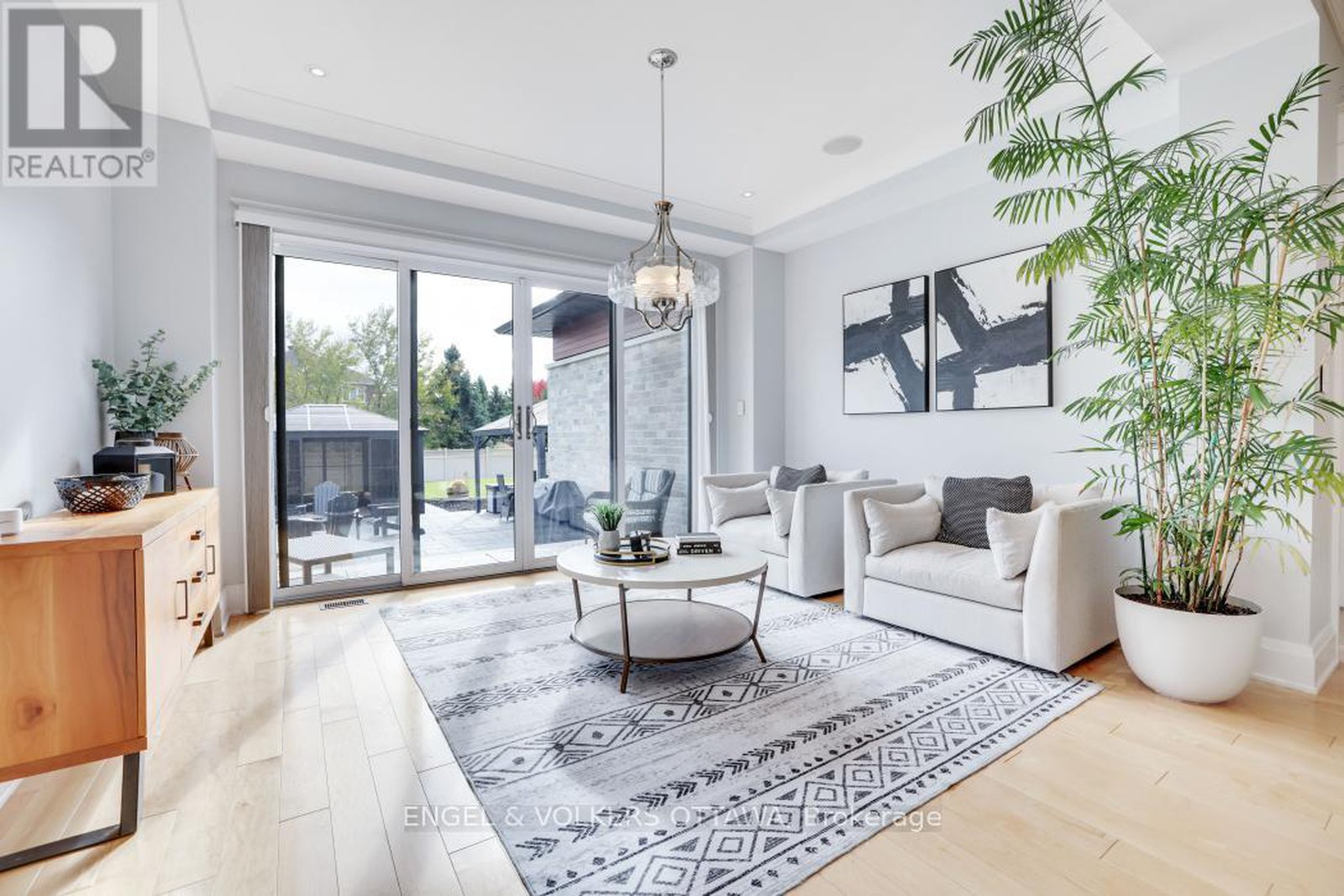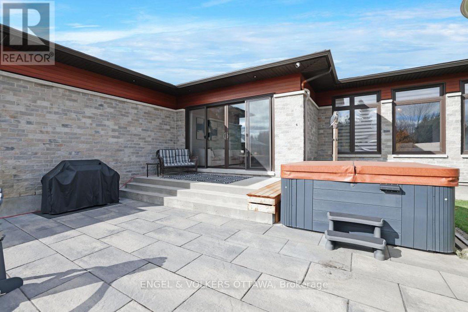 Live your Luxury in Manotick! Crafted by Woodstruct Construction in 2018, this custom bungalow harmonizes quality design, refined finishes and a perfected layout for daily living and sophisticated entertaining. Expect to be wowed by the exquisite detail and workmanship - 10 ft ceilings, natural maple & walnut accents, stunning hardwood flooring and the expansive south-facing windows where the sunlight pours in throughout the day. A showpiece kitchen with quartz counters, a statement island, walk-in pantry, and Bosch suite (gas cooktop, oven, convection oven/microwave, dishwasher) finished with USB outlets and reverse-osmosis water. Relax in the serene primary retreat with dual walk-ins and a spa-level 5-piece ensuite. Four of the five bedrooms enjoy private ensuites; a fifth bedroom flexes as an office, den or organized storage room. Downstairs, a thoughtfully finished, apartment-style level-also accessible from the insulated two-car garage supports multi-generational living with a gym, living and dining areas, office, theatre room and a wet bar rough-in.The backyard living space offers a low-maintenance irrigated yard. Perfect for entertaining in the large gazebo, the oversized solarium, or hot tub; the fenced lot and trees allow for privacy with minimal neighbouring presence. ENERGY STAR heating/cooling/water with Wi-Fi controls, triple-pane front windows, manifold plumbing with individual shut-offs, UV water treatment with softener/iron, high-end two-bed septic, generator with automatic transfer switch, EV outlet, built-in speakers and digital alarm. Eight-foot solid-core Cambridge doors, crown/baseboard and window trim. Minutes to Manotick Village and Hwy 416 with an easy commute to downtown-perfect for the buyer who values craftsmanship, luxury, and design.
