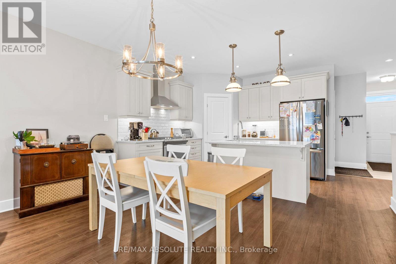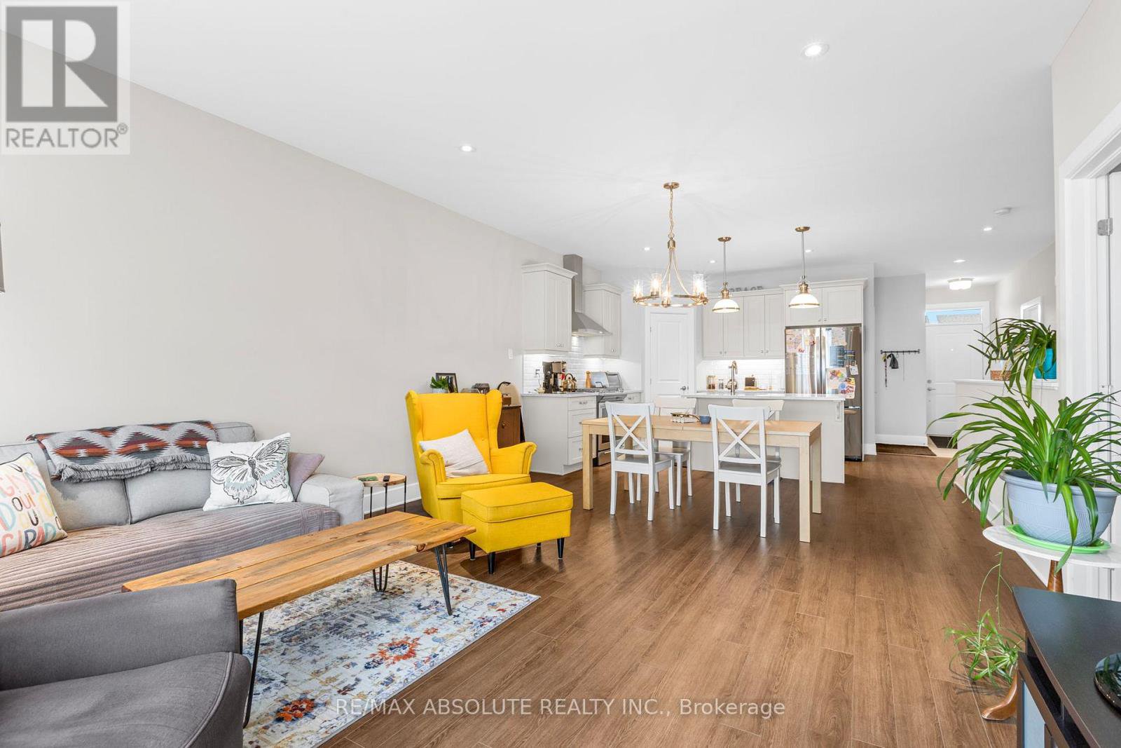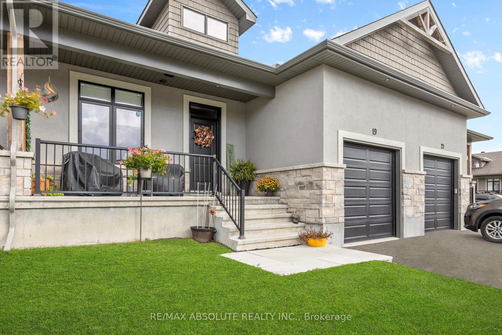 The stone & stucco front (no siding) & covered front porch provides lots of curb appeal & great afternoon sun! Spacious foyer! Beautiful wide plank flooring throughout, there is NO carpet in this home! The UPGRADED kitchen is STUNNING! The shaker style cabinets are a warm earthy tone, GORGEOUS quartz countertop, WALK IN pantry, stainless appliances including an induction stove, subway tile backsplash & 2 bays of pots & pan drawers, its a pleasure to cook in this kitchen! There is a wall of windows in the great room that allows for natural light to flood the main level! Open & airy is what you will find once inside the home! The large primary has a GREAT size WALK in closet! The TILED walk-in shower has a built in niche & glass door! Bedroom 2 can be used as an office or 2nd living room on the main floor at the front of the home. The tub & shower combo has really nice subway tile surround. Quartz & upgraded fixtures can be found in both bathrooms! A FULLY finished lower level offers a BIG rec room with a large window for lots of brightness, a 3rd bedroom PLUS lots of storage! Steps to the water & minutes to Historical Almonte! VERY quiet street! This is a beautiful community to live in!