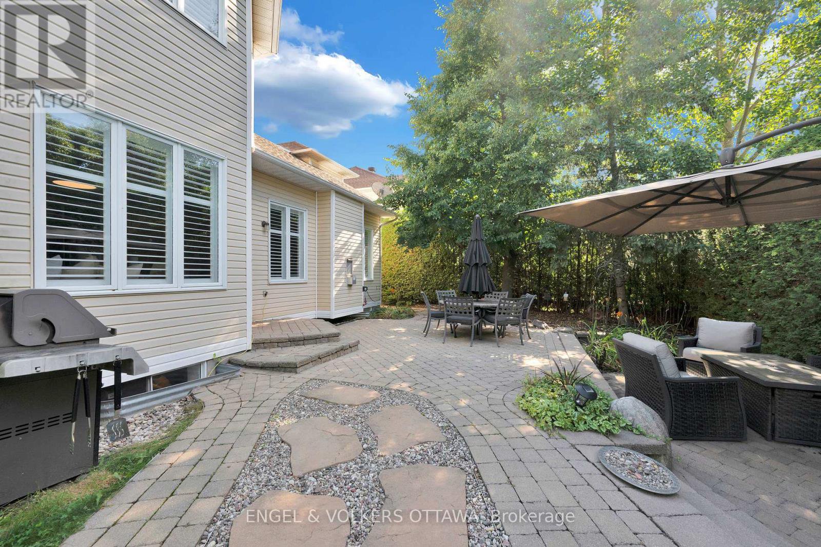 INCREDIBLE VALUE! Absolutely beautiful 4 bedroom home maintained by the same owners for 21 years. Located on a quiet, low turnover street in Kanata. Offering a resort-like backyard designed for entertaining. Perfectly positioned on a PREMIUM CORNER LOT (104ft deep) - this home features a private tree-lined, fully fenced backyard with a 36' in-ground saltwater pool surrounded by professional landscaping that includes mature gardens, interlocking, stamp concrete and a gas BBQ hookup. The main level impresses with hardwood flooring throughout, open concept living-dining and a bonus family room with a gas fireplace and 15' ceilings. Enjoy home cooking with upgraded stainless steel appliances that include a side by side fridge and freezer (2023), Samsung Induction Stove (2020), Bosch dishwasher (2020), a large island with granite countertops (2020) and a built-in banquette with pool views. The primary bedroom is located on a separate wing upstairs with a newly renovated 4-piece bathroom (2025) and a walk-in closet. The additional 3 bedrooms are a great size perfect for kids, guests and/or a home office, along with a renovated 3-piece bathroom with a double vanity sink (2024). Enjoy cozy movie nights in your finished basement with a built-in entertainment system and gas fireplace. Or, hit a workout with a separate space for a home gym! This dream home is move-in ready and waiting for its new owners. Pool Pump (2025), Pool Liner (2019), Furnace and A/C (2023), Roof (2019).