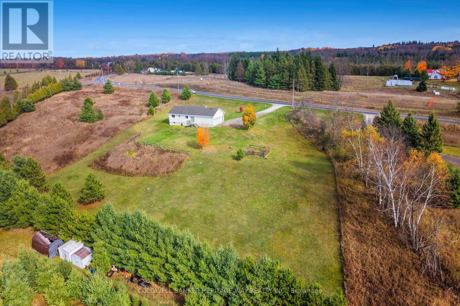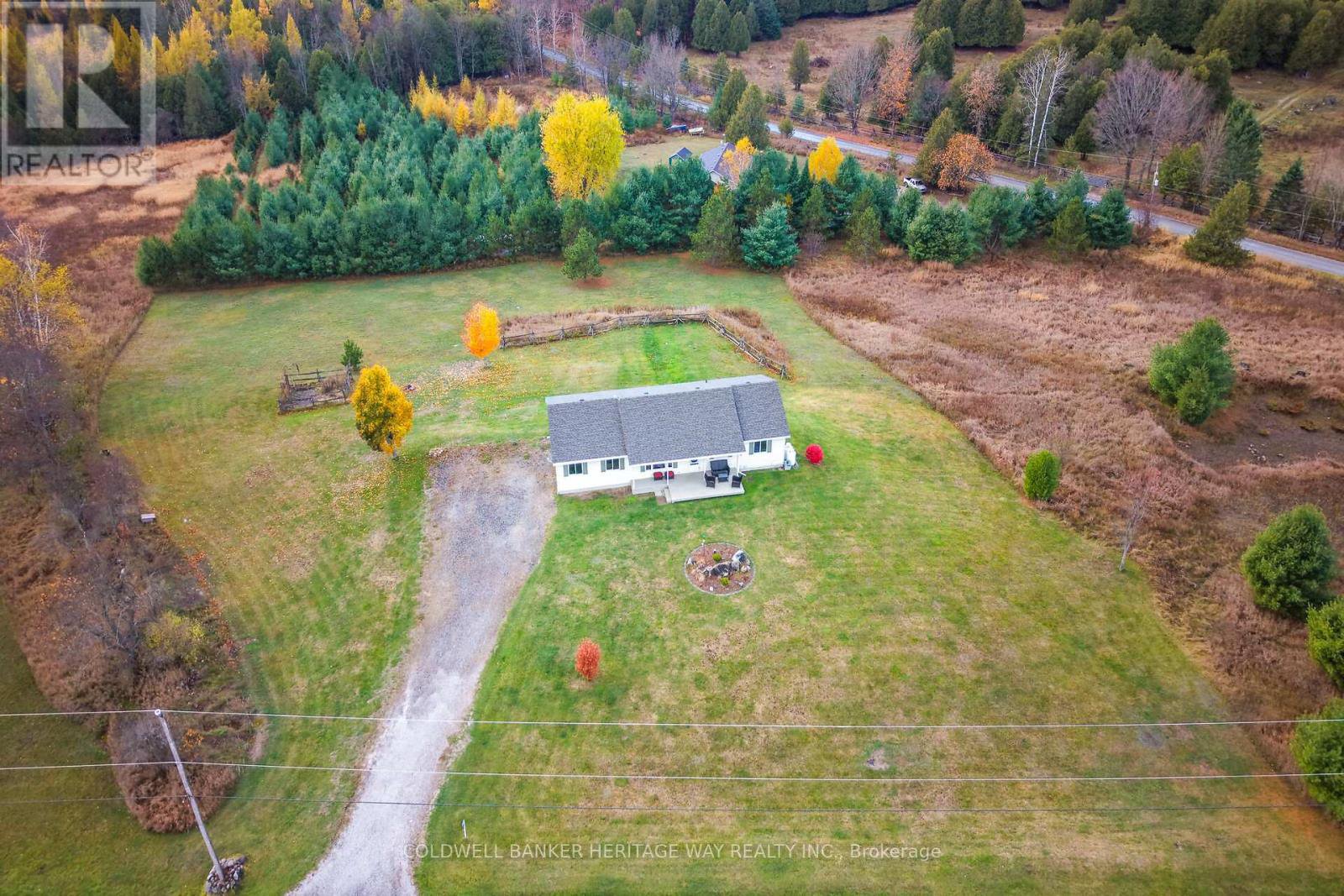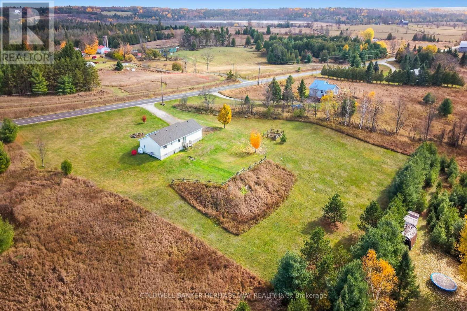 Peaceful Country Living with Scenic Lanark Highlands Views. Discover serenity on this picturesque 4-acre (approx.) corner lot surrounded by the natural beauty of the Lanark Highlands. This Guildcrest R2000 bungalow has been lovingly maintained and thoughtfully updated by its current owners. Enjoy outdoor living at its finest-relax on the front deck, unwind on the back patio, or gather around the campfire under the stars. Inside, the open-concept living, dining, and kitchen area offers a warm, inviting space for entertaining or family time. The updated kitchen features newer countertops, flooring, and backsplash, plus a large island with seating for five. The dining room patio doors open to your private backyard oasis. This home includes spacious bedrooms, with a primary suite featuring a 4-piece ensuite. The finished basement offers a large, post-free L-shaped rec room, an office that has been used as a fourth bedroom, and rough-in plumbing for a future bathroom. Additional highlights include a double attached garage with basement access-perfect for a potential in-law suite or rental opportunity. Located just 20 minutes to Almonte or Carleton Place, 30 minutes to Perth, and 45 minutes to Kanata. Enjoy nearby golf courses, sugar bushes, lakes (Clayton & Taylor), pumpkin patches, and an abundance of walking, hiking, ATV, and snowmobile trails.