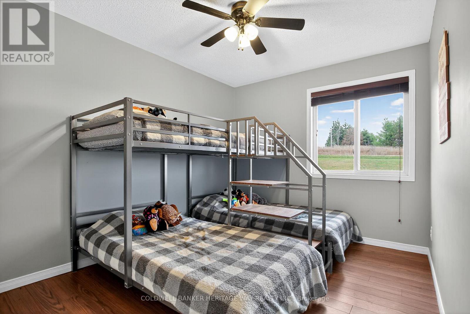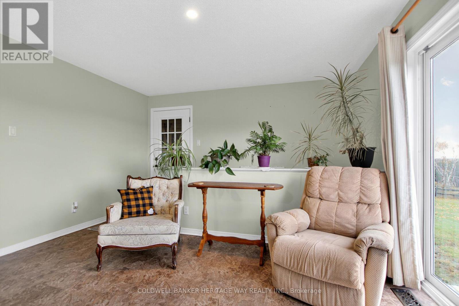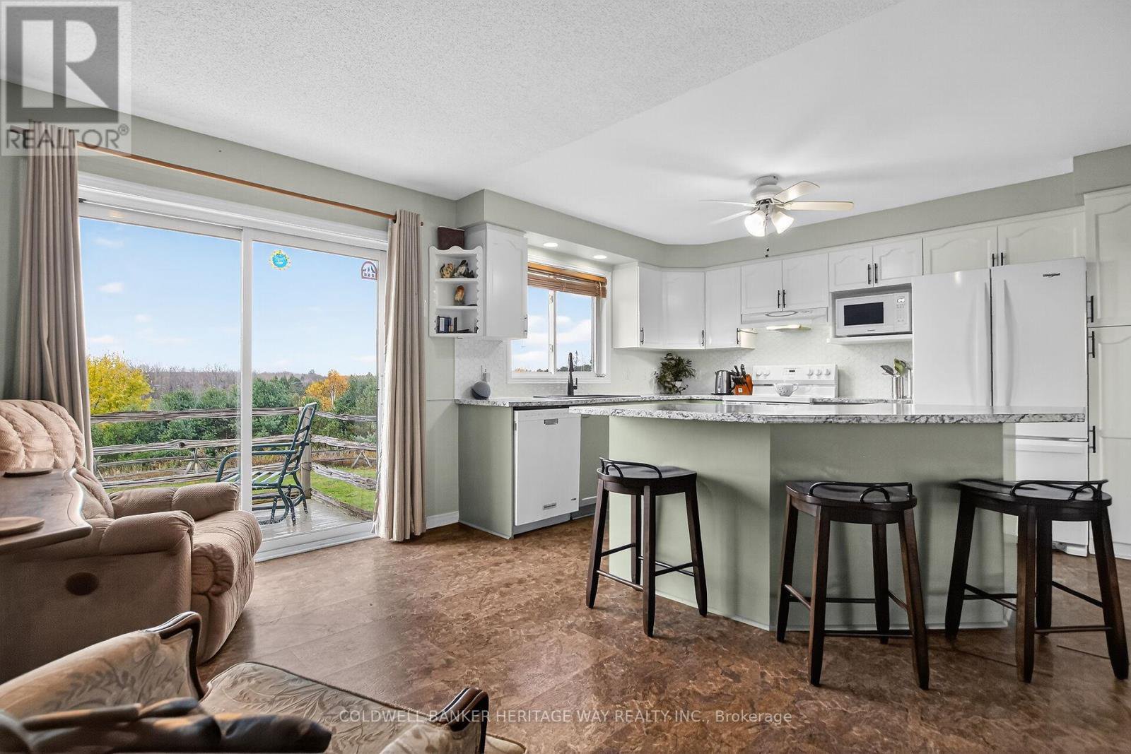 Peaceful Country Living with Scenic Lanark Highlands Views. Discover serenity on this picturesque 4-acre (approx.) corner lot surrounded by the natural beauty of the Lanark Highlands. This Guildcrest R2000 bungalow has been lovingly maintained and thoughtfully updated by its current owners. Enjoy outdoor living at its finest-relax on the front deck, unwind on the back patio, or gather around the campfire under the stars. Inside, the open-concept living, dining, and kitchen area offers a warm, inviting space for entertaining or family time. The updated kitchen features newer countertops, flooring, and backsplash, plus a large island with seating for five. The dining room patio doors open to your private backyard oasis. This home includes spacious bedrooms, with a primary suite featuring a 4-piece ensuite. The finished basement offers a large, post-free L-shaped rec room, an office that has been used as a fourth bedroom, and rough-in plumbing for a future bathroom. Additional highlights include a double attached garage with basement access-perfect for a potential in-law suite or rental opportunity. Located just 20 minutes to Almonte or Carleton Place, 30 minutes to Perth, and 45 minutes to Kanata. Enjoy nearby golf courses, sugar bushes, lakes (Clayton & Taylor), pumpkin patches, and an abundance of walking, hiking, ATV, and snowmobile trails.