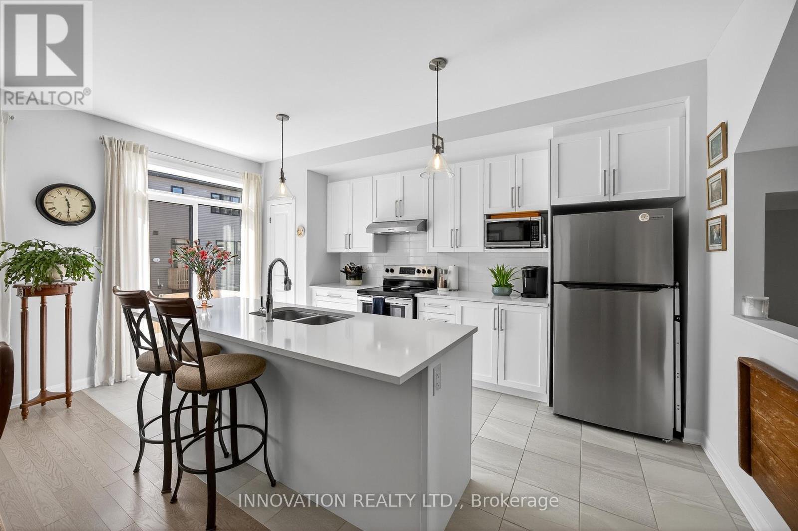 Welcome to 505 Moyard Drive in the highly desirable community of Half Moon Bay, Barrhaven. This beautifully maintained 2-storey townhouse offers a perfect blend of modern comfort, stylish finishes, and functional living spaces. The open-concept main floor is designed for both everyday living and entertaining, featuring rich hardwood flooring, designer neutral tones, and abundant natural light. The bright, white kitchen is the heart of the home, complete with a large island, quartz countertops, and ample cabinetry, seamlessly connecting to the dining and living areas. Upstairs, discover three spacious bedrooms, including a serene primary retreat with an ensuite bath and generous closet space. The finished basement expands your living options with a versatile recreation room, highlighted by a cozy gas fireplace - perfect for family movie nights, a play area, or a home office. Practical features include two full bathrooms, two convenient powder rooms, and an extra-deep garage providing excellent storage. With a modern layout and timeless design throughout, this impeccable home is move-in ready. Set in a family-friendly neighbourhood, you'll appreciate the close proximity to top-rated schools, scenic parks and trails, shopping, and transit - offering the ideal balance of comfort and convenience. 24 hour irrevocable on all offers