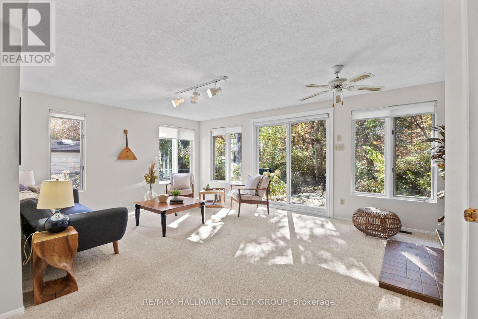 Discover this exceptional home nestled on a quiet crescent in sought after Beacon Hill North, offering the perfect blend of privacy, space and convenience. Set against a beautiful forested hillside, this residence provides a peaceful retreat while being just steps from top-rated schools (ie Colonel By Secondary School), parks and shopping. Inside you'll find sunfilled rooms both front and back, creating a warm and inviting atmosphere throughout. The principal rooms feature stunning hardwood floors adding elegance and charm. The spacious living room opens to a balcony, ideal for morning coffee or evening relaxation with serene treetop views. Every level of this thoughtfully designed home includes a washroom for added convenience. What makes this home extra special is the 3 storey addition (+ 750 sq ft liveable space) which contributes to the spaciousness of the primary suite with stunning forest views, adjoining sitting room and full 4 pc ensuite; a large family room with patio doors opening to your private garden, and a ground floor recreation/fitness room. Whether you're entertaining guests, enjoying family time, or simply soaking in the tranquility of your surroundings , this home delivers the perfect lifestyle balance - nature, light and location all in one rare offering.