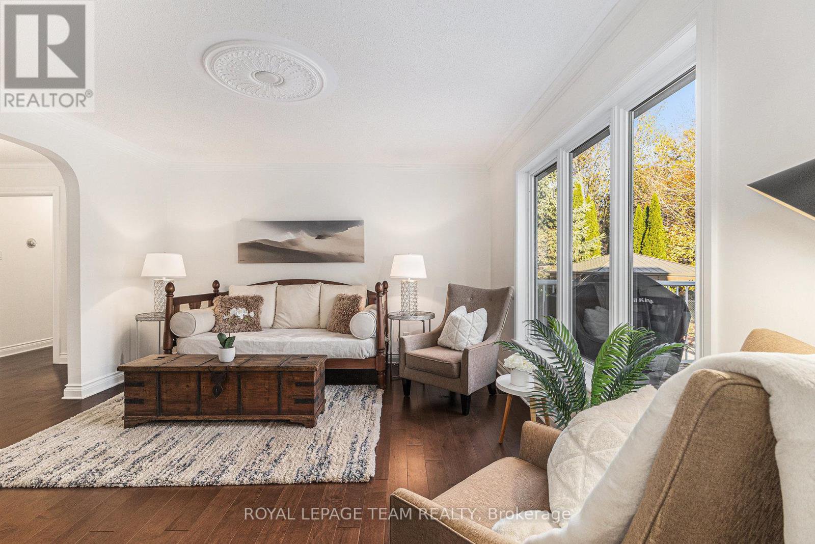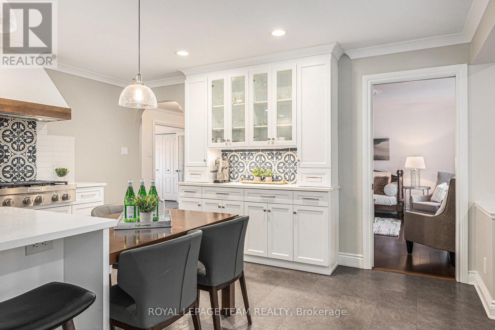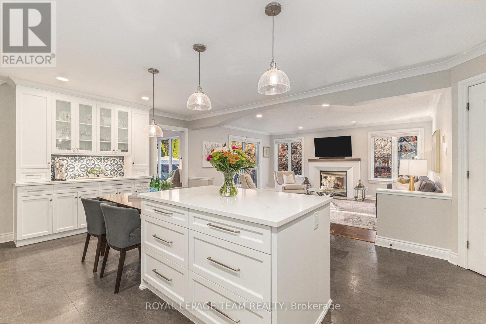 OPEN HOUSE SUNDAY NOV 2, 2 - 4 PM. Welcome to 23 Cypress Gardens - a spacious and tastefully updated bungalow in the heart of Stittsville, offering around 4,400 sqft of living space across two levels. Set on one of the community's most sought-after streets, where the lots are deep, the days are peaceful, and the Trans Canada Trail is just steps away, and close to all the coffee shops, parks, schools, and amenities that make Stittsville such a welcoming place to live. Inside, a bright foyer opens to an inviting main floor, where on the left you'll find three generously sized bedrooms tucked away in their own private wing, including a primary suite with walk-in closet and ensuite bath featuring a walk-in shower. To the right of the grand foyer, a large dining room and sitting room lead to the heart of the home - a stunning open-concept family room and custom kitchen area with extended island, built-in double oven, and premium appliances. From here, you'll find a spacious mudroom connecting to the oversized two-car garage and the lower level. The fully finished basement with 8"5' ceilings is spacious and very bright, including a large bedroom, a den, two storage rooms, and an expansive family room with wet bar and electric fireplace - the large sectional sofa here is included in the sale! There is a backdoor entrance that offers excellent potential for a nanny or in-law suite. Step outside to your private backyard retreat - 170 ft deep at its longest point - featuring a deck, two newer patios and pergola, and a perennial garden. The whole front and backyard are watered through a built-in irrigation system. Come see this beautiful home for yourself & fall in love!