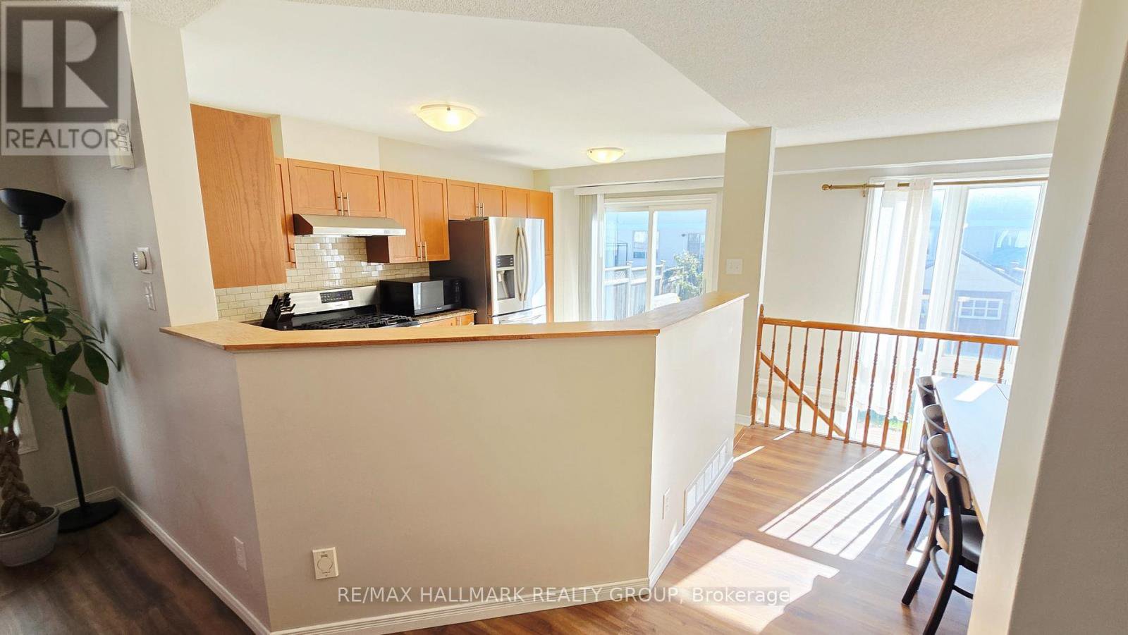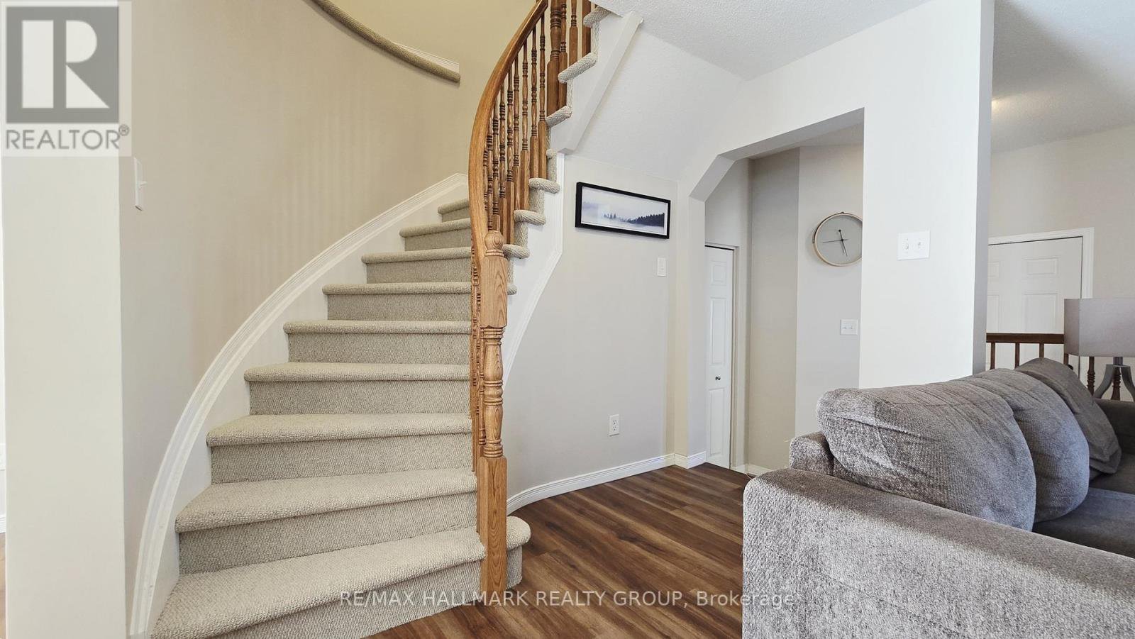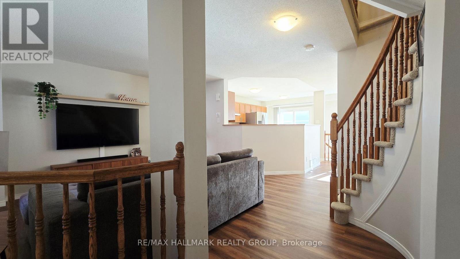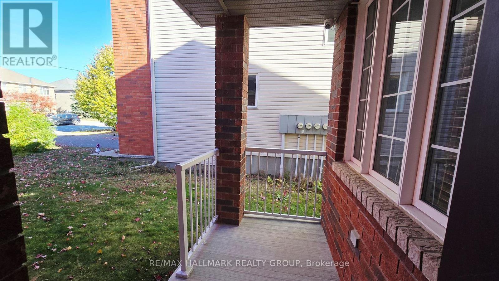 END-UNIT in MOVE-IN CONDITION! Experience the vibrant energy of Kanata's High Tech neighbourhood in this incredible 3-Bedroom, 2 Bath End-Unit Townhome. Enjoy easy access to amenities, including parks, trails, schools, shopping, recreational facilities, a golf course and public transit. This home is set and ready for you to move in, so step inside to a sun-filled open-concept main floor featuring cheery living and dining areas, and a well-appointed kitchen with abundant cabinetry, generous counter space and stainless steel appliances-including a natural gas range. South-facing windows flood this home with natural light, creating a warm and happy atmosphere. Upstairs, the large Primary Bedroom impresses with a double-door entry, while two additional bedrooms offer flexibility for family, guests, or a home office. The main bathroom is a welcomed retreat with its large soaker tub and comes with a separate shower. The lower-level family room is bright and cozy, thanks to a large window above the staircase. Lots of storage space in the unfinished section. Note: Brand new carpeting installed on staircases. Updated laminate flooring in principal rooms for easy care & durability. Outside, enjoy the southern exposed, fenced yard with patio & storage shed, is the perfect place for pets and children to play safely. A covered front porch adds to the front curb appeal. Parking for 2 cars in the laneway. You'll love the location of this home! Whether you're a tech enthusiast or simply seeking a thriving community for you and your family, don't miss your chance to own in one of Kanata's most connected and family-friendly communities!