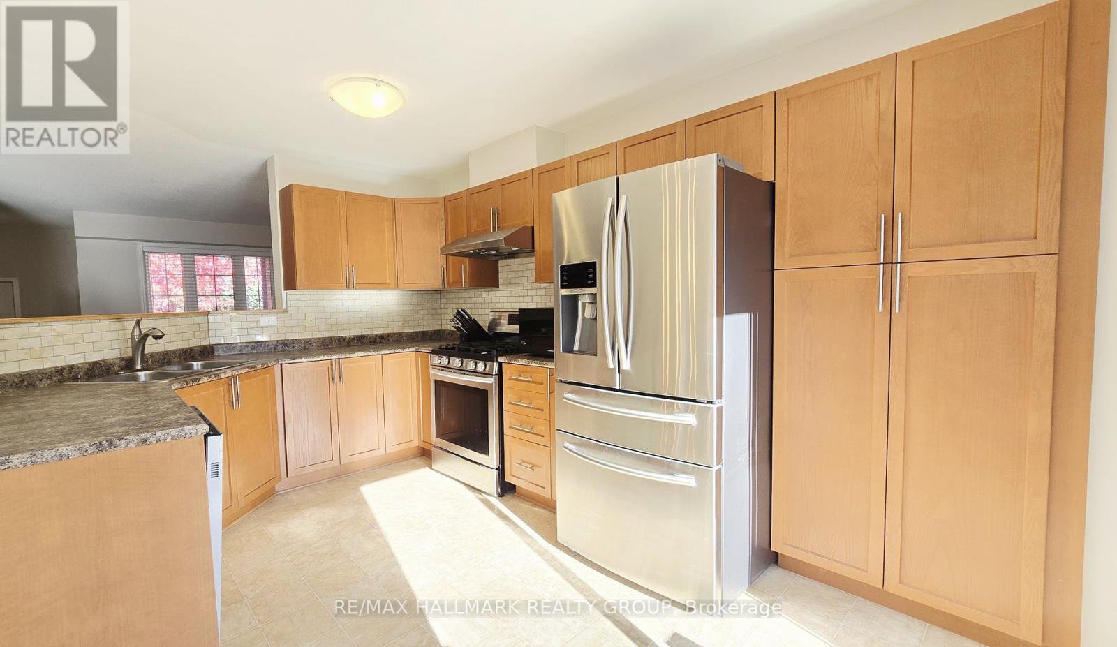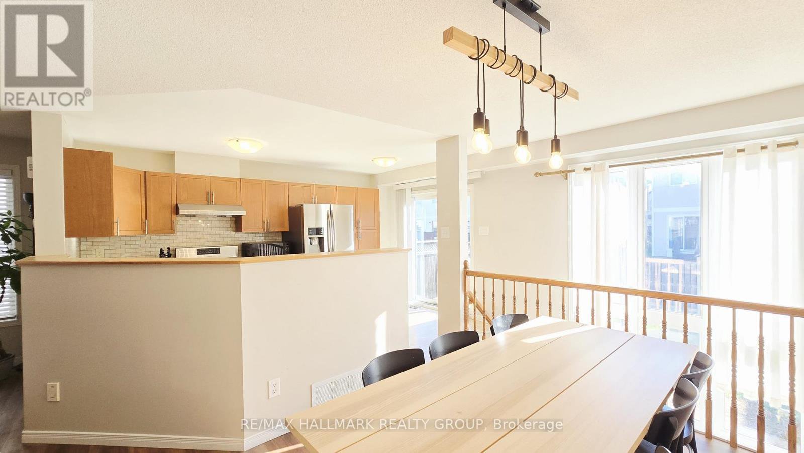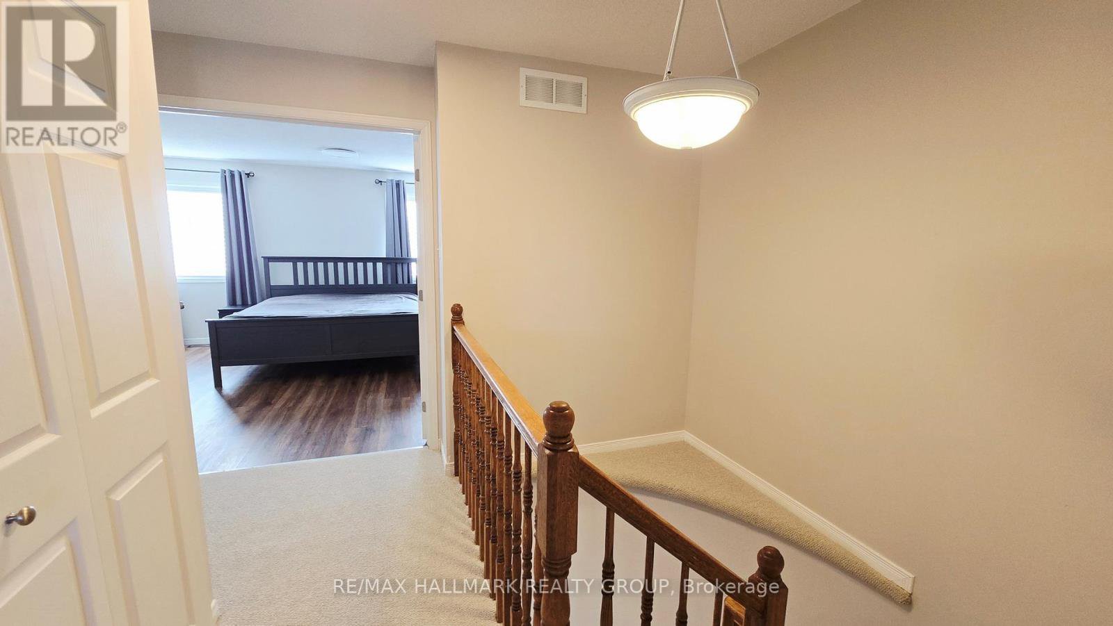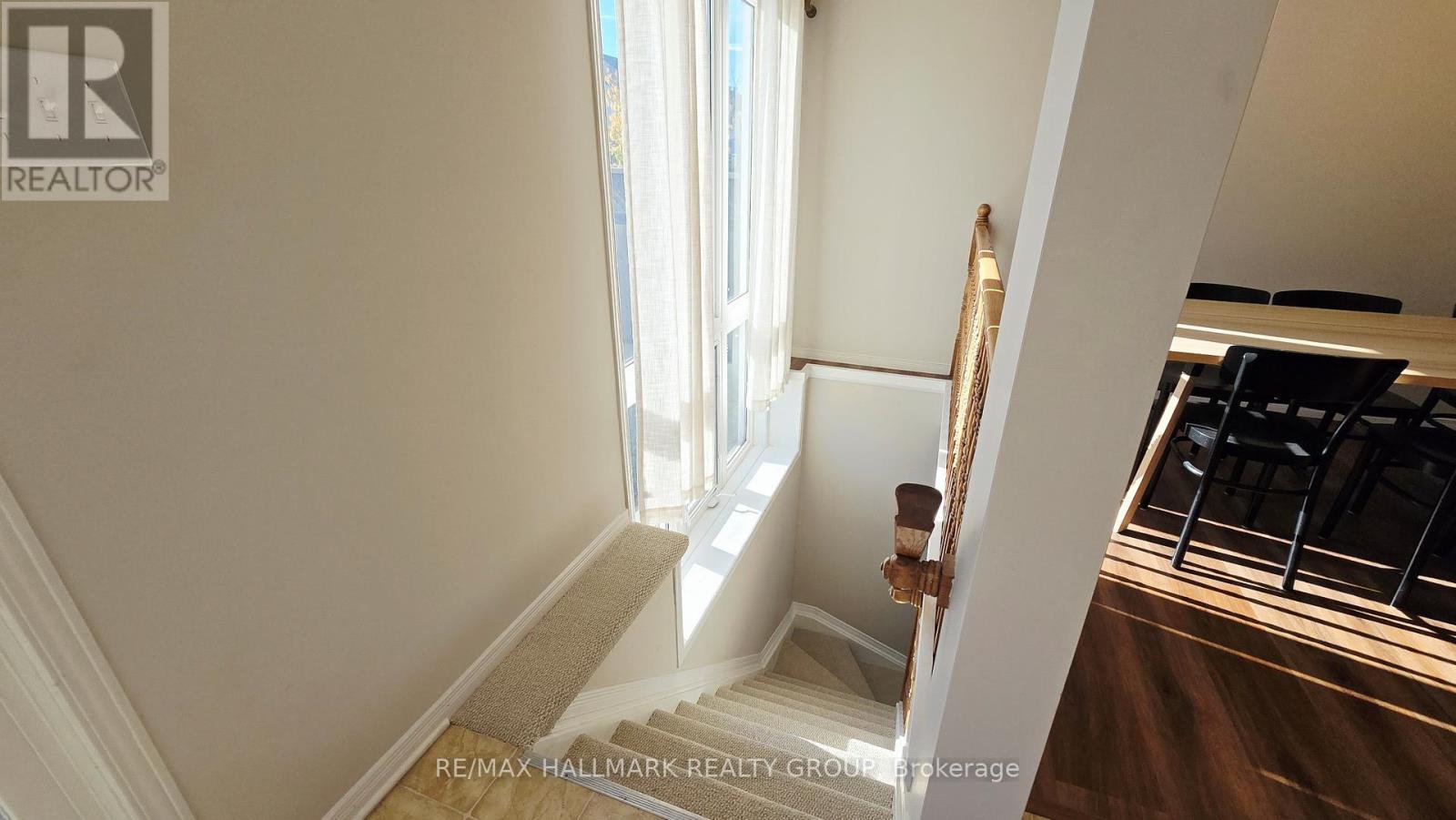 END-UNIT in MOVE-IN CONDITION! Experience the vibrant energy of Kanata's High Tech neighbourhood in this incredible 3-Bedroom, 2 Bath End-Unit Townhome. Enjoy easy access to amenities, including parks, trails, schools, shopping, recreational facilities, a golf course and public transit. This home is set and ready for you to move in, so step inside to a sun-filled open-concept main floor featuring cheery living and dining areas, and a well-appointed kitchen with abundant cabinetry, generous counter space and stainless steel appliances-including a natural gas range. South-facing windows flood this home with natural light, creating a warm and happy atmosphere. Upstairs, the large Primary Bedroom impresses with a double-door entry, while two additional bedrooms offer flexibility for family, guests, or a home office. The main bathroom is a welcomed retreat with its large soaker tub and comes with a separate shower. The lower-level family room is bright and cozy, thanks to a large window above the staircase. Lots of storage space in the unfinished section. Note: Brand new carpeting installed on staircases. Updated laminate flooring in principal rooms for easy care & durability. Outside, enjoy the southern exposed, fenced yard with patio & storage shed, is the perfect place for pets and children to play safely. A covered front porch adds to the front curb appeal. Parking for 2 cars in the laneway. You'll love the location of this home! Whether you're a tech enthusiast or simply seeking a thriving community for you and your family, don't miss your chance to own in one of Kanata's most connected and family-friendly communities!