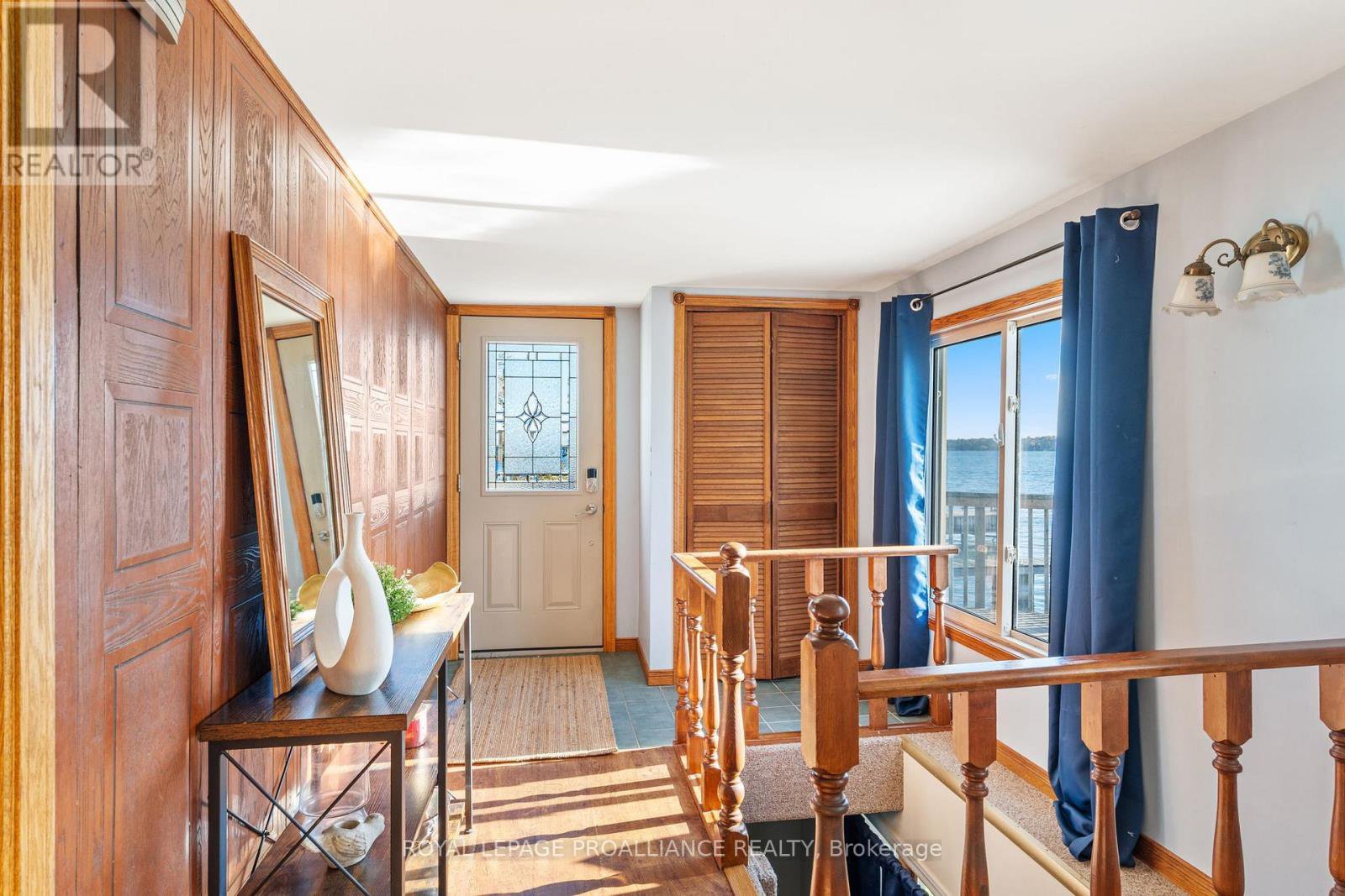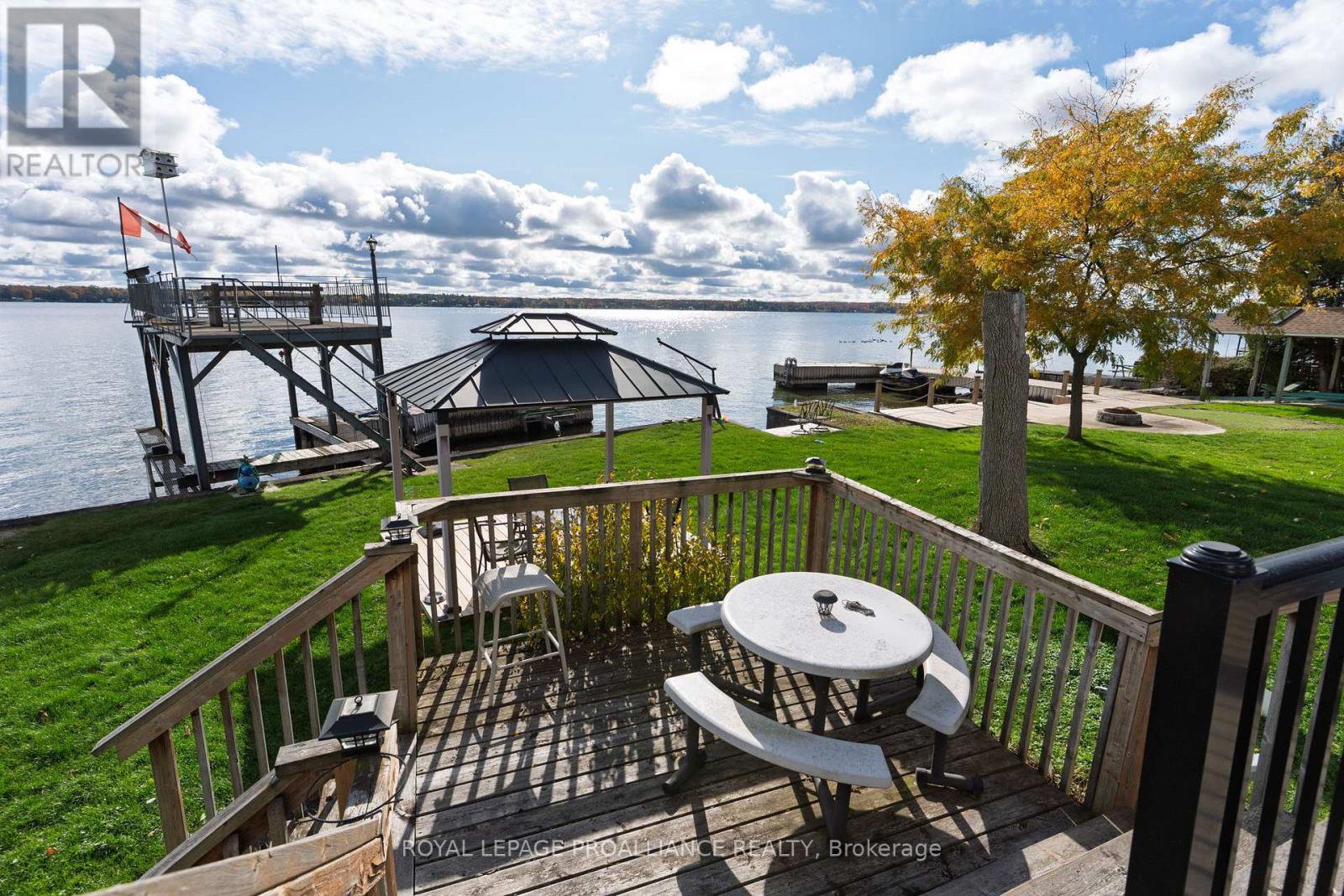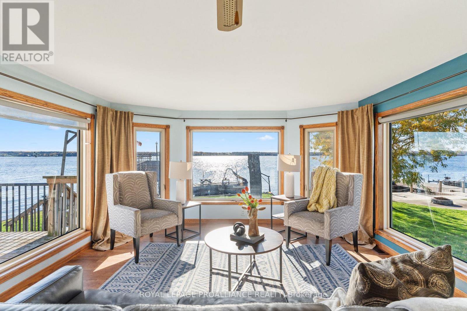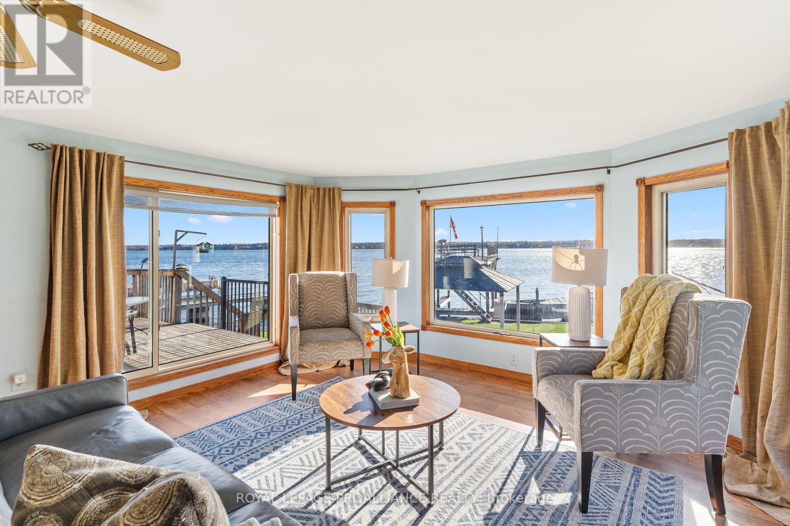 Nestled along the scenic St. Lawrence River, this inviting home offers an exceptional opportunity to enjoy waterfront living at an affordable price. The property features a private dock, gazebo, and multi-level deck overlooking level,  grounds that lead gently to the water's edge-perfect for relaxing, entertaining, or simply soaking in the ever-changing river views. Inside, the kitchen and dining area open to a spacious living room where windows showcase gorgeous views of the river, while an office area, bedroom, full bath and laundry complete the main level. Upstairs you'll find three additional rooms-ideal for guests, hobbies, or children's bedrooms. The walk-out lower level provides plenty of flexible space with a recreation area, workshop or potential extra bedroom and 2-piece bath. The property also includes a double garage plus an insulated workshop (which could be converted to a 3rd garage), and a large paved drive with a double-wide turnaround. This well-loved family home has been enjoyed for years on the river and is ready to be refreshed and personalized-offering endless potential in one of the most sought-after waterfront settings. Forced-air gas heat (new furnace 2021), central air, interlock walkway, laminate flooring, and optional outdoor chair lift complete this exceptional package. No conveyance of offers prior to 11 am November 12, 2025