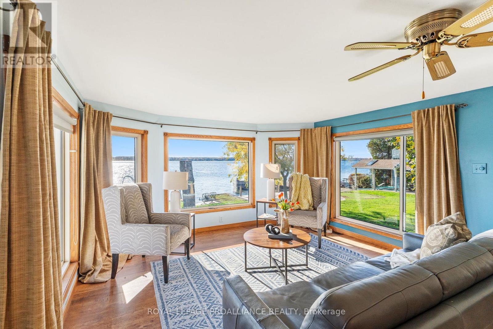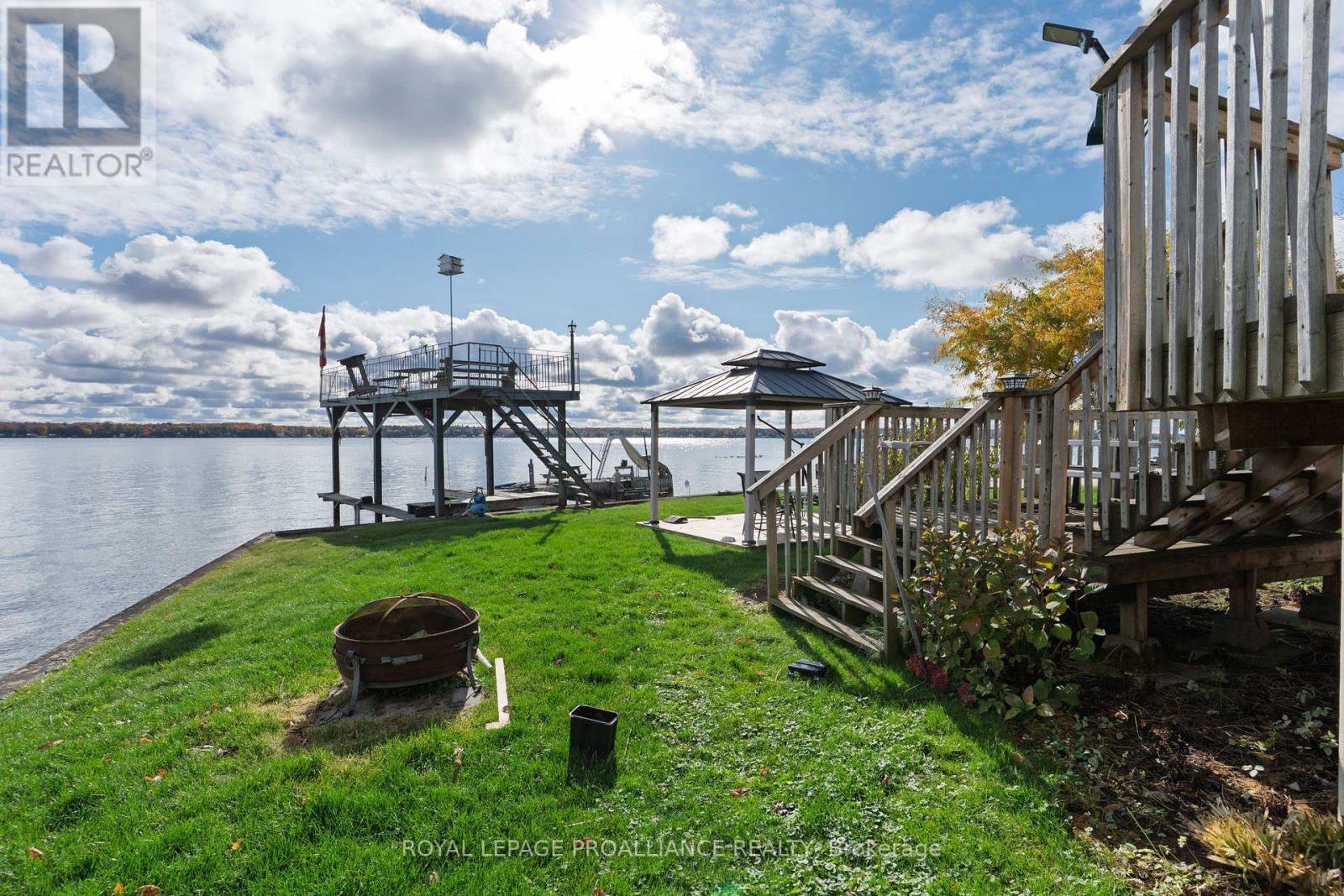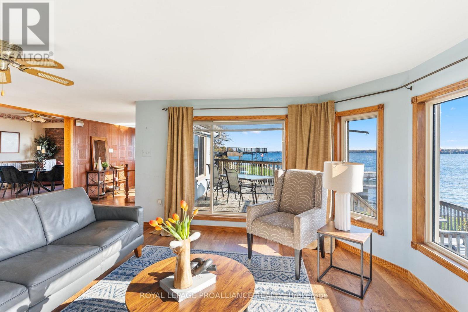 Nestled along the scenic St. Lawrence River, this inviting home offers an exceptional opportunity to enjoy waterfront living at an affordable price. The property features a private dock, gazebo, and multi-level deck overlooking level,  grounds that lead gently to the water's edge-perfect for relaxing, entertaining, or simply soaking in the ever-changing river views. Inside, the kitchen and dining area open to a spacious living room where windows showcase gorgeous views of the river, while an office area, bedroom, full bath and laundry complete the main level. Upstairs you'll find three additional rooms-ideal for guests, hobbies, or children's bedrooms. The walk-out lower level provides plenty of flexible space with a recreation area, workshop or potential extra bedroom and 2-piece bath. The property also includes a double garage plus an insulated workshop (which could be converted to a 3rd garage), and a large paved drive with a double-wide turnaround. This well-loved family home has been enjoyed for years on the river and is ready to be refreshed and personalized-offering endless potential in one of the most sought-after waterfront settings. Forced-air gas heat (new furnace 2021), central air, interlock walkway, laminate flooring, and optional outdoor chair lift complete this exceptional package. No conveyance of offers prior to 11 am November 12, 2025