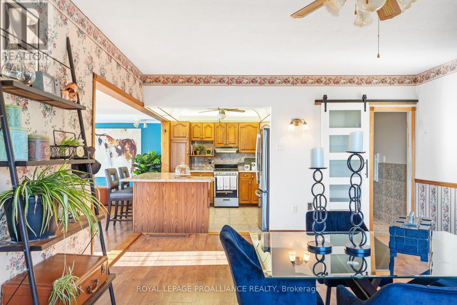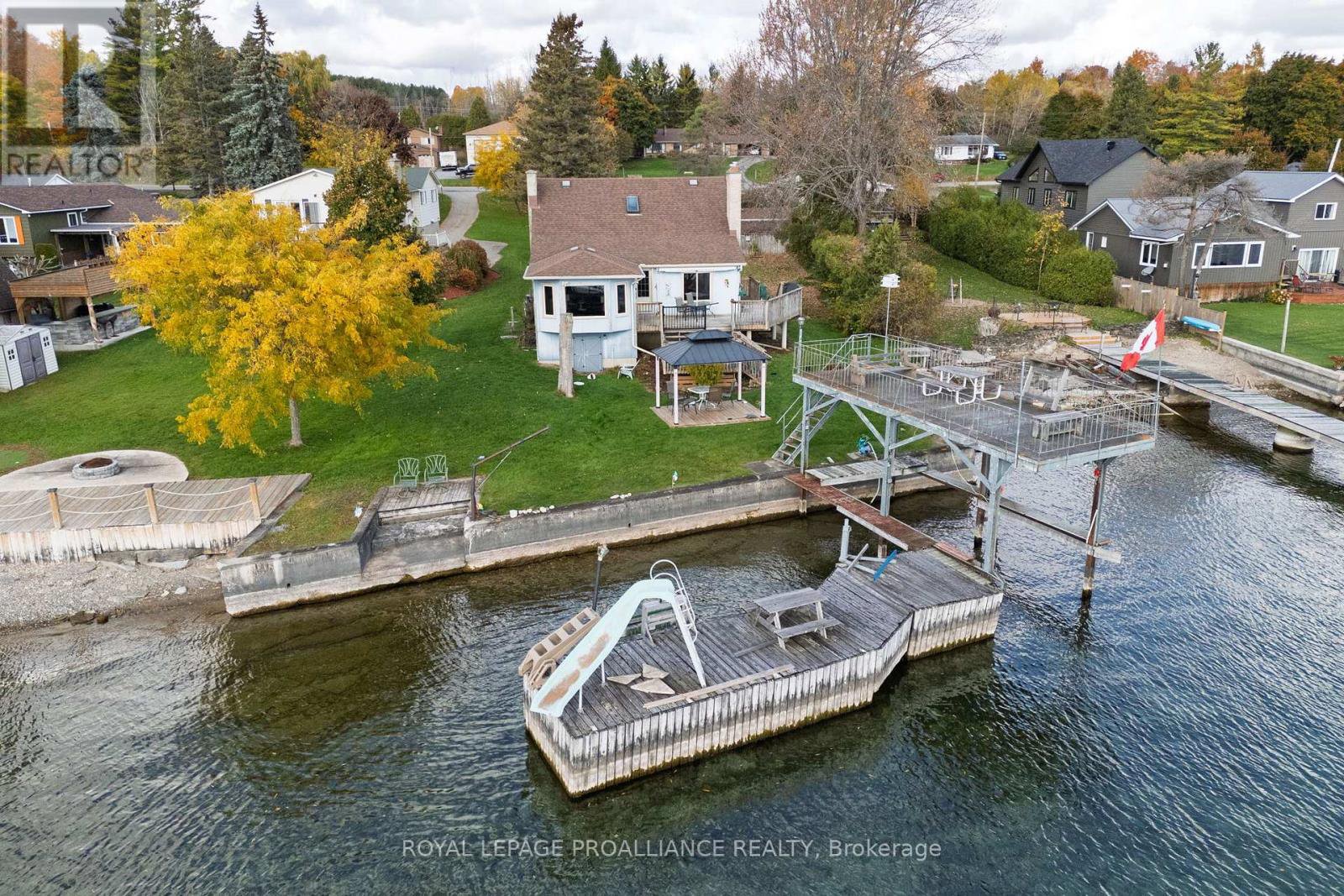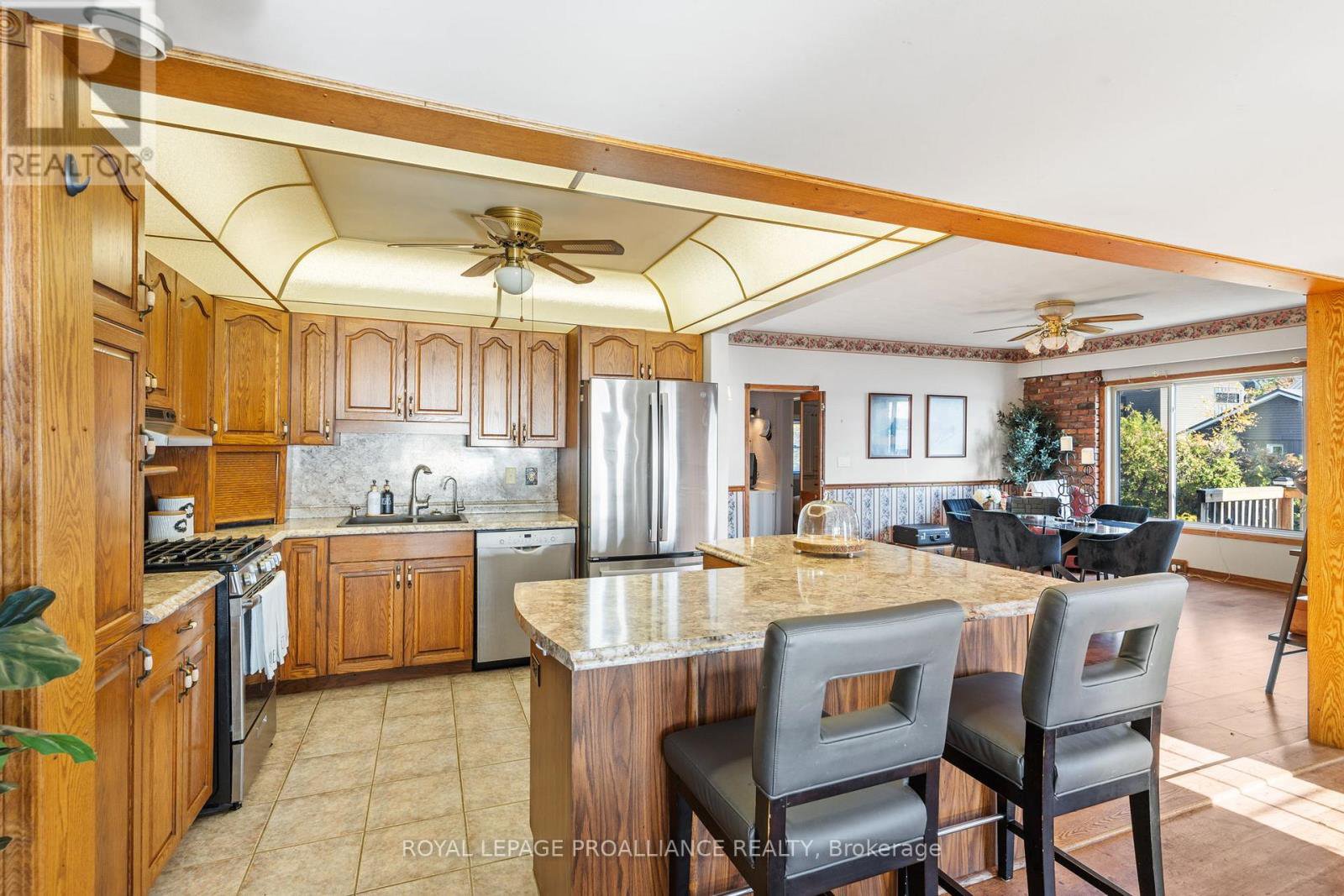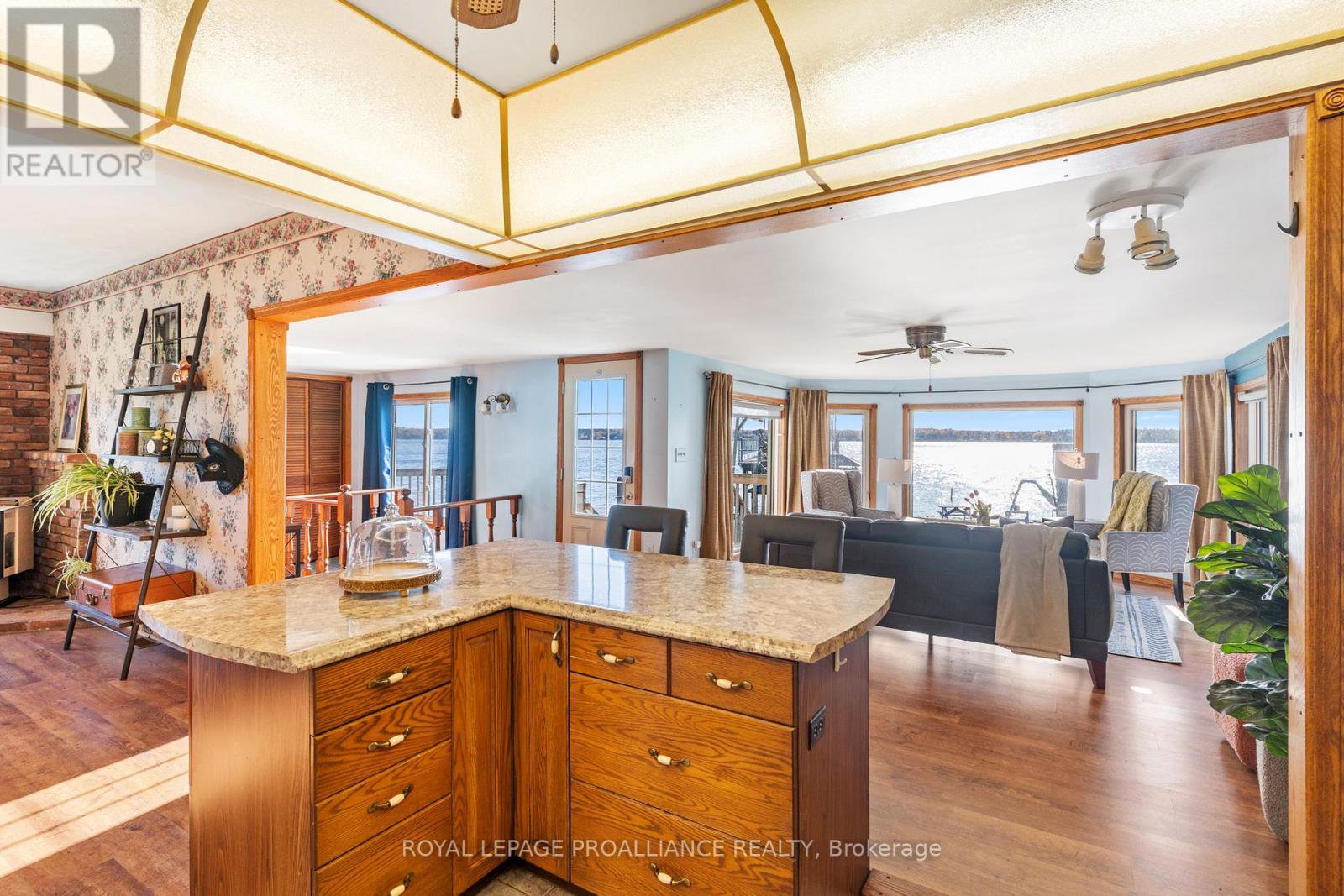Nestled along the scenic St. Lawrence River, this inviting home offers an exceptional opportunity to enjoy waterfront living at an affordable price. The property features a private dock, gazebo, and multi-level deck overlooking level,  grounds that lead gently to the water's edge-perfect for relaxing, entertaining, or simply soaking in the ever-changing river views. Inside, the kitchen and dining area open to a spacious living room where windows showcase gorgeous views of the river, while an office area, bedroom, full bath and laundry complete the main level. Upstairs you'll find three additional rooms-ideal for guests, hobbies, or children's bedrooms. The walk-out lower level provides plenty of flexible space with a recreation area, workshop or potential extra bedroom and 2-piece bath. The property also includes a double garage plus an insulated workshop (which could be converted to a 3rd garage), and a large paved drive with a double-wide turnaround. This well-loved family home has been enjoyed for years on the river and is ready to be refreshed and personalized-offering endless potential in one of the most sought-after waterfront settings. Forced-air gas heat (new furnace 2021), central air, interlock walkway, laminate flooring, and optional outdoor chair lift complete this exceptional package. No conveyance of offers prior to 11 am November 12, 2025
