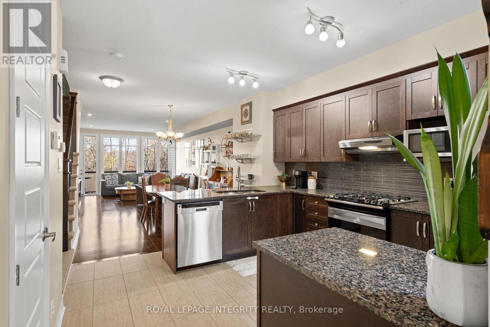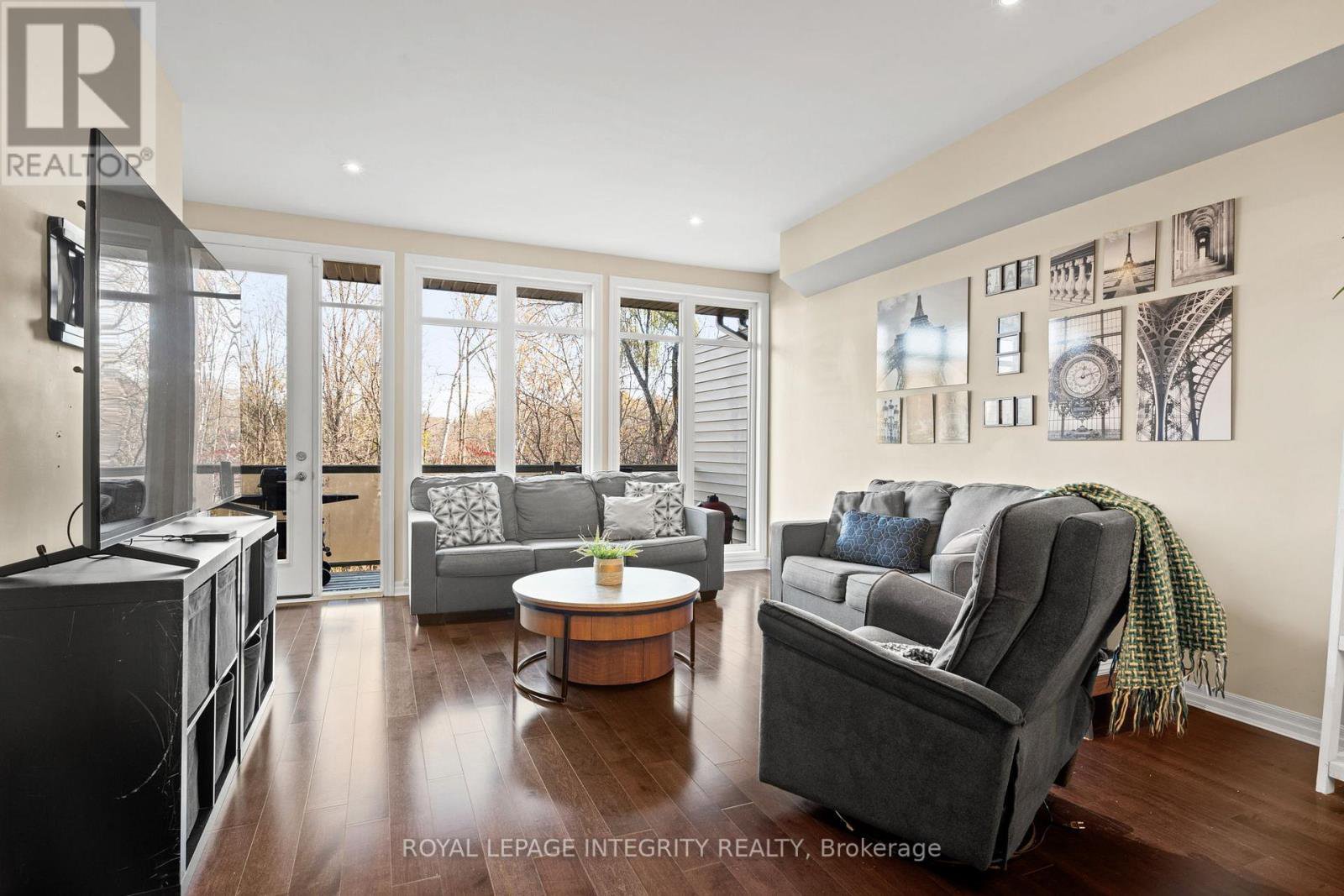 Nestled in a quiet enclave built by Boulet Construction, this elegant townhome offers a rare opportunity to enjoy Barry Hobin-designed sophistication surrounded by nature. Backing onto a private treed ravine, this Lyric B model showcases over 2,100 sq.ft. of refined living space across four thoughtfully designed levels.Flooded with natural light, the home features balconies on multiple levels, a walkout basement, and a third-storey loft complete with a full bath, closet, and spacious balcony-perfect as a guest suite, home office, or additional bedroom. The primary ensuite includes double sinks and granite countertops, while tasteful upgrades throughout add to the home's modern comfort and timeless appeal.Enjoy turnkey living at its best with a low monthly association fee that covers lawn maintenance, common lighting, and snow removal. Few Ottawa townhomes offer this blend of privacy, elegance, and convenience.