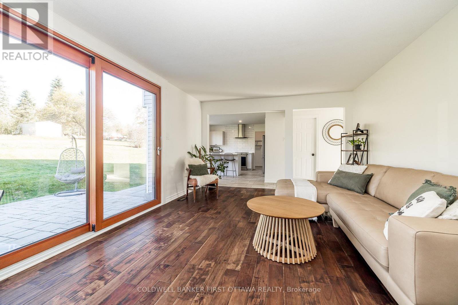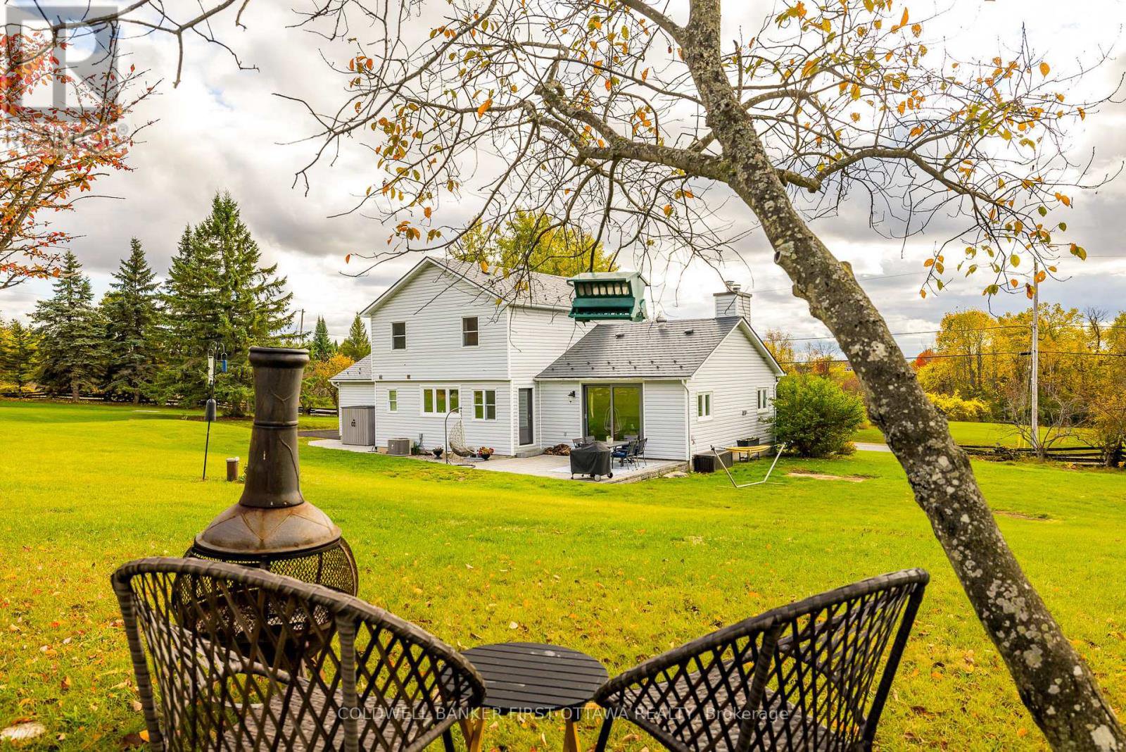 Welcome to this beautifully updated 4-bedroom family home on a treed and landscaped corner lot in the desirable country neighbourhood of Manion Heights. Enjoy the peaceful setting with southwest exposure and stunning sunset views, just minutes from Stittsville, Kanata, Almonte, and Carp.Inside, the spacious layout features large living and family rooms, each with a cozy fireplace, ideal for relaxing or entertaining. The updated kitchen showcases new cabinet doors, quartz countertops, a stylish backsplash, and stainless steel appliances, all professionally installed. A separate dining room and a mudroom off the kitchen with direct access to the garage add everyday functionality. Upstairs, the spa-inspired ensuite (2022) offers a luxurious touch off the primary bedroom. The upstairs also features 3 additional bedrooms and a full bathroom. Additional updates include modern flooring and refreshed bathrooms (2018), tilt-and-turn windows (2022), furnace (2019), AC (2016), and a metal roof (2006). The professionally installed interlock patio (2022) creates an inviting outdoor space perfect for entertaining.The unfinished basement provides excellent potential for future customization. A reverse osmosis water system, currently rented for convenience, includes filter replacements and full maintenance service.Move-in ready and meticulously maintained, this home blends country charm, modern updates, and thoughtful design in a truly special setting.