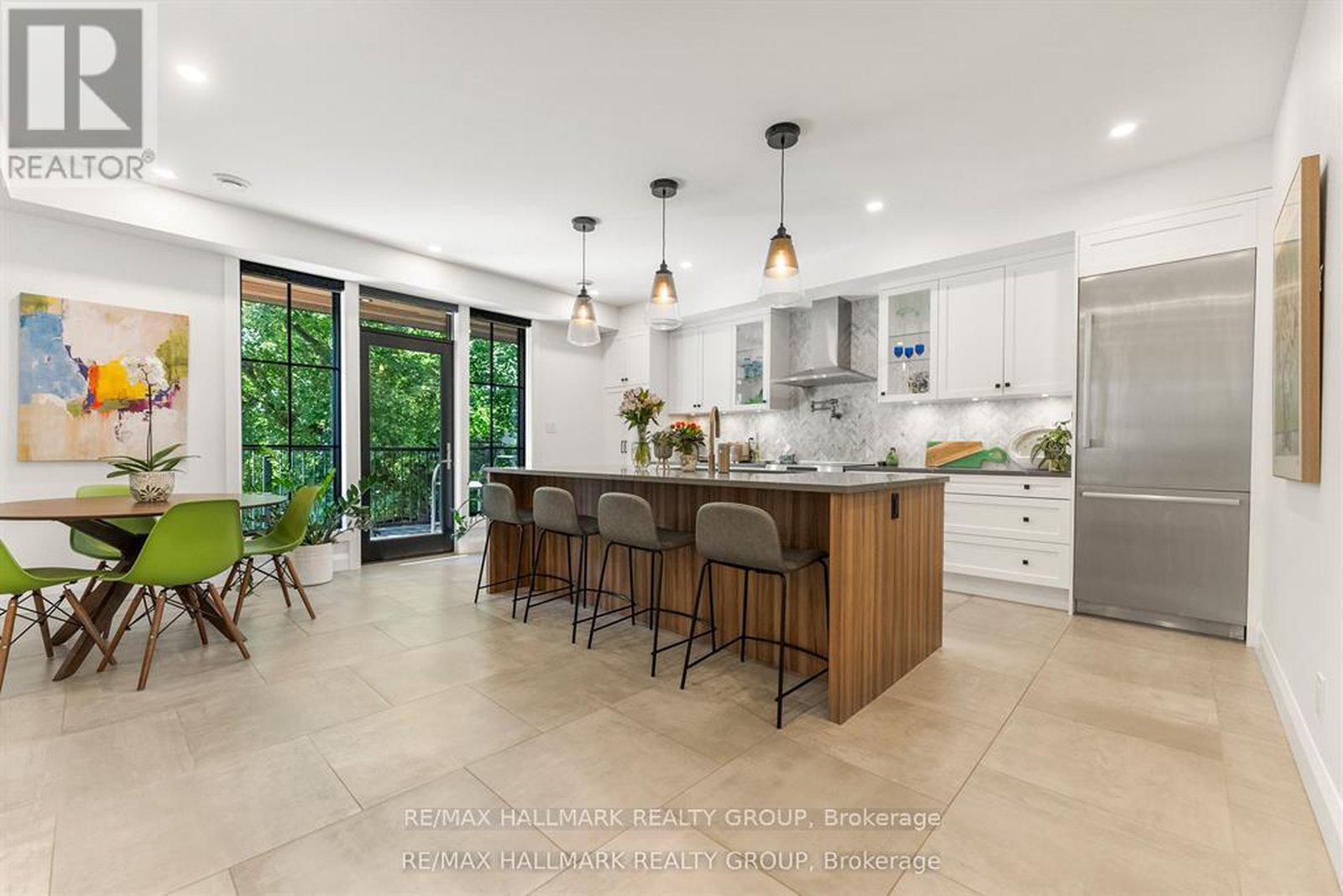 Welcome to your exquisite New York-style brownstone nestled in the vibrant Westboro Village.This stunning residence offers an unparalleled lifestyle for those who cherish the art of living.Step outside and find yourself within walking distance of the finest restaurants, boutique shops, or explore your culinary skills with fresh, local ingredients from the summer Farmers Market around the corner.Enter through an exterior heated floor into a foyer crowned by a compass-inspired chandelier. Glass and walnut railings lead to a living area anchored by a leathered granite-slab fireplace and a Frame TV for rotating art display while the dining room dazzles under custom lighting.For those who love to cook, the kitchen is a culinary dream come true.It boasts an oversized island and a delightful dining alcove, equipped with high-end Bosch appliances, a wine fridge, a chef's sink, and ample storage.Picture yourself gather for summer evening barbecues and dine al fresco on the inviting porch, while radiant in-floor heating ensures year-round comfort.A skylit,illuminated stairway rises to the upper level, where you'll find the spacious primary suite with its luxurious dressing area and a black-and-white tiled ensuite with heated floors and skylight. Step outside onto your private exterior deck, perfect for summer lounging.Two additional bedrooms feature walnut floors. A beautifully appointed bathroom showcases in-floor heating & skylight.Dedicated laundry room adds daily ease.Discover versatile living on the lower level, complete with a private entrance, full-height windows and direct access to a charming backyard. Enjoy heated polished concrete floors, stunning bathroom with washer/dryer & roughed-in plumbing for a bar or kitchen, making this an ideal in-law suite.Constructed with reinforced concrete, cold-formed steel and an acid-washed brick exterior, plus a snow-melting driveway, this home blends lasting strength with refined aesthetics.Embrace the Westboro Village lifestyle!