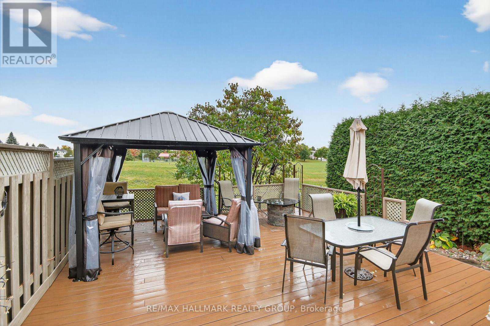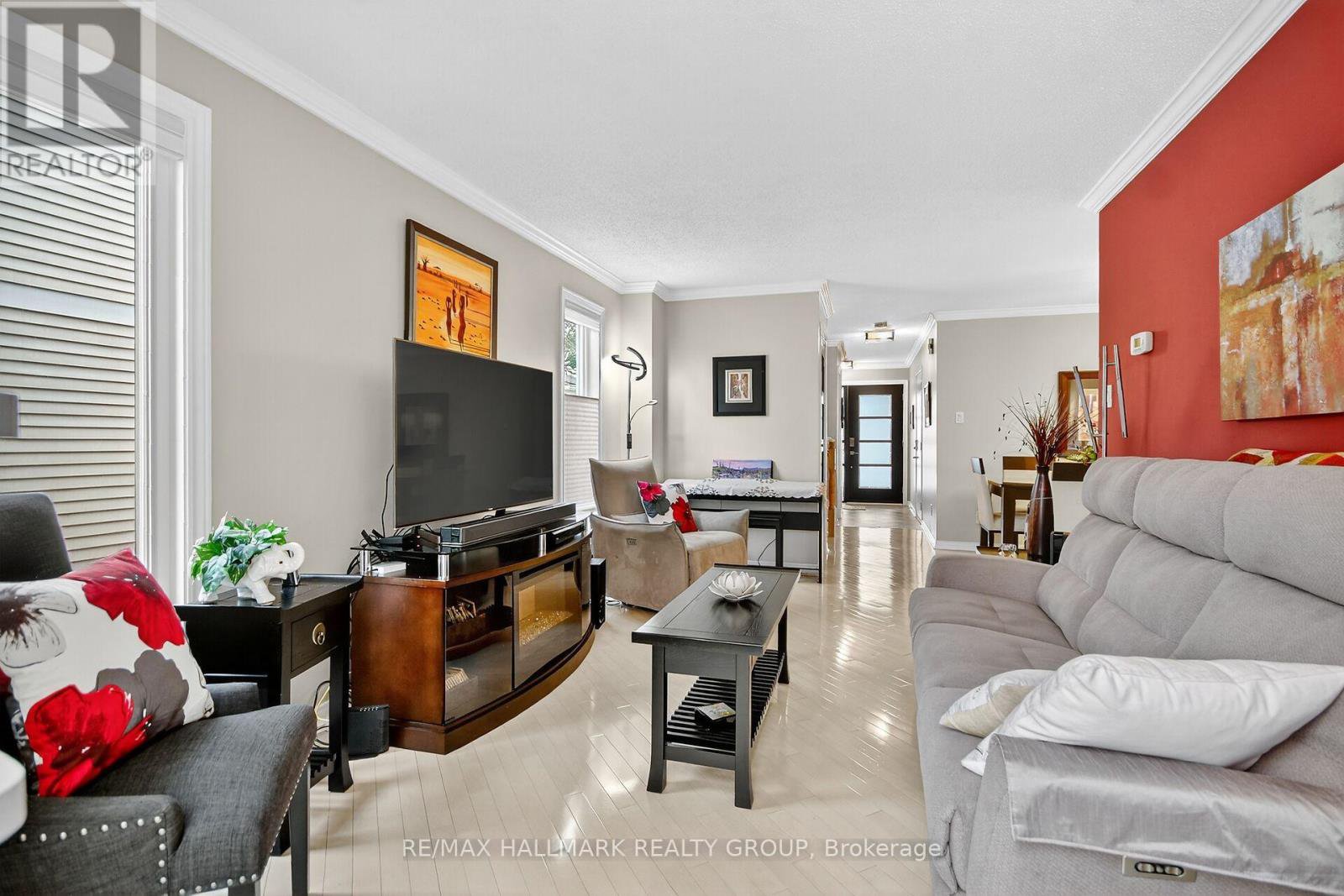 Welcome to 1415 Caravel Crescent, an EXCEPTIONNALLY STUNNING 3 bedroom END UNIT townhouse that BACKS ON PEACEFUL GREENSPACE. This home has been THOROUGHLY UPDATED and is sure to impress from the moment you arrive! A charming FRONT PATIO GARDEN welcomes you inside to an open-concept floor plan, perfect for family living & entertaining guests. The inviting living room flows seamlessly into a bright THREE-SEASON SOLARIUM, creating a wonderful extension of the living space. The kitchen features GRANITE countertops, stainless steel appliances, and ample cupboards and counter space, along with a PATIO DOOR WALK OUT to the backyard. Outside, enjoy a TWO-TIER DECK, gazebo, and scenic views of Queenswood Ridge Park-an ideal spot to relax and unwind. Upstairs, the primary bedroom offers an updated ENSUITE with a LUXURIOUS SHOWER and a WALK-IN-CLOSET. Two additional bedrooms and a full bathroom complete the upper level. One of the secondary bedrooms also has a WALK-IN-CLOSET. The FULLY FINISHED lower level includes a spacious recreation room, laundry area, and ample storage. With its CARPET-FREE DESIGN and MOVE-IN-READY condition, this stunning home combines comfort, style, and location-everything you've been looking for.