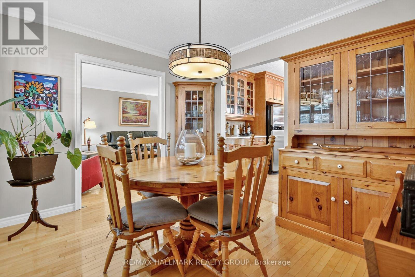 Welcome to 838 Balsam Drive, a charming 3-bedroom, 2.5-bath bungalow nestled on a quiet side street in Queenswood Village, Orleans. This beautiful home features gleaming hardwood and tile flooring throughout the main level, complemented by windows adorned with California blinds. The spacious living room offers a large, sun-filled window and a cozy electric fireplace, creating the perfect setting for relaxation. The bright dining room showcases a stylish light fixture, adding elegance to every meal. The eat-in kitchen is a true highlight, boasting rich cherry cabinetry, quartz countertops, a breakfast bar, stunning backsplash, stainless steel appliances, and a large pantry conveniently located by the back door. The primary bedroom includes his and her closets along with a private 2-piece ensuite. Two additional bedrooms, a large linen closet, and a luxurious full bath complete the main floor. The lower level is thoughtfully designed with a spacious family room, a comfortable sitting area, a 3-piece bath, a laundry room, and plenty of storage space-including a cold storage and a cedar closet. This carpet-free, move-in-ready home also offers a carport and parking for two more vehicles in the driveway. Step outside to a beautifully landscaped backyard featuring a patio, gardens, gazebo, and storage shed-an ideal retreat for entertaining or quiet enjoyment. Perfectly located near transit, Highway 174, and Place d'Orléans, this home truly combines comfort, style, and convenience-everything you've been looking for in a place to call home.