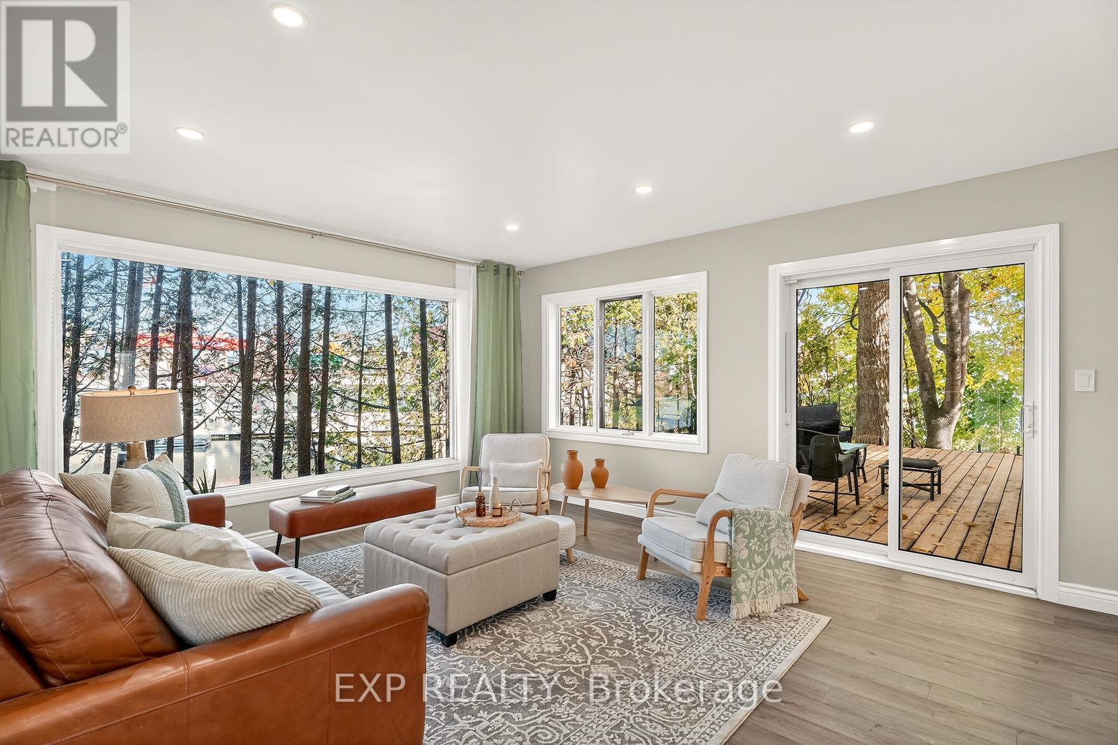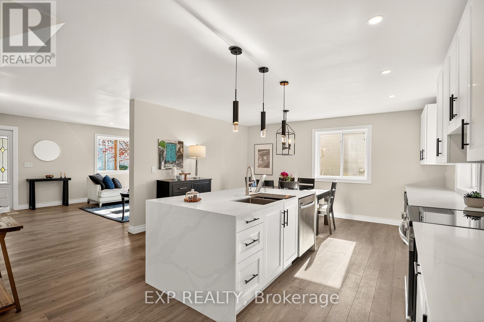 A stunning 2,000 sq ft waterfront home on the South Nation River offers modern luxury and privacy in a small town setting. The massive chef's kitchen features a waterfall quartz island and seamlessly opens into the dining and living spaces, perfect for entertaining. The great room provides a panoramic view of the river with access to the wrap-around porch offering a spacious hosting area on the water's edge. A detached garage on the property could become a workshop or a boathouse. The access to the water behind the garage is the perfect place for a dock! The home is thoughtfully designed with a mudroom, upstairs laundry and a sprawling primary suite complete with a luxury ensuite bathroom featuring a freestanding soaker tub and waterfall walk-in shower. Modern touches inside and out enhance the sleek open feel of this modernized home. Smart home technology has been integrated. The house has been completed renovated inside and out. This exceptional home offers the perfect blend of comfort, style, and nature in the heart of Chesterville.