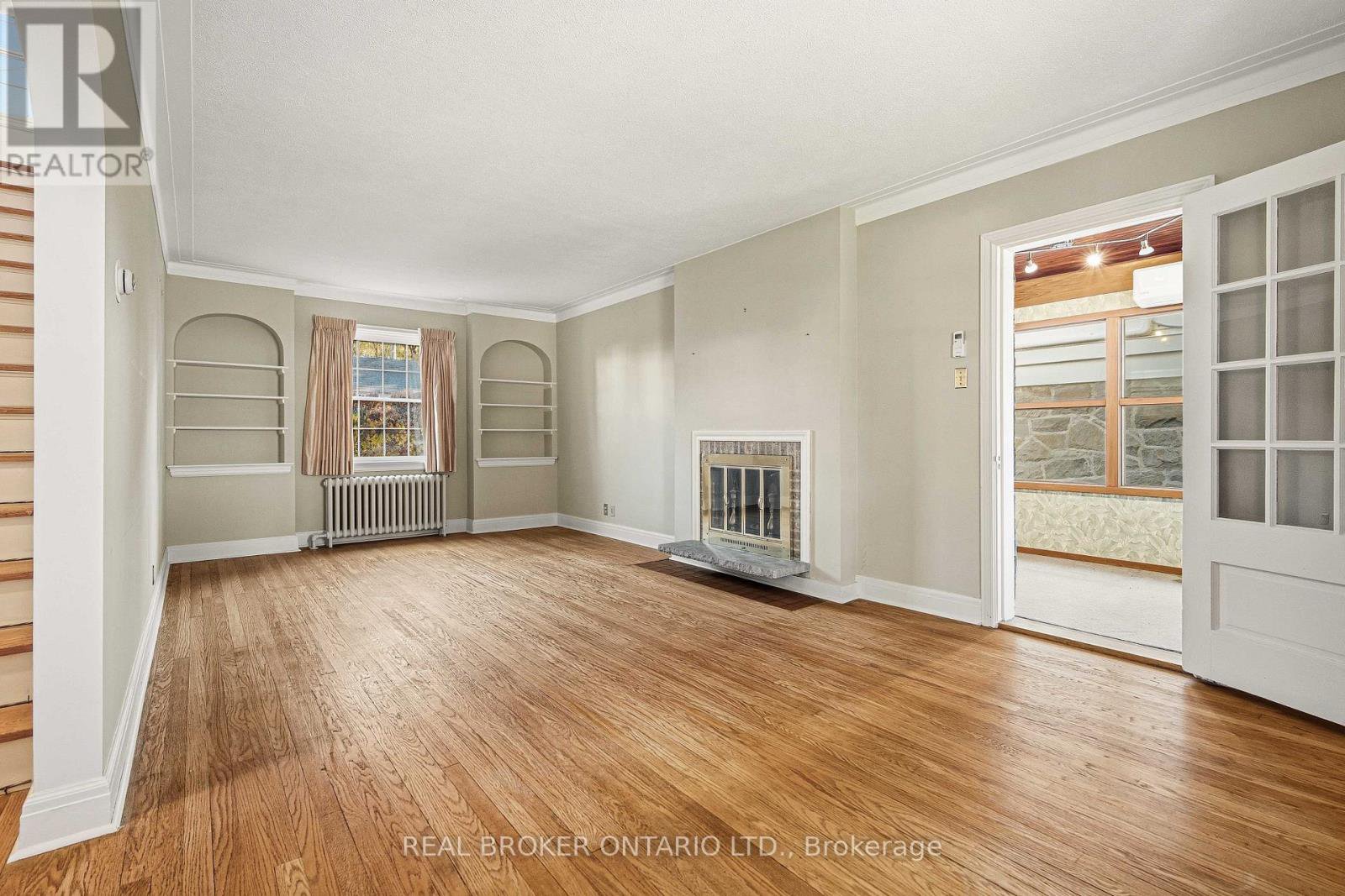 OPEN HOUSE - SUNDAY NOV 02 - Welcome to Civic Hospital - one of those special neighbourhoods that people wait for years to get into. This 2-storey home sits proudly on a premium corner-lot. Maintaining much of it's original 1940's charm, you can feel that this home has been well cared for. The stone exterior, mature trees, and interlock walkway give it great curb appeal and presence from the street. Inside, the layout is classic and easy to live with: hardwood floors, arched doorways, crown moulding, and a cozy wood-burning fireplace in the living room. There's even a sunroom that catches daylight throughout the entire day thanks to it's east-west exposure. Upstairs are three bedrooms and a full bath with timeless black-and-white accents, including hexagon floor tile and subway tile surround that suits the age of the home. The basement offers more than expected, being full height, and finished with a rec room, den, additional half bath, and even a sauna, so your wellness routine can start right at home. The fenced backyard has space to relax, garden, while still offering grass space for the dog and kids. Better still, the double garage means you'll never worry about parking. Not that you'll need to take the car often -- From here, you can walk to the Civic Hospital, Reid Park across the street, or grab a coffee in Hintonburg. It's a rare find in a location that truly sells itself. No conveyance of offers prior to 1:00 PM Friday November 7th.