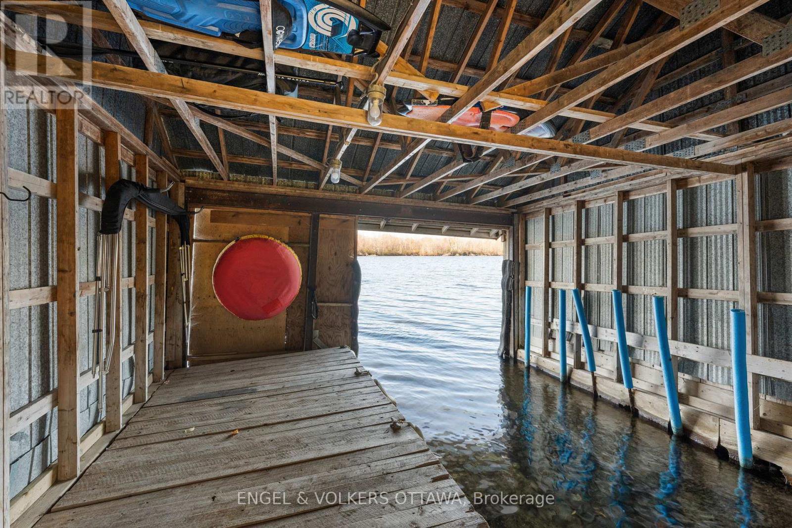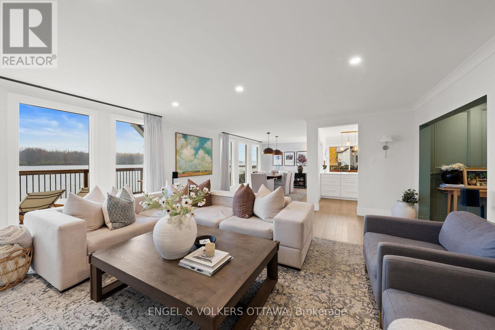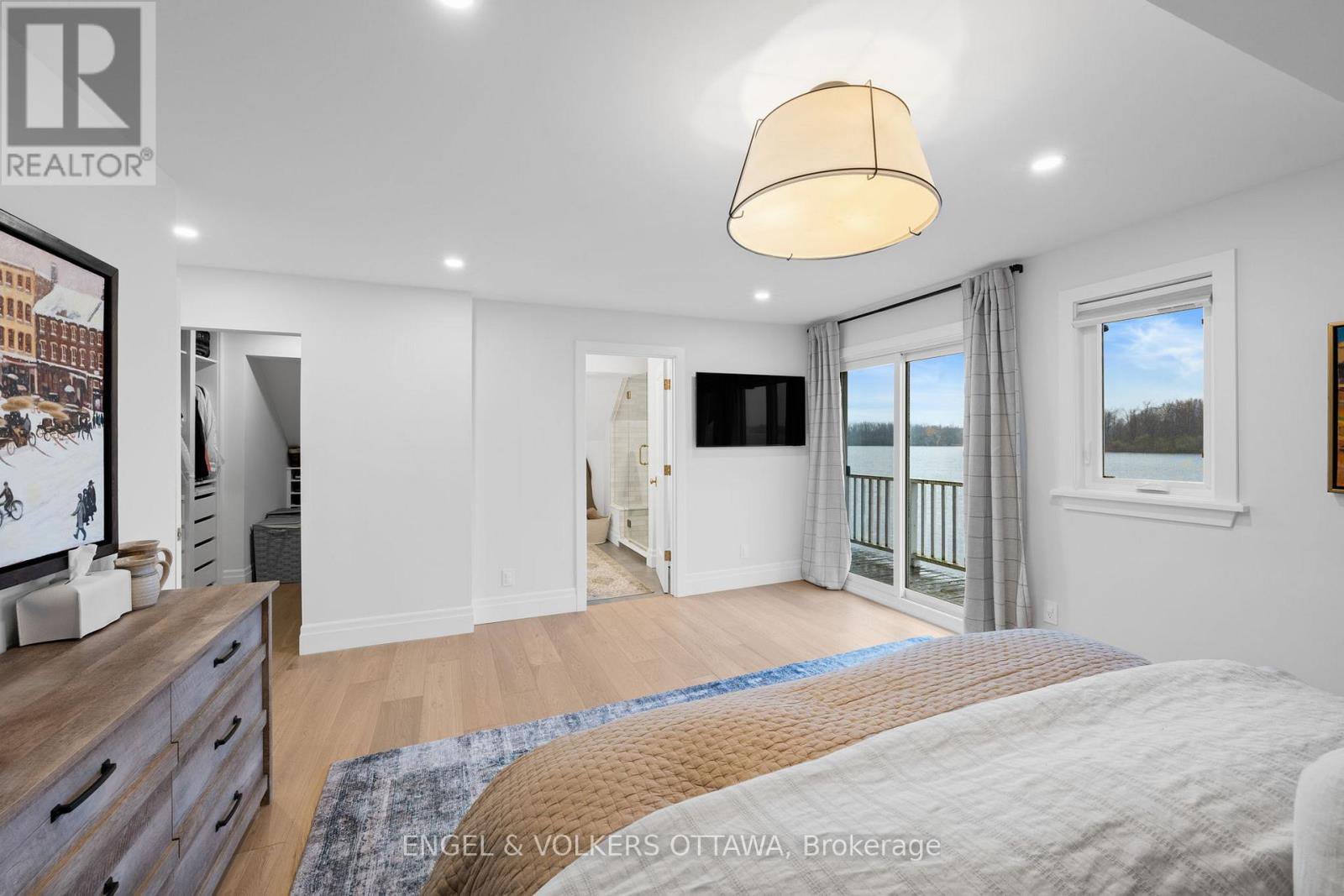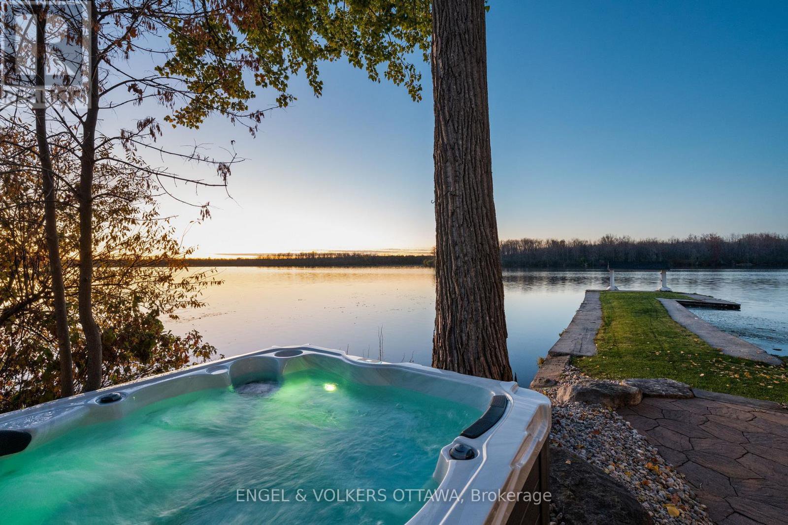 The Pier House - designer waterfront living on the Rideau River. This 4-bedroom retreat offers nearly 200 ft of pristine shoreline along the Long Reach, 30km of lock-free boating, with sunset views across the water toward Baxter Conservation Area. Elevated by luxury finishes and extensive updates, the home features a striking great room with floor-to-ceiling windows, custom built-ins, and a modern fireplace. The kitchen blends walnut butcherblock counters and a quartz island for a warm, modern aesthetic. A major renovation in 2022 introduced engineered hardwood throughout, new trim, doors, and a fully redesigned primary suite with spa-inspired ensuite and walk-in closet. Roof(2024), decking(2025), and front door(2024) all recently replaced; new hot tub (2025) with warranty. Updated electrical and advanced RO + UV water purification systems ensure turnkey peace of mind. The home's expansive wrap-around deck provides the ultimate outdoor living experience, thoughtfully designed with multiple zones for relaxing and entertaining - from casual lounging and dining areas to a dedicated BBQ space. A built-in wood bar with high stools adds a resort-like touch, perfect for enjoying evening drinks overlooking the water. Easy boating with a private boathouse, and in winter, enjoy skating, cross-country skiing, and snowmobiling right from your shoreline. Conveniently located with quick access to Highway 416 - just 30 minutes to downtown Ottawa, 15 minutes to Manotick, and 10 minutes to Kemptville.