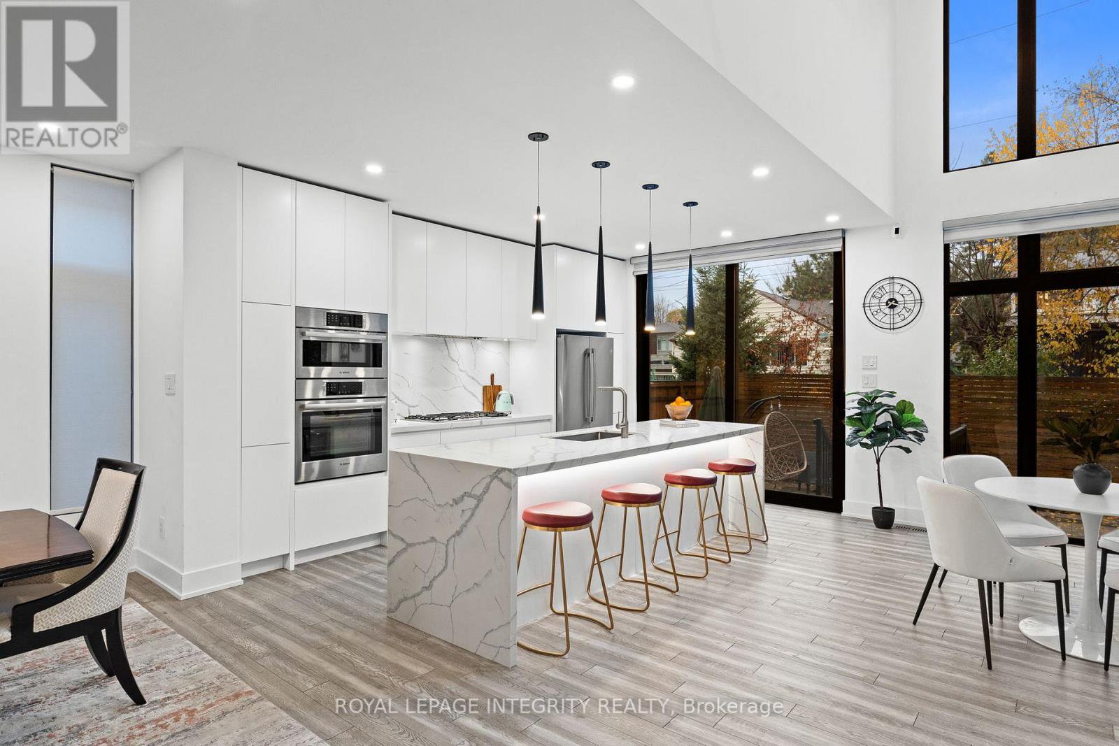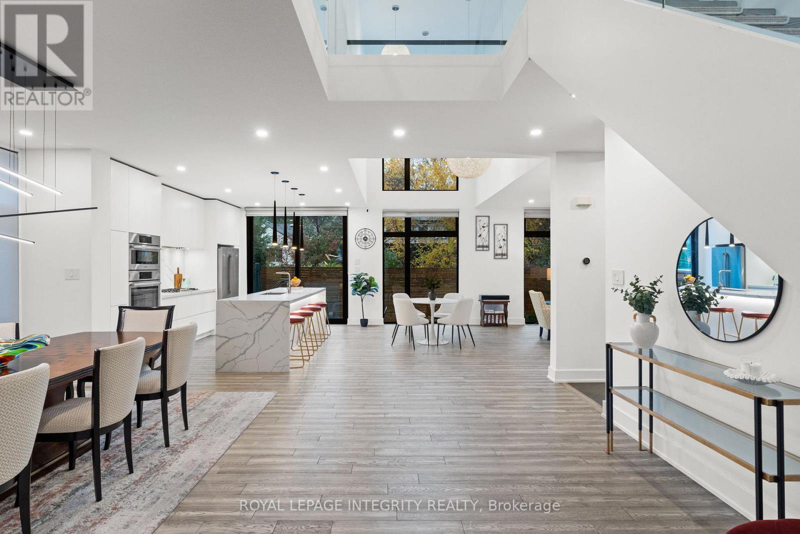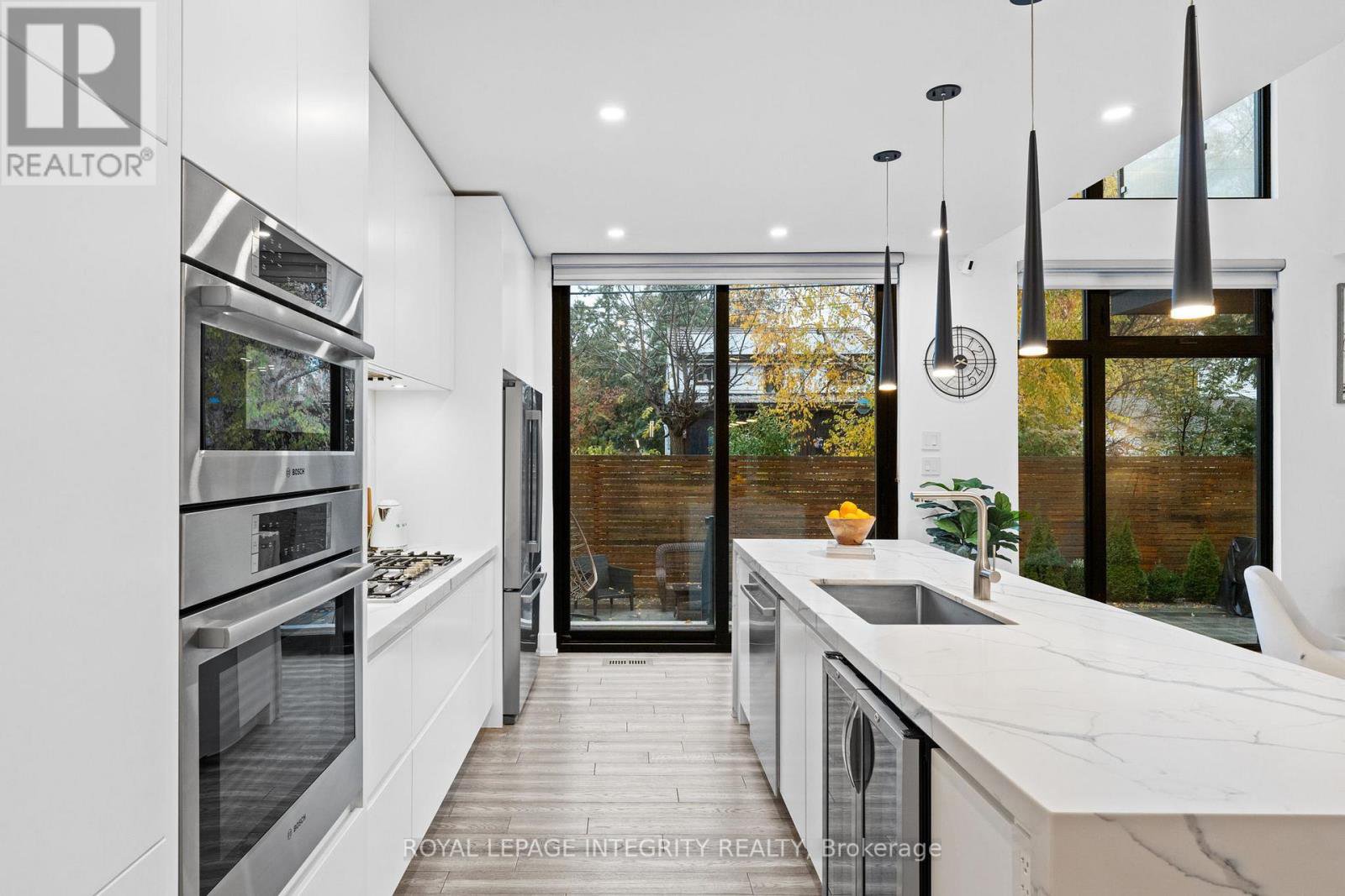 Step into luxury at 17 Lotta Avenue, a 2x GOHBA-nominated smart home showcasing architectural sophistication, high-end finishes & thoughtful design. The main floor features a stunning front-of-home office, ideal for remote work/study. Flowing from the foyer, the open-concept main floor is designed for modern family living & entertaining. The expansive dining area can easily accommodate large gatherings, while the stunning kitchen is a showpiece w/ a marble waterfall island, sleek white handleless cabinets, a built-in double oven, a gas cooktop and wine fridge. Just off the kitchen, a breakfast area boasts high ceilings w/ stunning pendant lighting & floor-to-ceiling windows w/ motorized blinds, offering stunning views of the beautifully landscaped backyard. The living room features a marble accent wall w/ an electric fireplace & built-in shelving. A generous mudroom off the garage provides an additional closet, along w/ a powder bathroom. The primary suite is a true retreat, featuring an electric fireplace, private balcony, a walk-in closet w/ his-and-her sides & a spa-like 4-piece ensuite w/ a freestanding tub, walk-in glass-enclosed shower, dual sinks & a dedicated vanity space. Three additional bdrms complete this level, including one w/ a private 3-piece ensuite, while the remaining two share a full bathroom w/ dual sinks. A dedicated laundry room completes this level. The lower level features a fully code-compliant SDU w/ its own side entrance, 3 bedrooms, 2 full bathrooms, a stunning kitchen, living room & dining space; ideal as an in-law suite, income-generating rental, or additional living area. Outdoor living is equally impressive, w/ a newly landscaped backyard featuring interlocked patio stones, a PVC deck & a privacy wall. Situated in a convenient & amenity-rich area, this home offers easy access to shopping, parks, and schools, all just minutes from your door. A truly distinguished home that elevates everyday living to extraordinary.