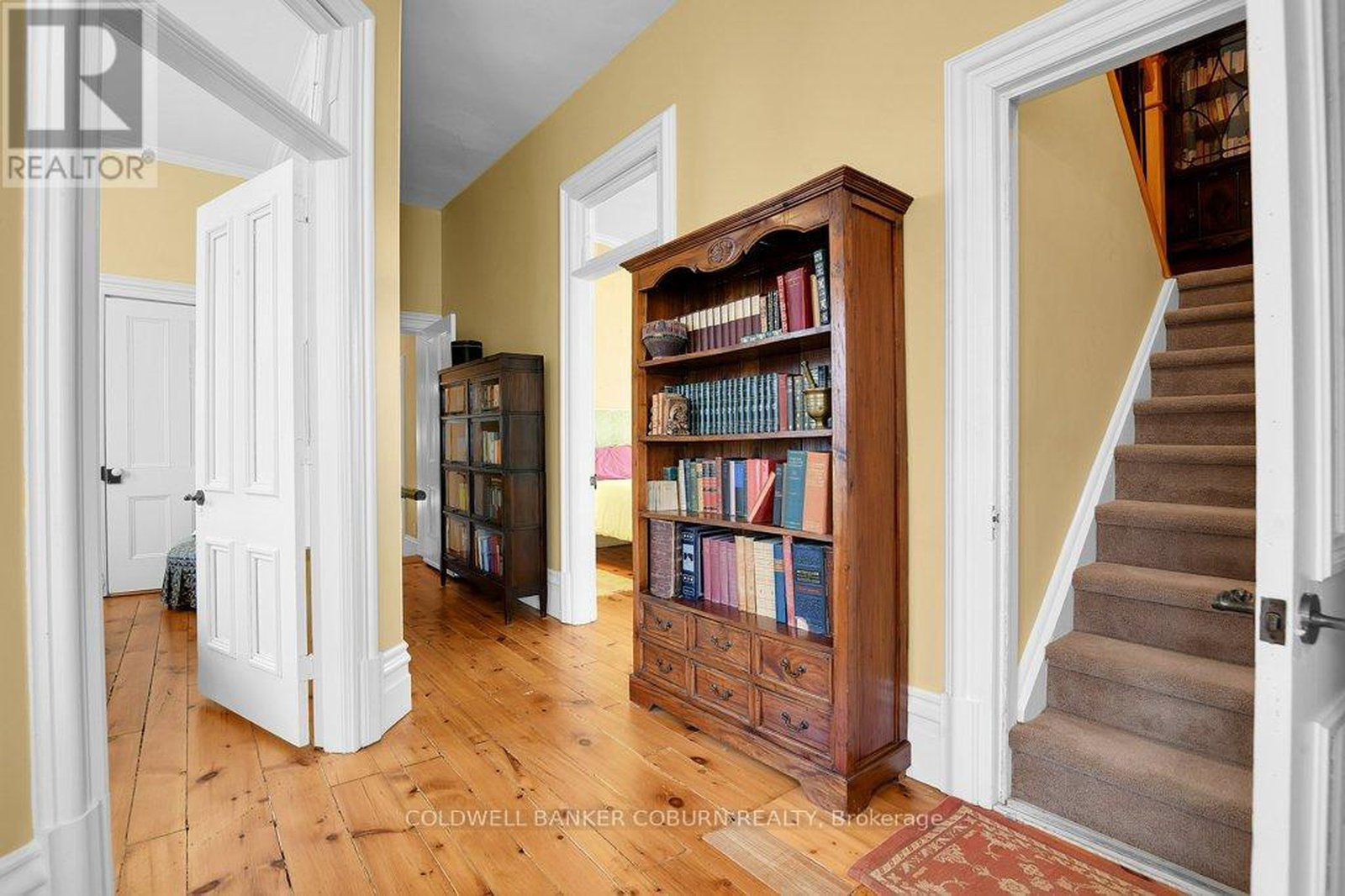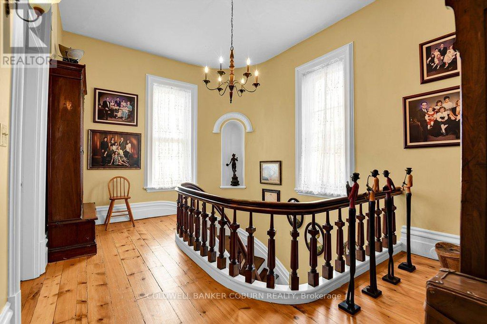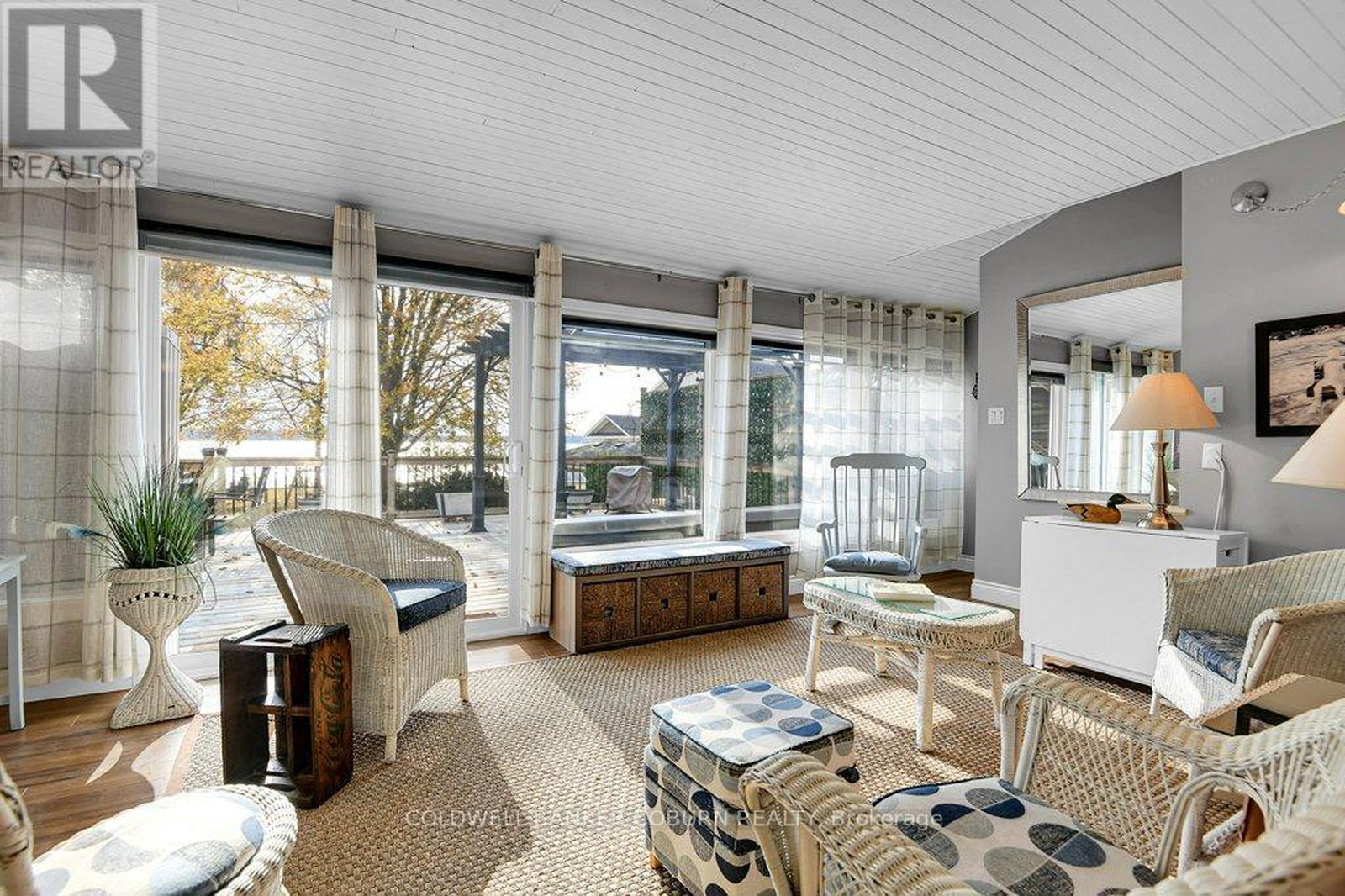 Nestled on the banks of the St. Lawrence River in the historic village of Morrisburg, 35 Lakeshore Drive is a stunning example of Victorian Gothic Revival architecture. Built in 1873, this remarkable home combines old charm and modern luxury, offering 5,408 sq. ft. of living space on three floors. Its distinctive slate mansard roof, ornate verge boards, decorative window caps, and inviting porches reflect the craftsmanship and refinement of the era, while dormer and bay windows flood the interior with natural light. High ceilings, elegant doors and mouldings, three marble fireplaces, and a spiral staircase with intricate ornamental details further enhance its character. This residence presents a rare opportunity to enjoy a piece of local history. The home includes two self-contained suites, each with living area, bedroom, ensuite, and its own furnace/heat pump: one is a private oasis on the third floor also boasting a dressing room; the other, a fully accessible ground-floor addition (2022) with outdoor lift. Five additional bedrooms and two bathrooms provide ample space for family and guests. Over $880K of high-quality upgrades ensure modern comfort and convenience: renovated kitchen and baths; new main furnace (2025); in-ground pool; composite dock; permeable stone driveway and walkway (2024); three-season veranda with gas fireplace, decks, landscaping and campfire pit; full electrical updates; newer roof membrane; stairlift to second floor; very spacious and dry basement. Impeccably maintained and move-in ready, 35 Lakeshore Drive offers not only a beautiful home but a lifestyle rich in amenities. Enjoy waterfront living with nearby parks, beach, boat launch and golf course, or explore the local shops, restaurants, arena, library, curling, medical and dental clinics, and the Upper Canada Playhouse-all within walking or biking distance. Take the virtual tour to view additional photos, aerial shots, and detailed floor plans of this truly exceptional property.